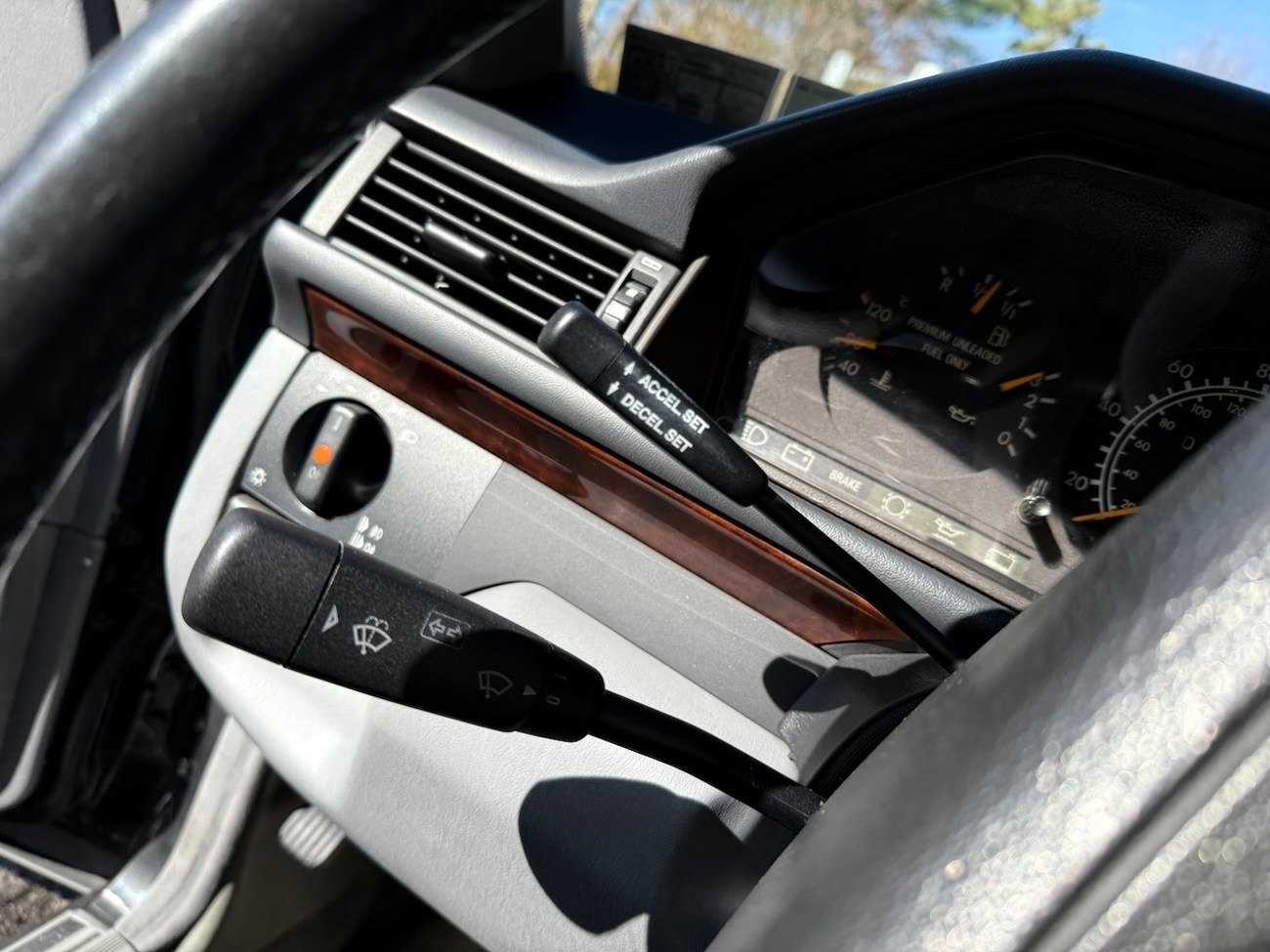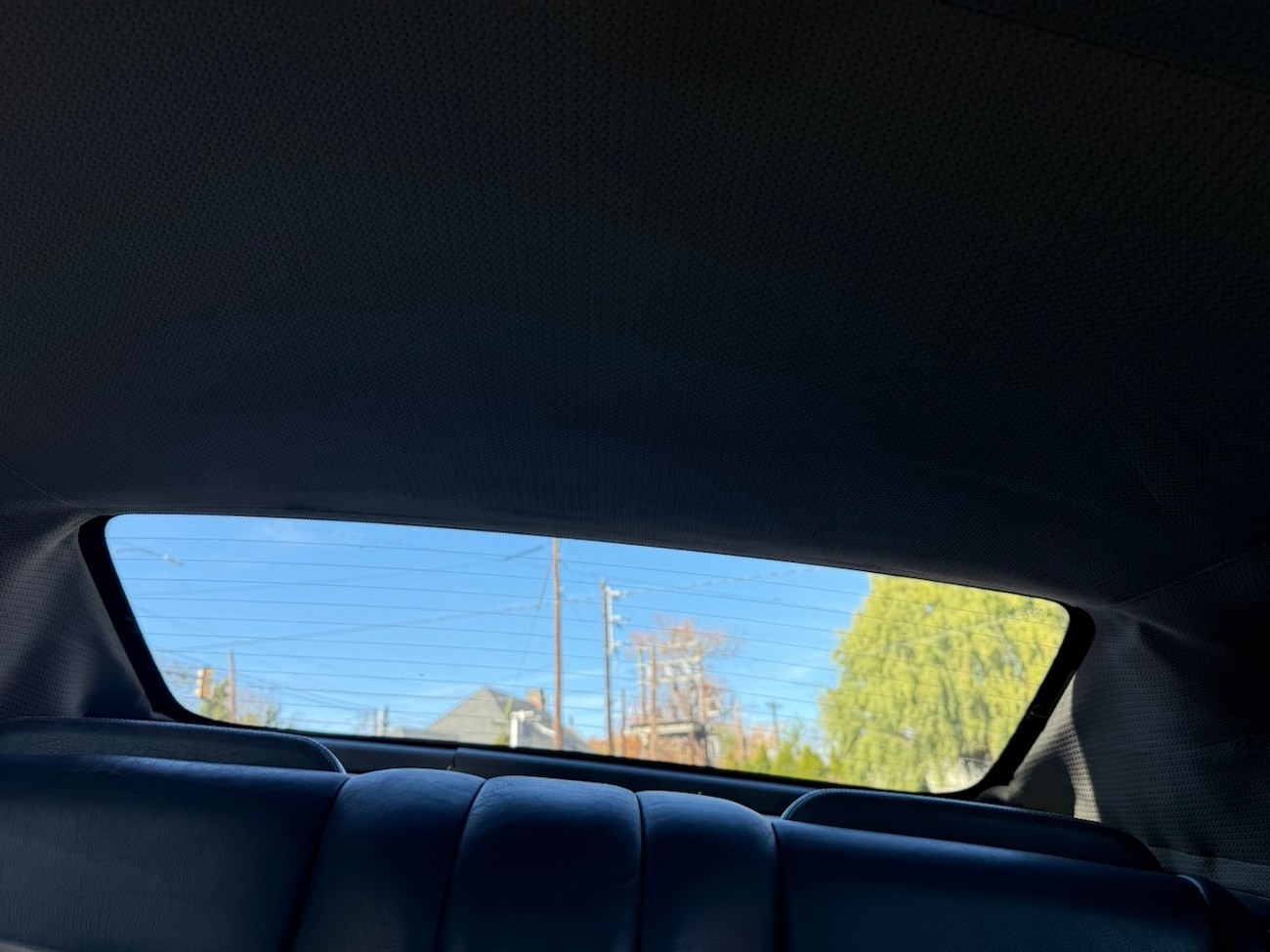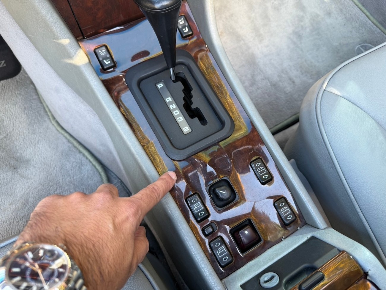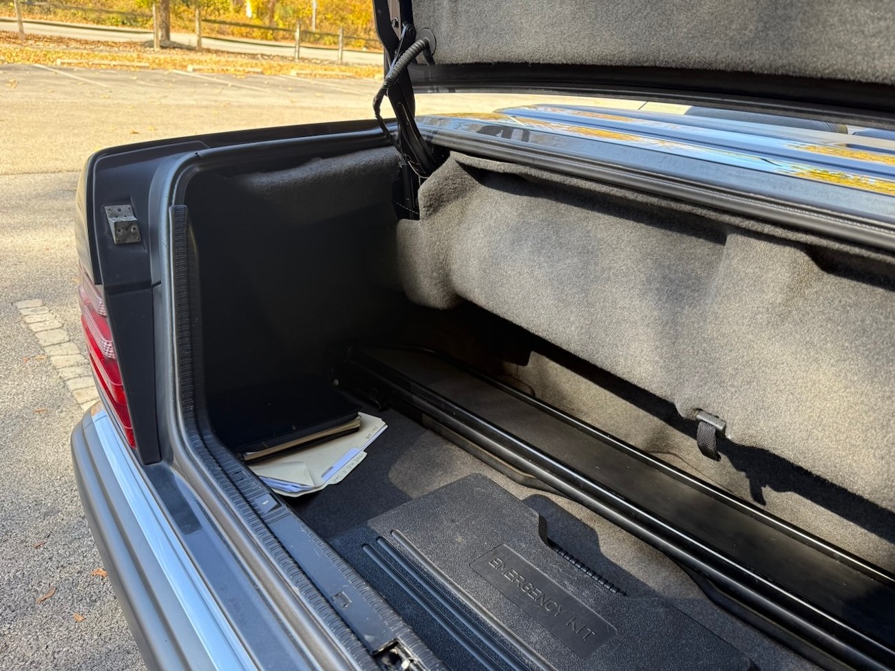The cabin is upholstered in Gray Leather (268) and features matching carpets and Burl Walnut wood trim which lines the center console, dashboard and door panels. Both front seats are heated and power operated with memory and show some wear. Interior appointments include automatic climate control, functional cruise control, a passenger and driver airbag, automatic seat belt presenters, and an aftermarket head unit.