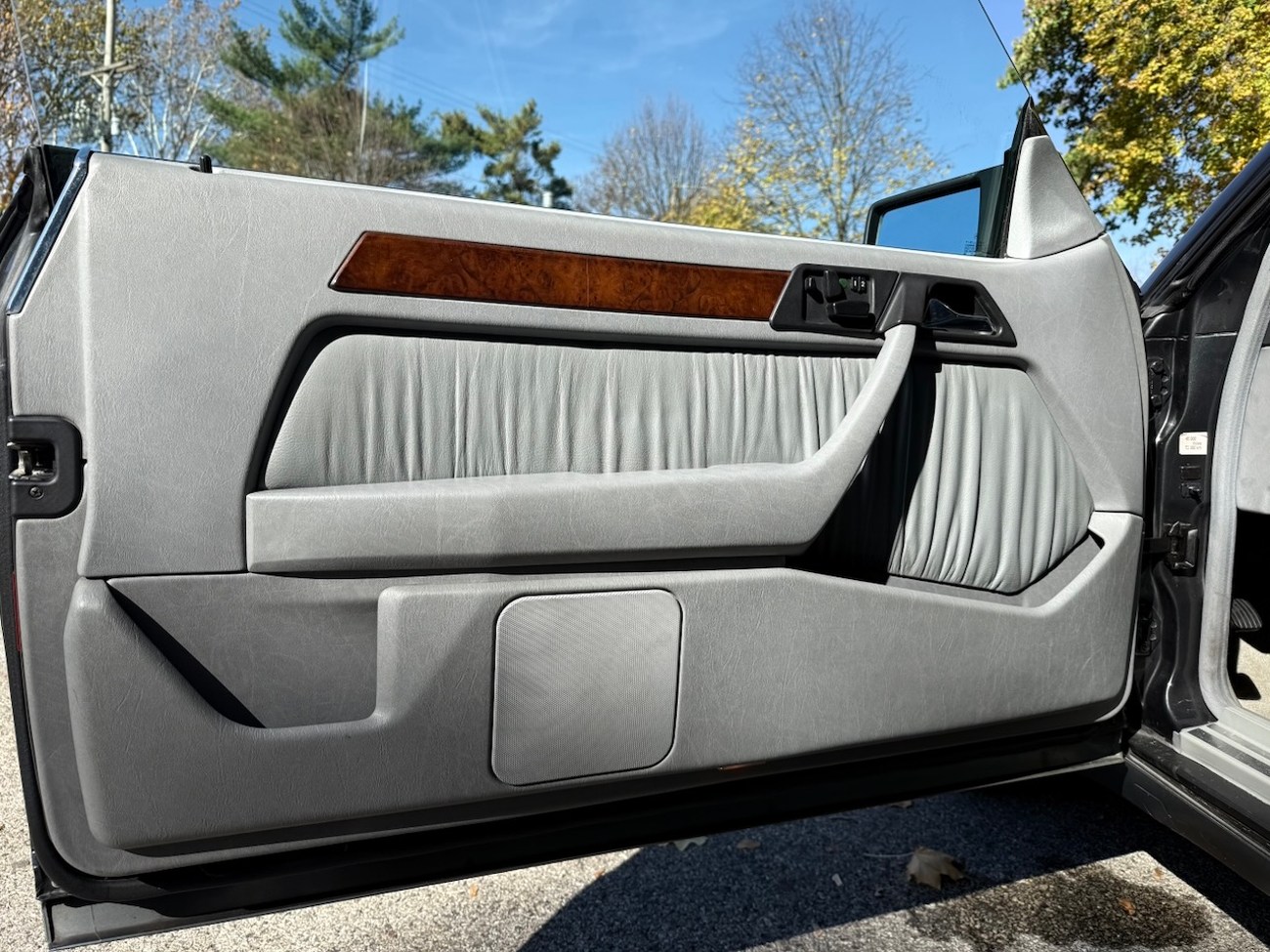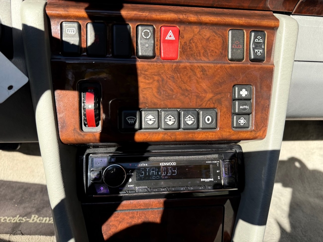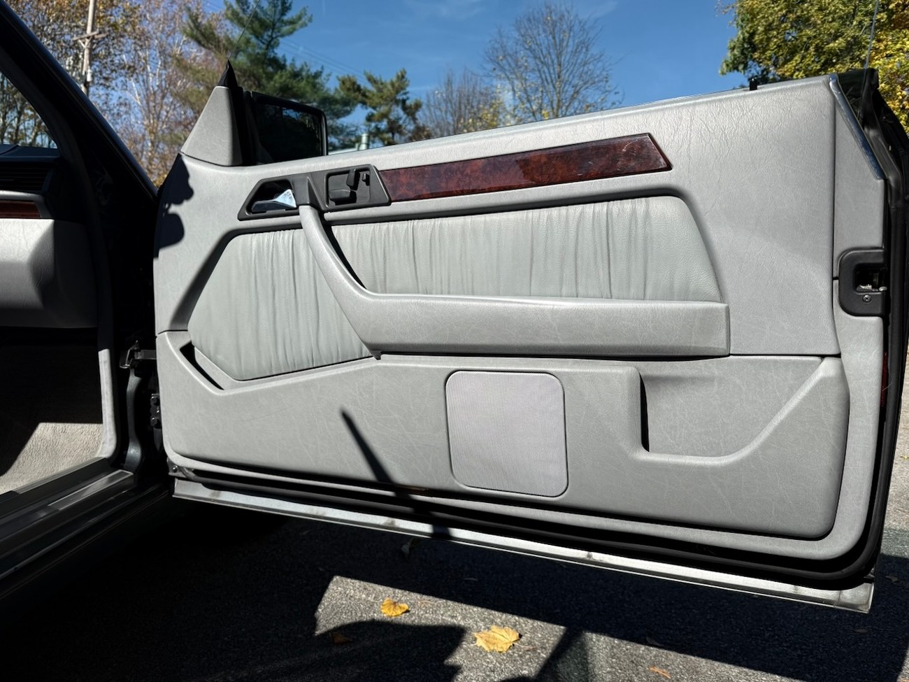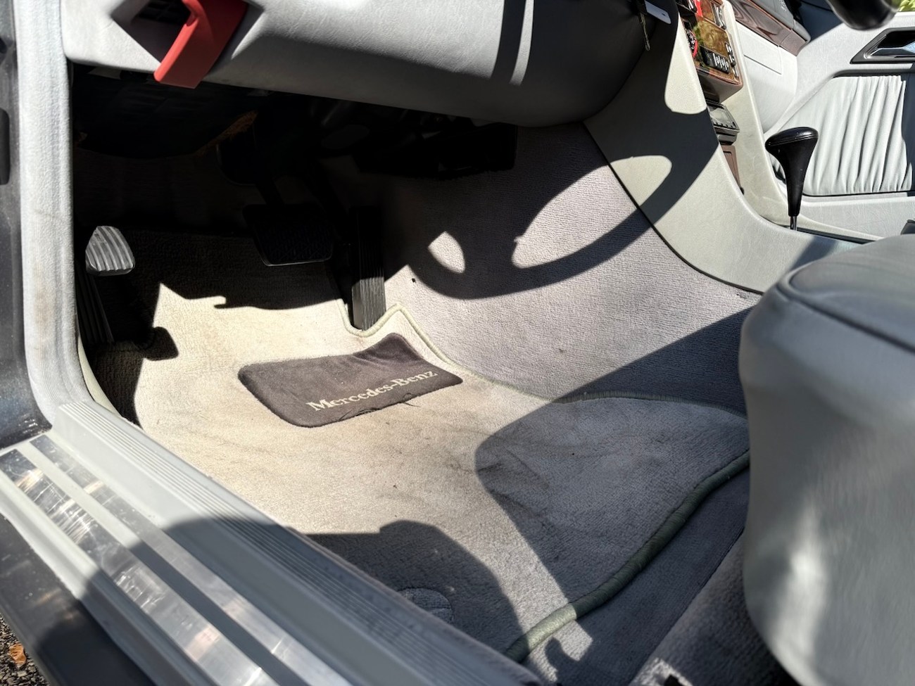 The cabin is upholstered in Gray Leather (268) and features matching carpets and Burl Walnut wood trim which lines the center console, dashboard and door panels. Both front seats are heated and power operated with memory and show some wear. Interior appointments include automatic climate control, functional cruise control, a passenger and driver airbag, automatic seat belt presenters, and an aftermarket head unit.