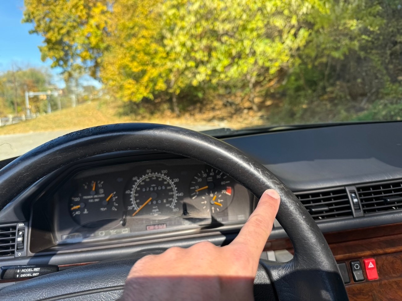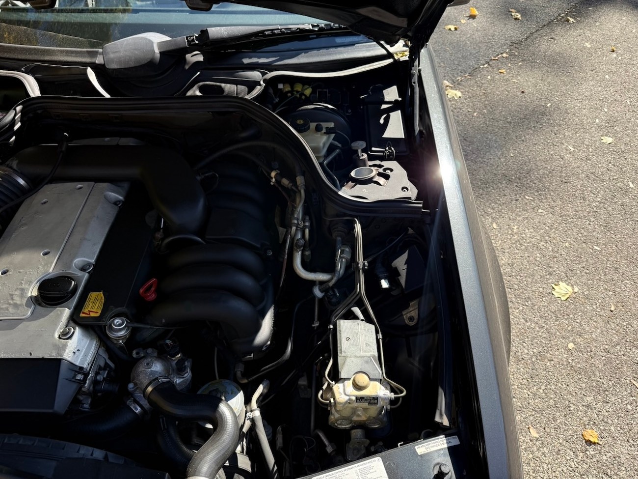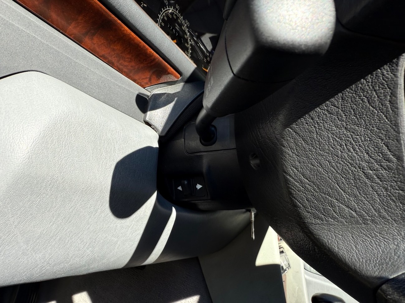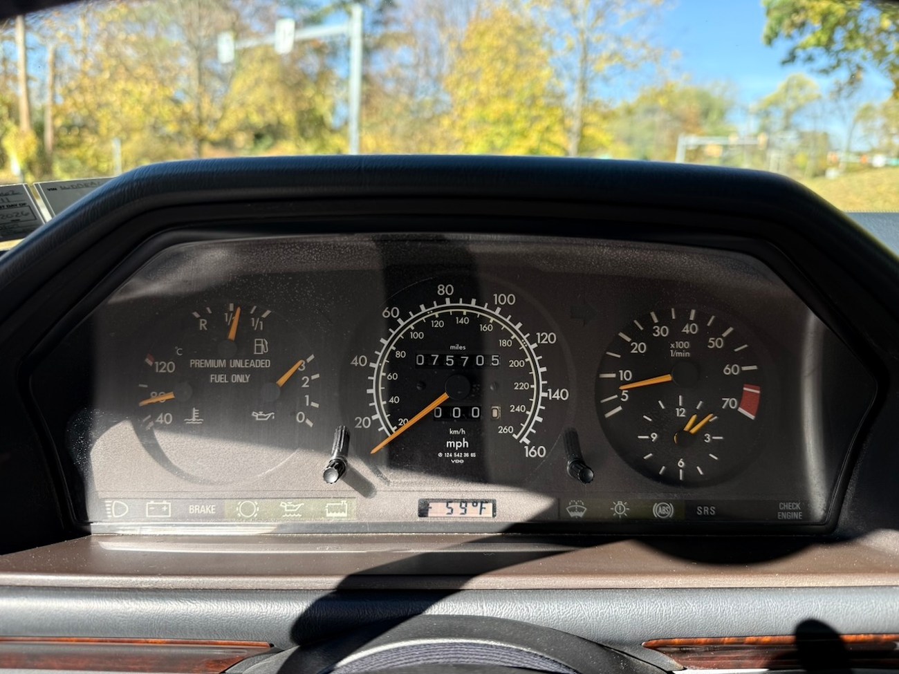 The four spoke steering wheel frames analog instrumentation including a 160-mph speedometer, a 7k-rpm tachometer, an analog clock and gauges for fuel level, coolant temperature and oil pressure. A digital outside temperature sensor can be found mounted below. The six-digit odometer shows just over 75k miles from new.
