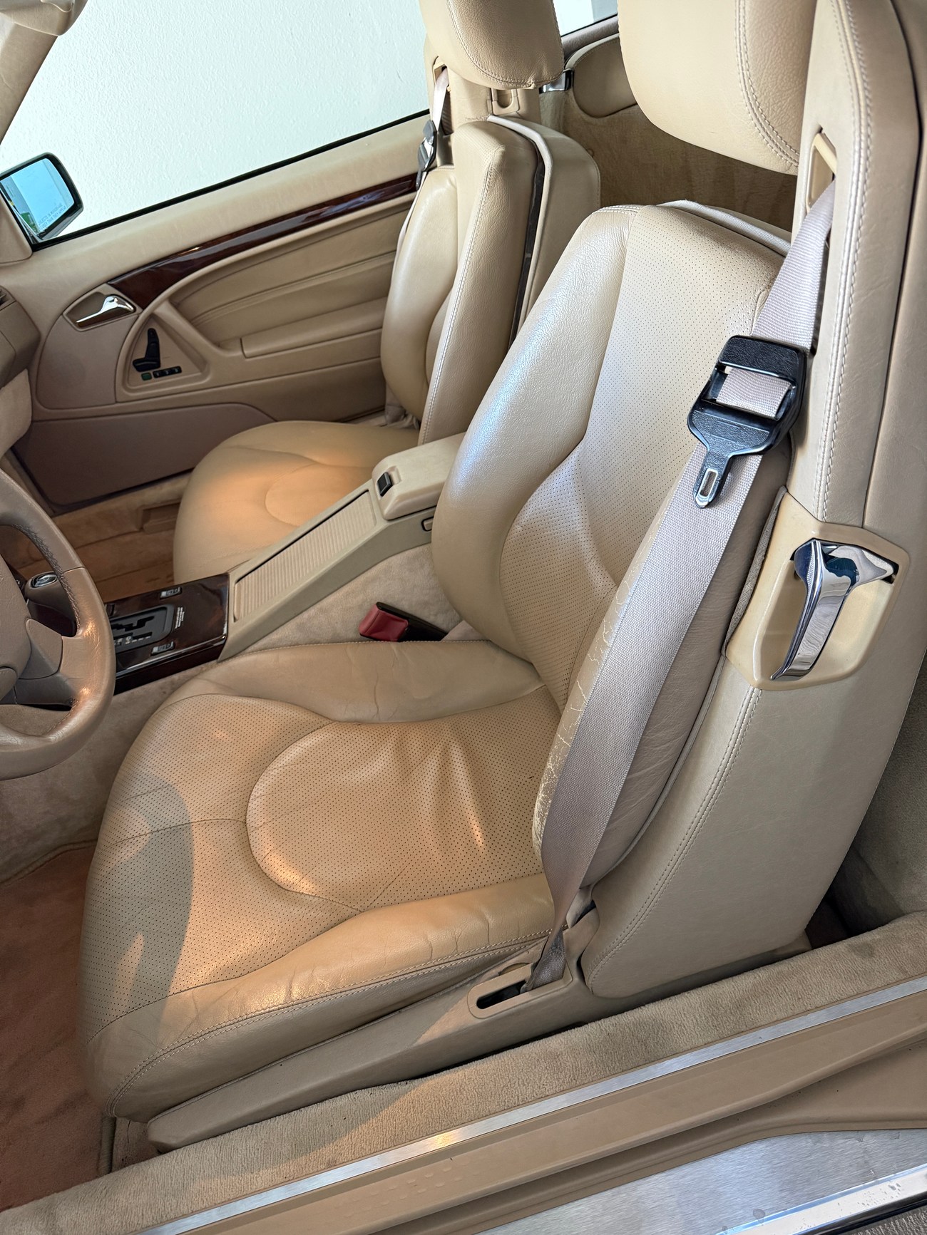 @Bdodge777 Hi I cannot remember. I can go check it tomorrow.Dear Seller, sorry to ask, but the driver seat fotos dont show the the side parts, the main scratched at this R129 models..the part where the fatsen seat belts scratch over....left wing of the seat. thx for this extra.Question, there is a switch or knob on the left side of the steering wheel. My ‘99 doesn’t have this. Is this something installed aftermarket? Thanks$2,950 bid placed by @bdbenz