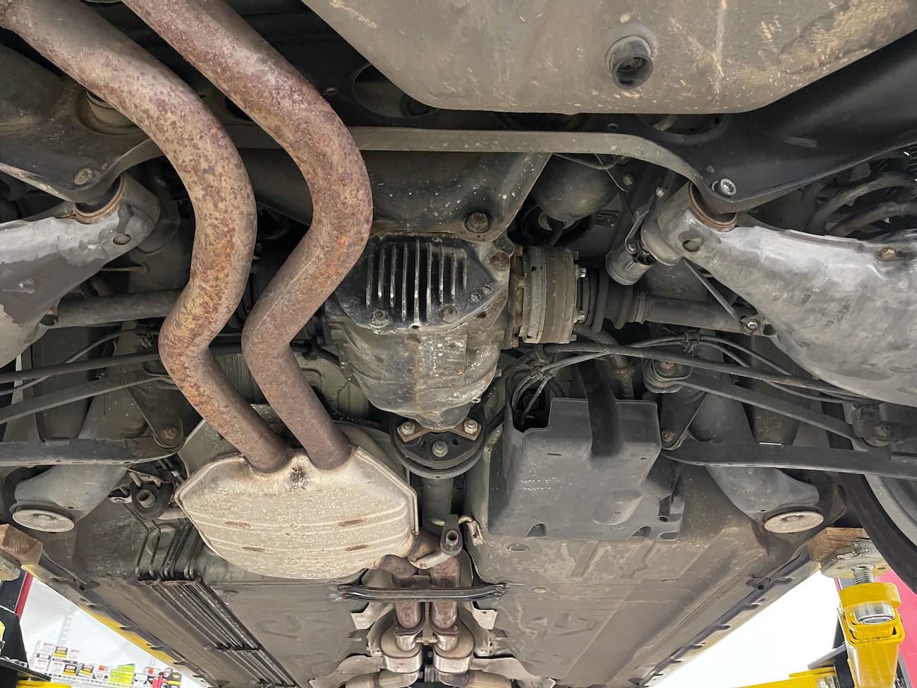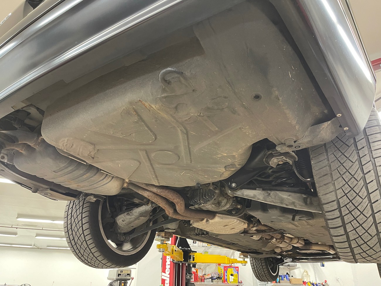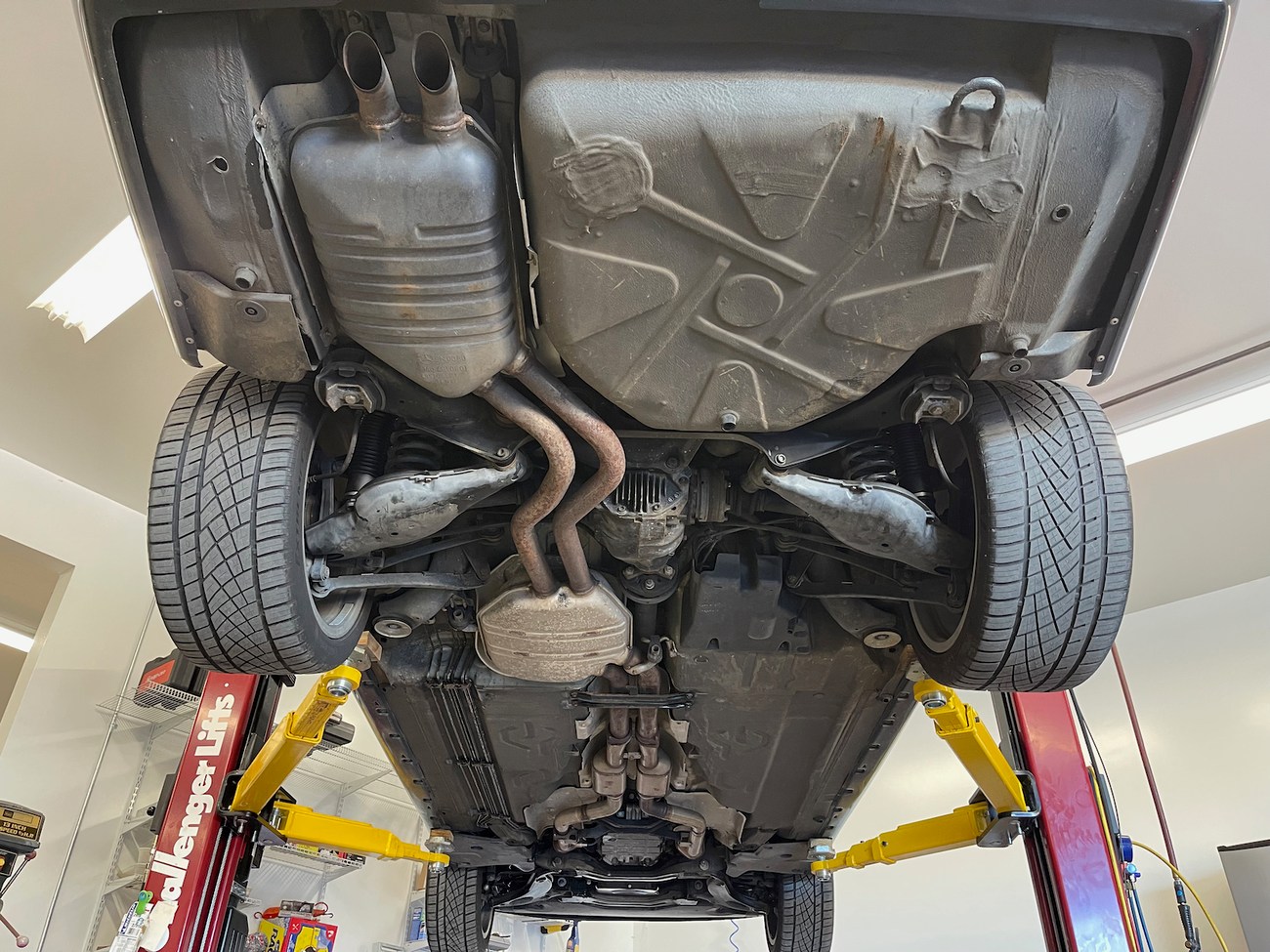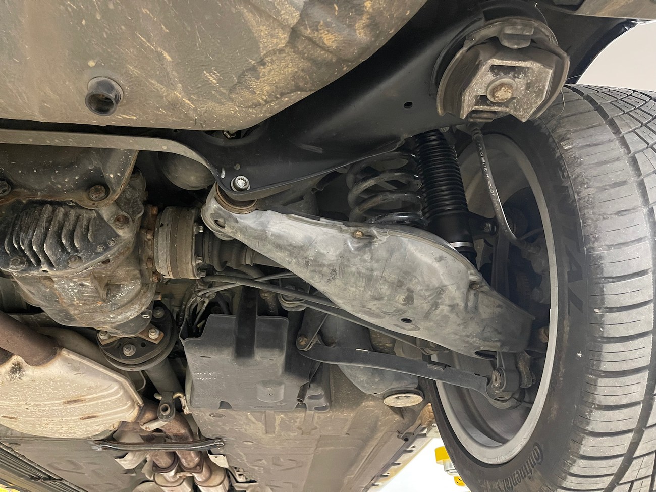 Authentic staggered 19" AMG Aero II monoblock wheels are fitted and come wrapped in a set of Continental Extreme Contact tires which were fitted new in 2024. The wheels are in excellent condition with polished lips and no curb marks. The self-leveling rear suspension maintains a constant rear ride height regardless of cargo load. New OEM 8mm spring pads were installed in the front to level the car from the factory height. A spare wheel and jack are located under the trunk floor. New front brake pads, rotors, and sway bar end links were installed in January 2025, with an alignment, new front lower control arms, bushings, and rear shocks fitted in October 2025.