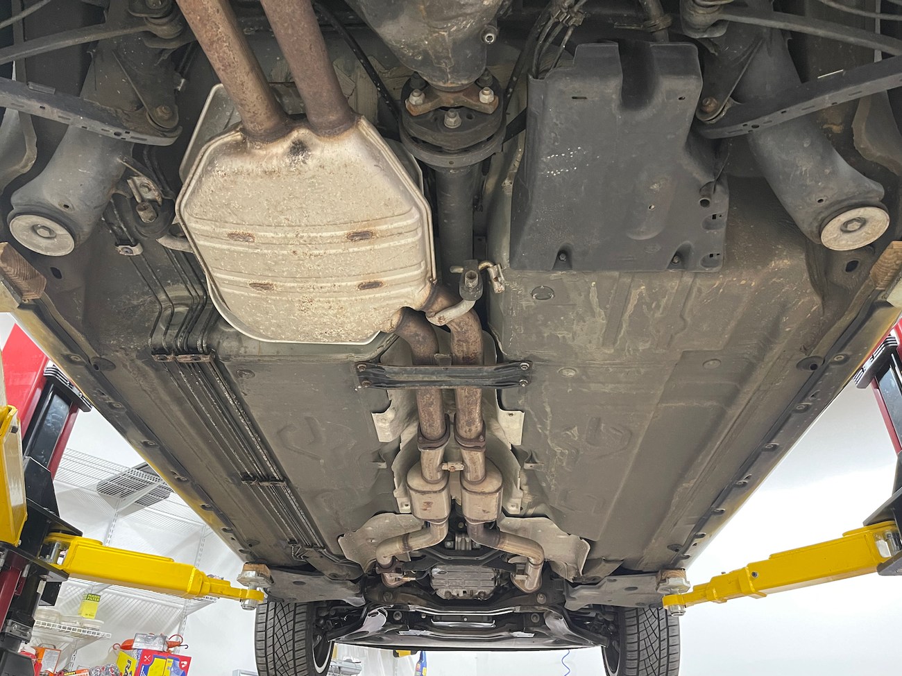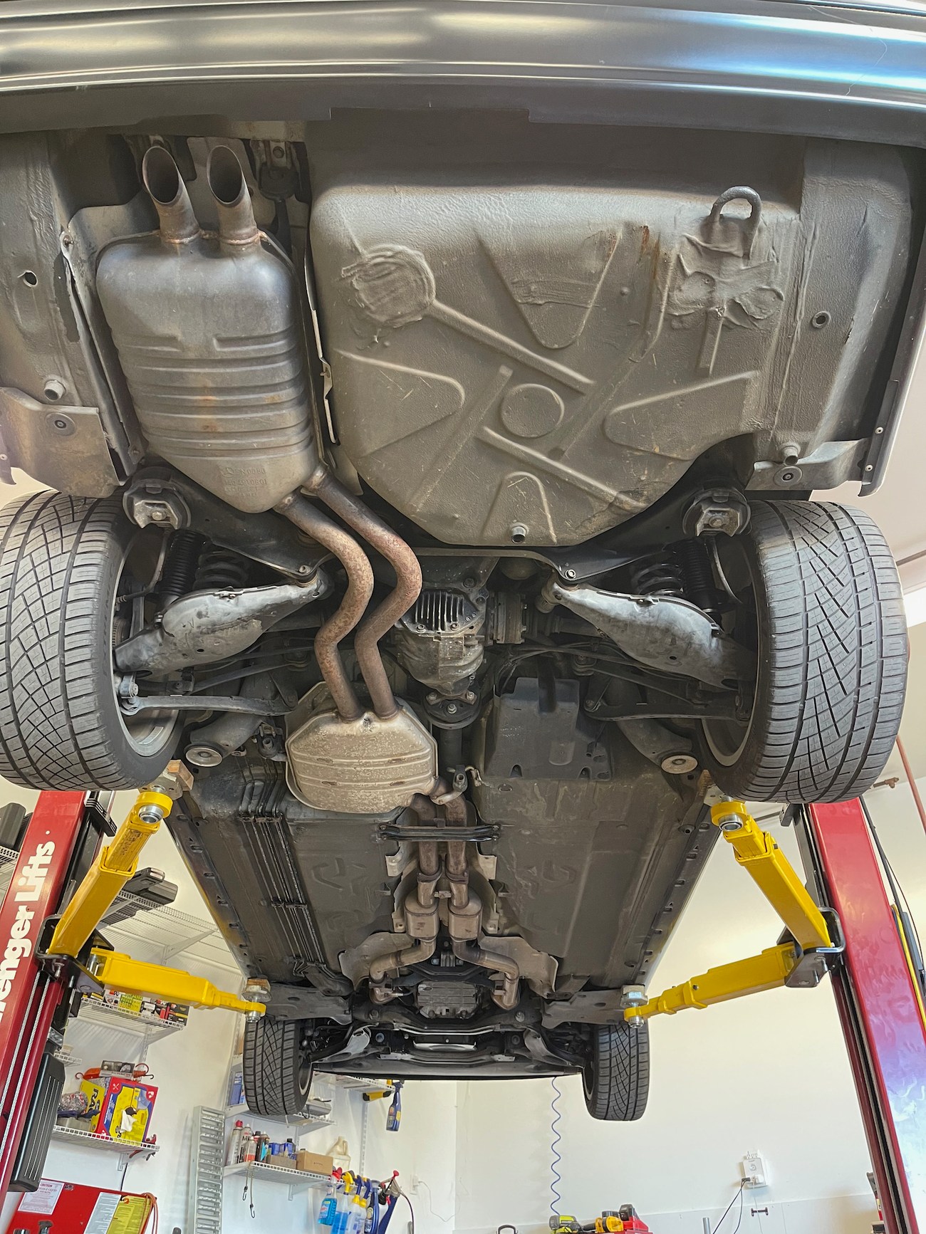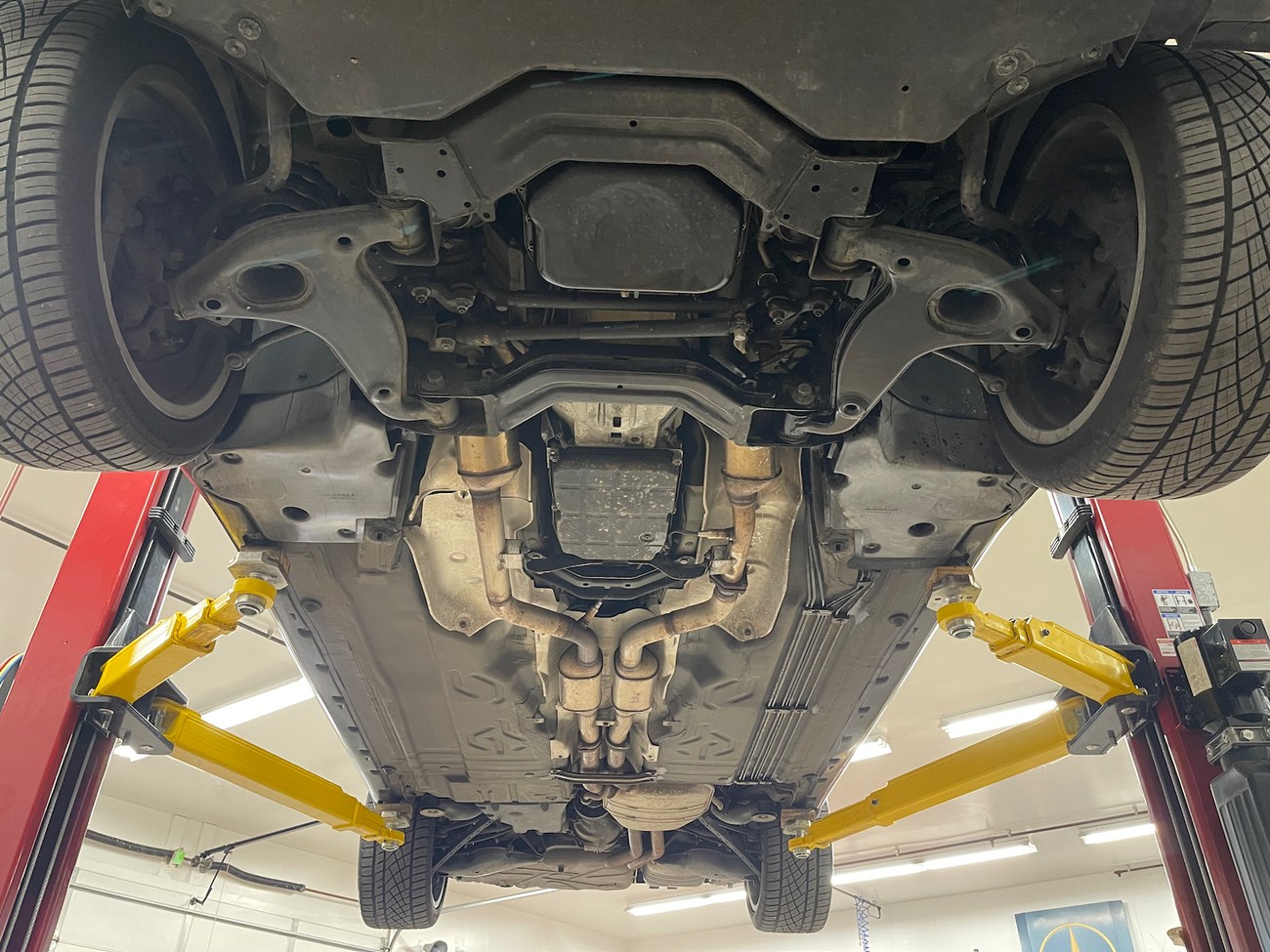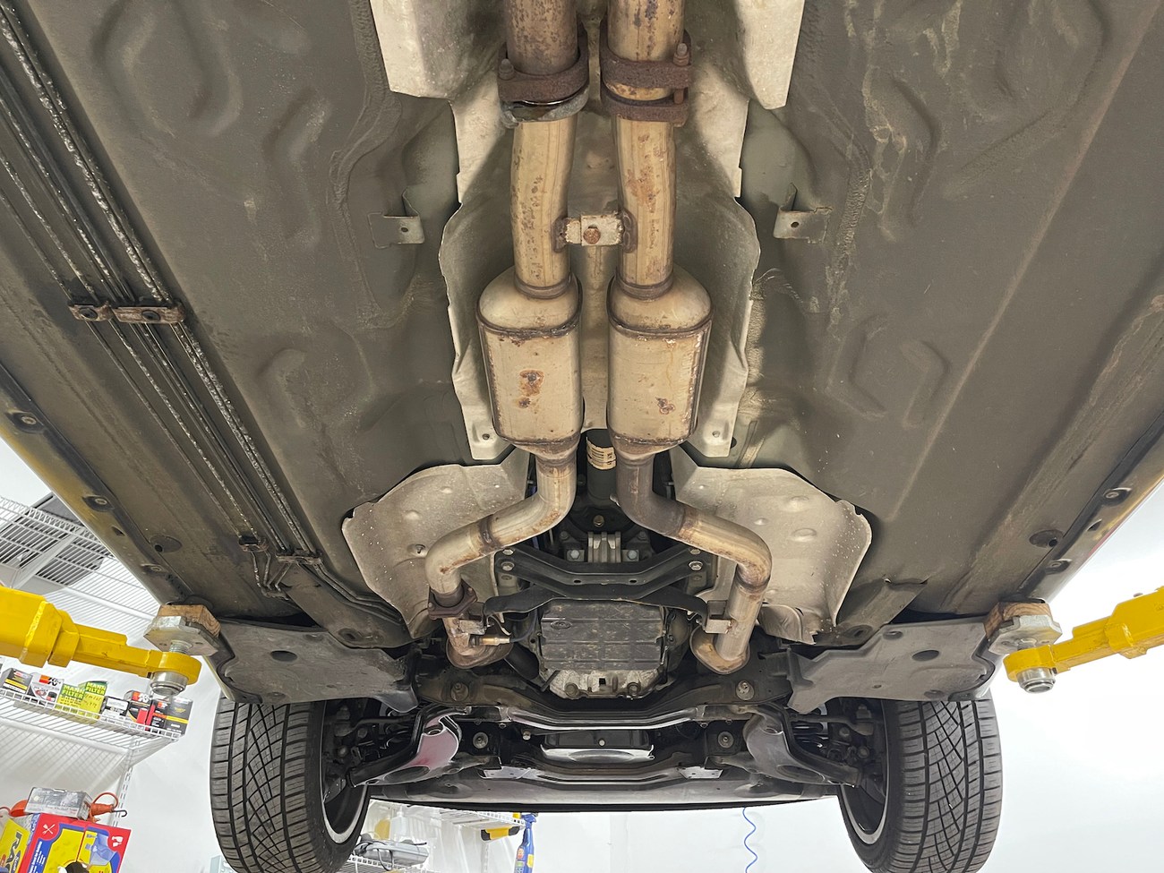 Authentic staggered 19" AMG Aero II monoblock wheels are fitted and come wrapped in a set of Continental Extreme Contact tires which were fitted new in 2024. The wheels are in excellent condition with polished lips and no curb marks. The self-leveling rear suspension maintains a constant rear ride height regardless of cargo load. New OEM 8mm spring pads were installed in the front to level the car from the factory height. A spare wheel and jack are located under the trunk floor. New front brake pads, rotors, and sway bar end links were installed in January 2025, with an alignment, new front lower control arms, bushings, and rear shocks fitted in October 2025.