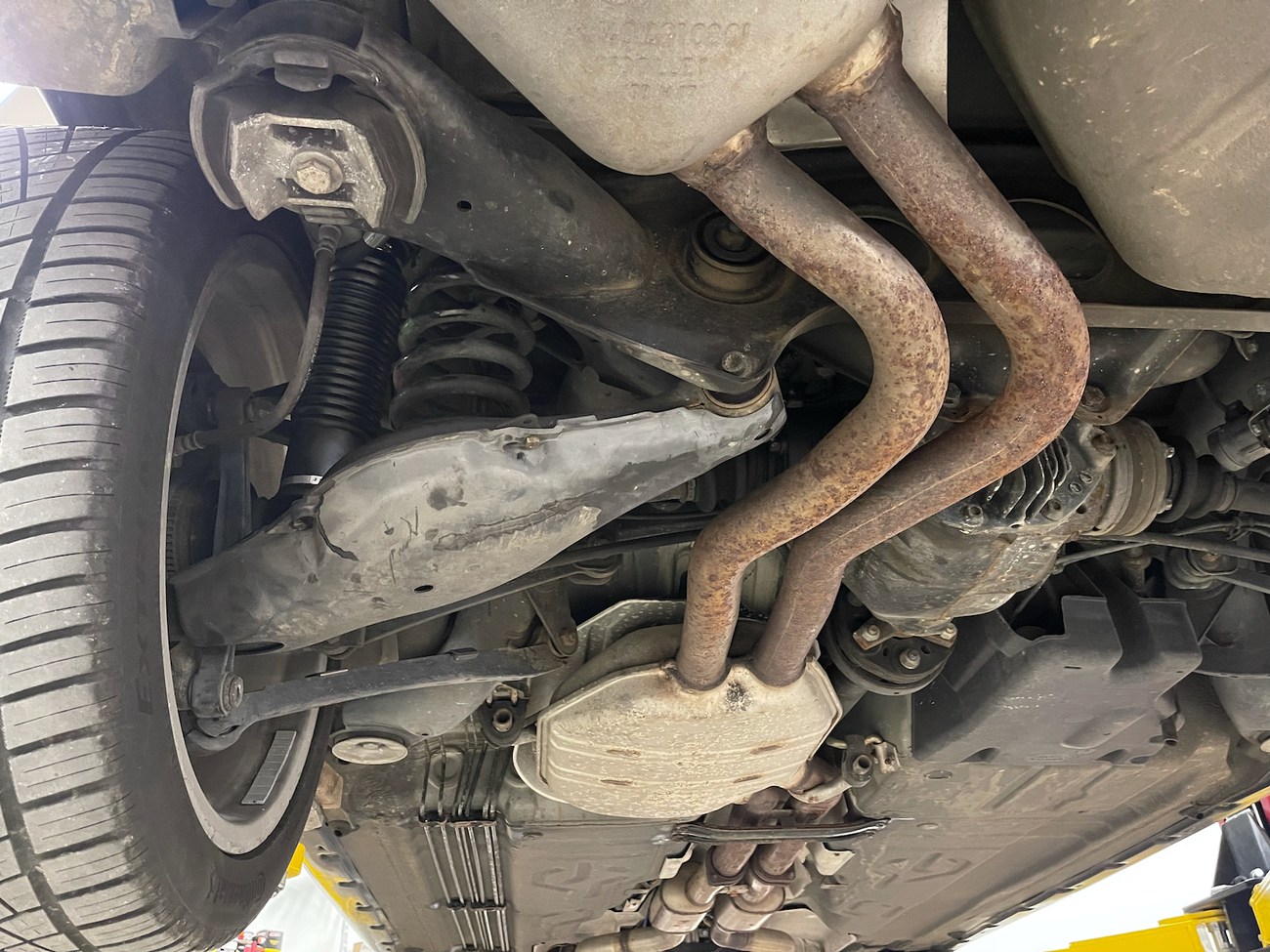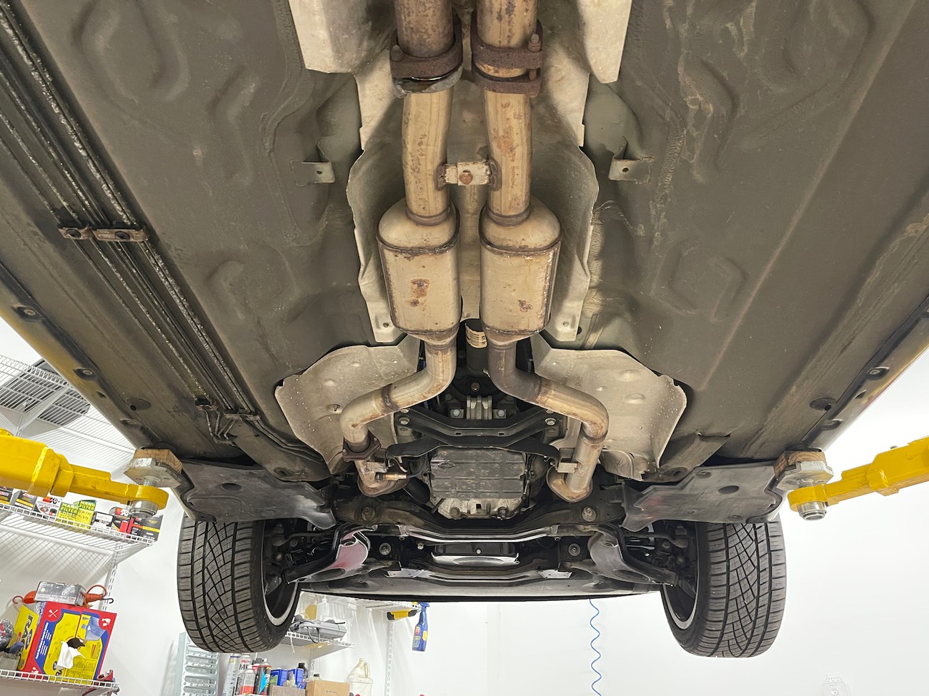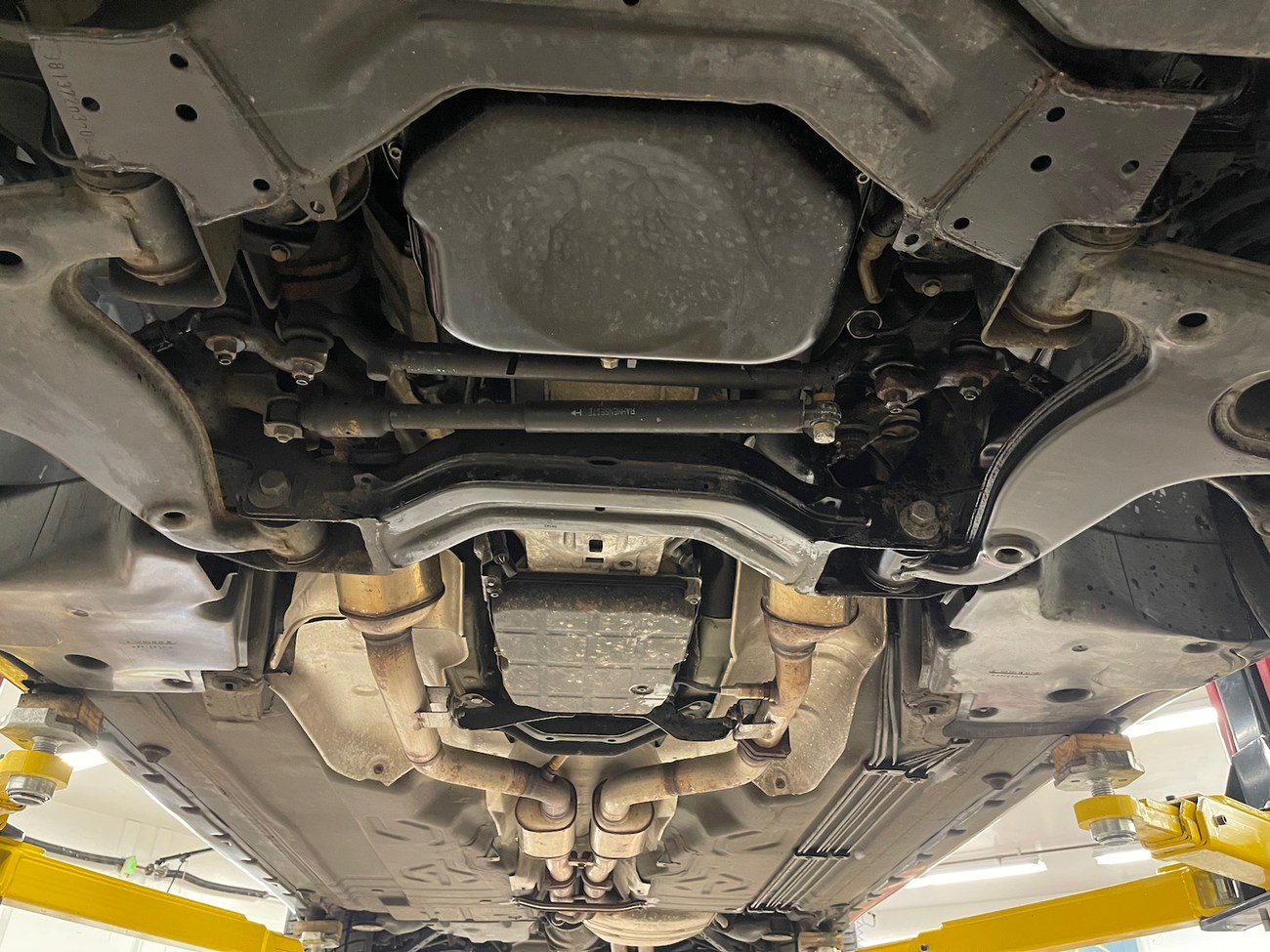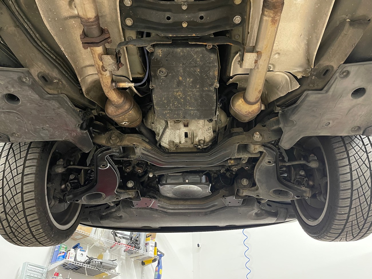 Authentic staggered 19" AMG Aero II monoblock wheels are fitted and come wrapped in a set of Continental Extreme Contact tires which were fitted new in 2024. The wheels are in excellent condition with polished lips and no curb marks. The self-leveling rear suspension maintains a constant rear ride height regardless of cargo load. New OEM 8mm spring pads were installed in the front to level the car from the factory height. A spare wheel and jack are located under the trunk floor. New front brake pads, rotors, and sway bar end links were installed in January 2025, with an alignment, new front lower control arms, bushings, and rear shocks fitted in October 2025.