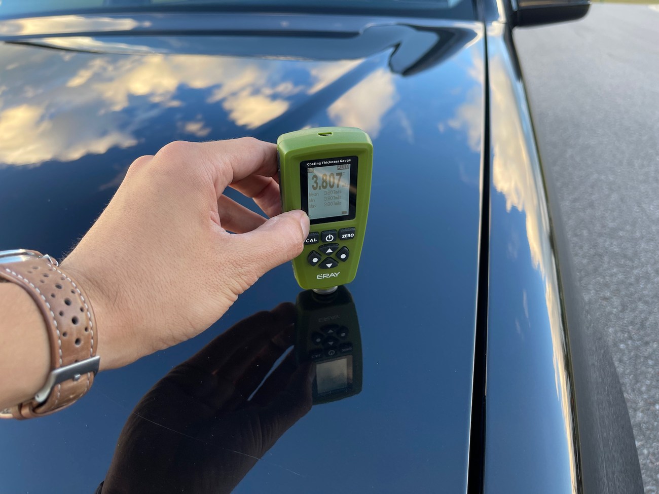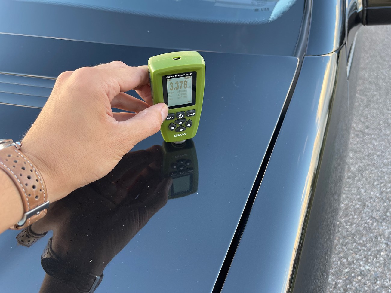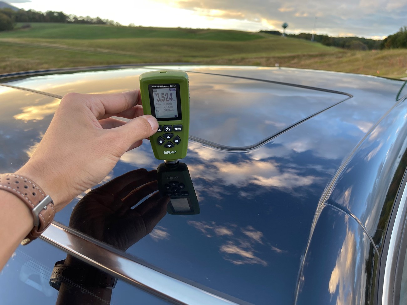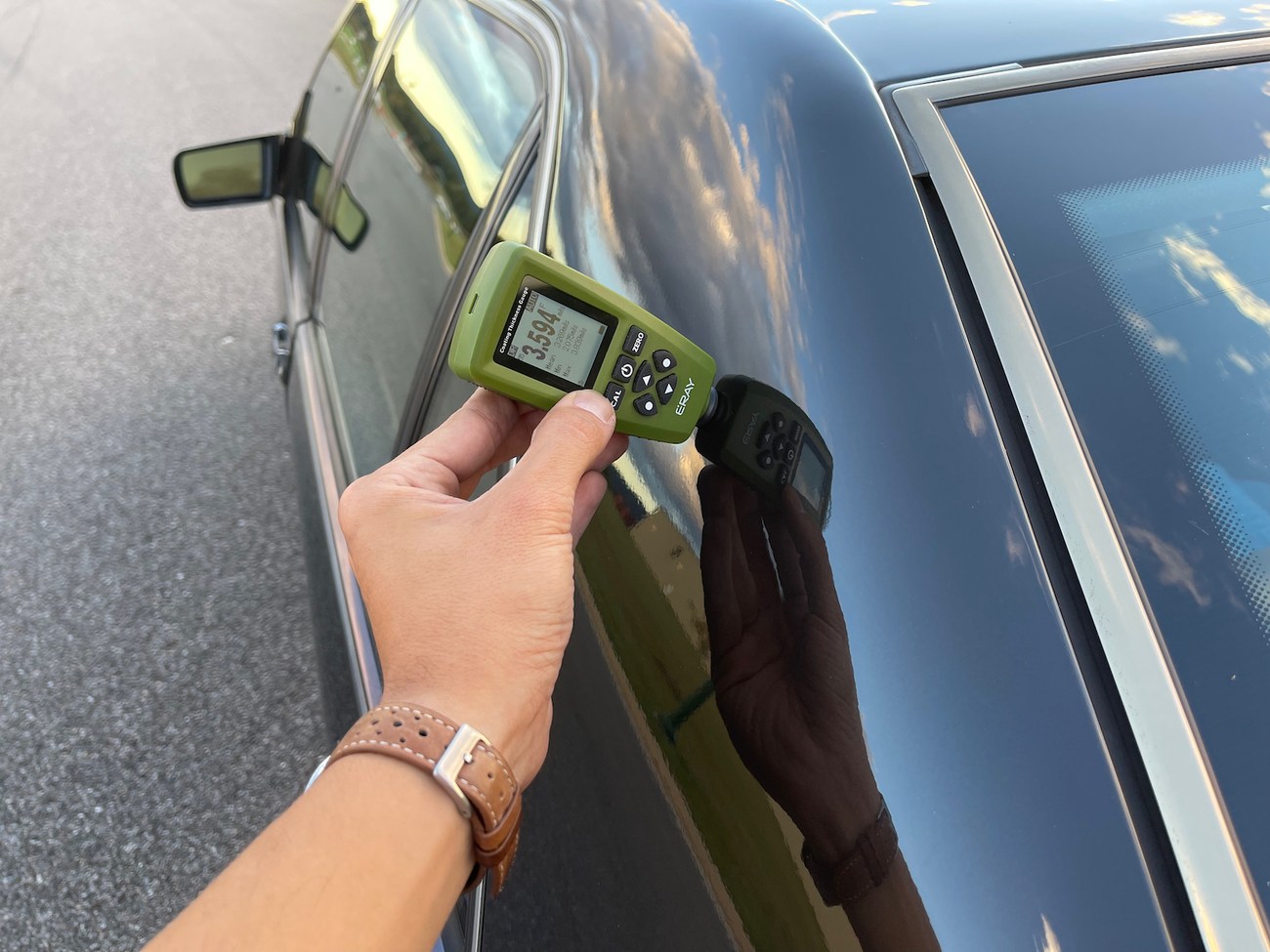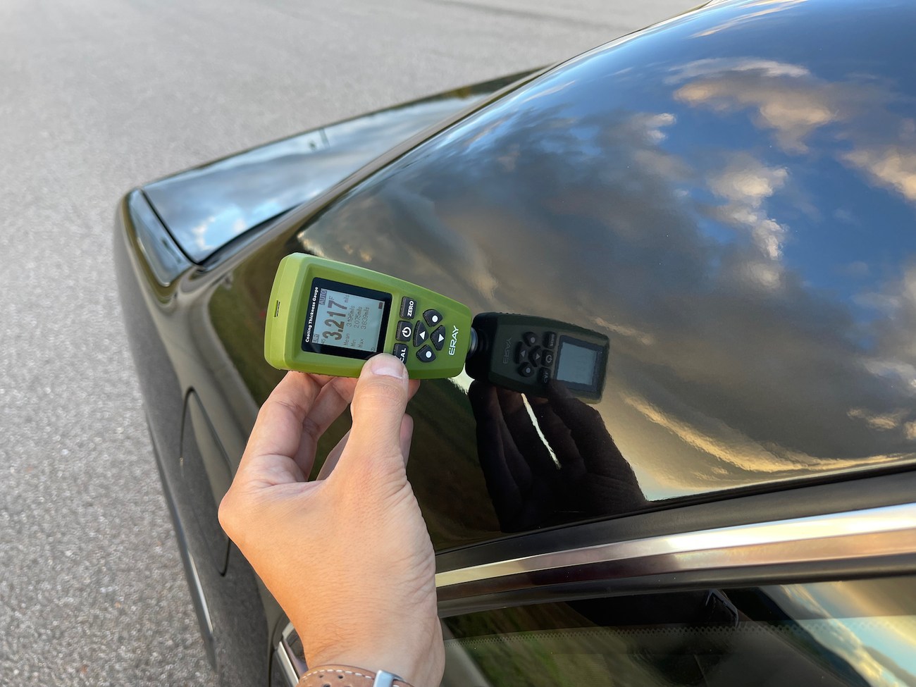 The long-wheelbase body is finished in Obsidian Black Metallic (197) and exterior equipment includes a power tilt/slide glass sunroof, Xenon HID headlamps with heated washers and wipers, heated power door mirrors, remote central locking and soft close doors. Very minor scratches are noted on the body and shown in the gallery with no signs of rust or damage. The car wears all original paint as verified by consistent paint meter readings and the clean Carfax report. The bumpers are also original paint with the factory semi-gloss finish. A paint correction and polish was performed in late 2024 along with a ceramic coating.