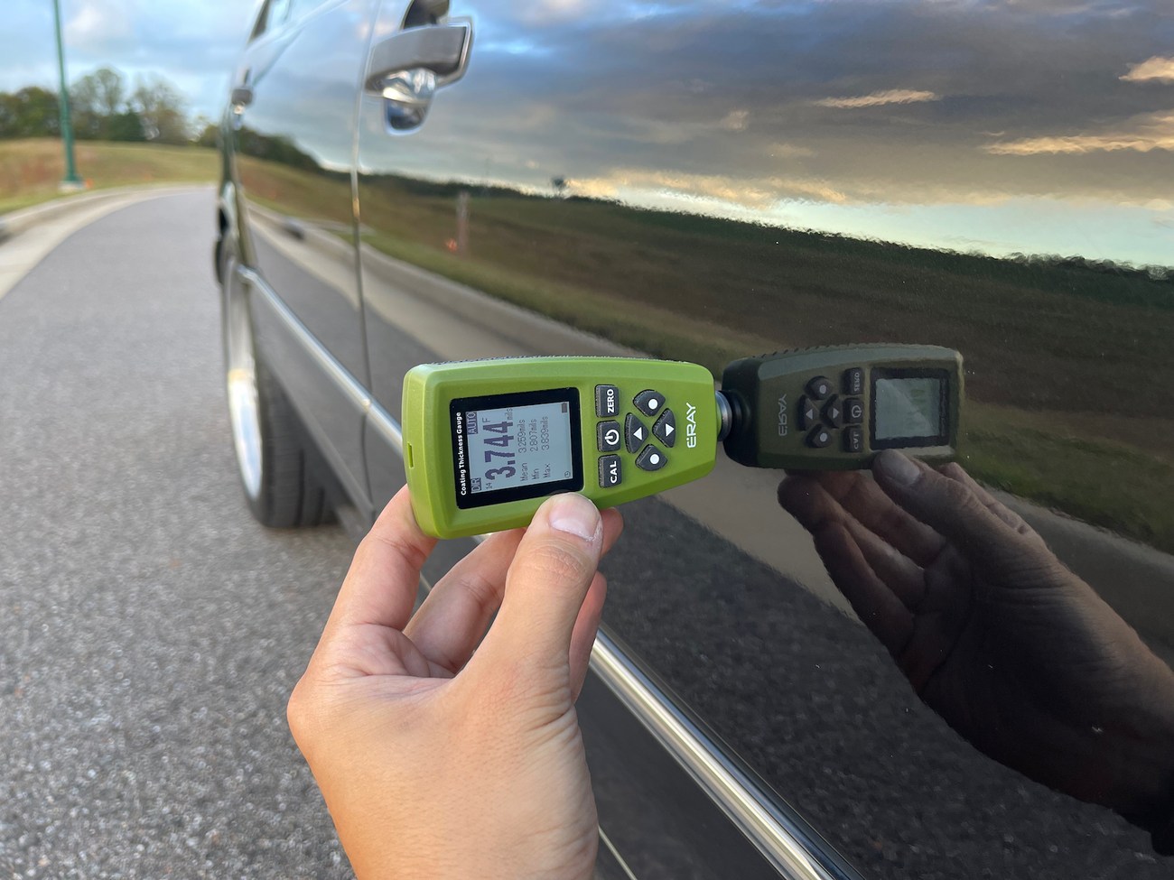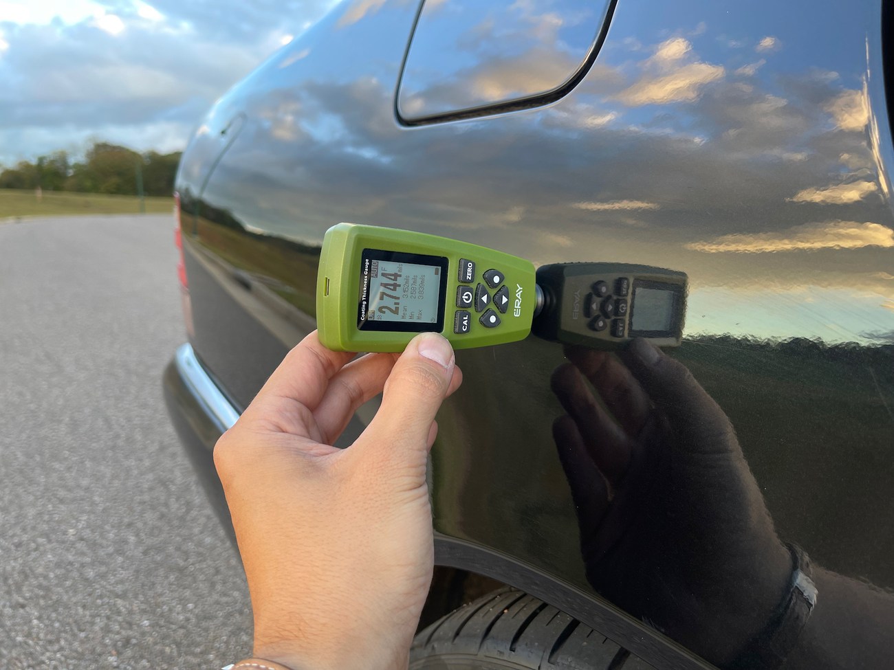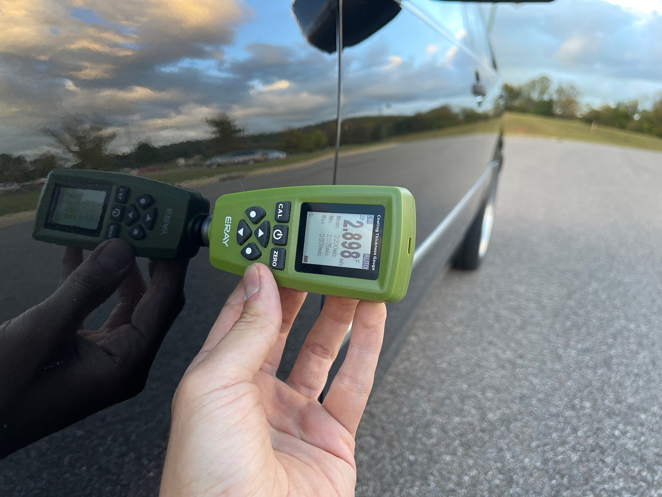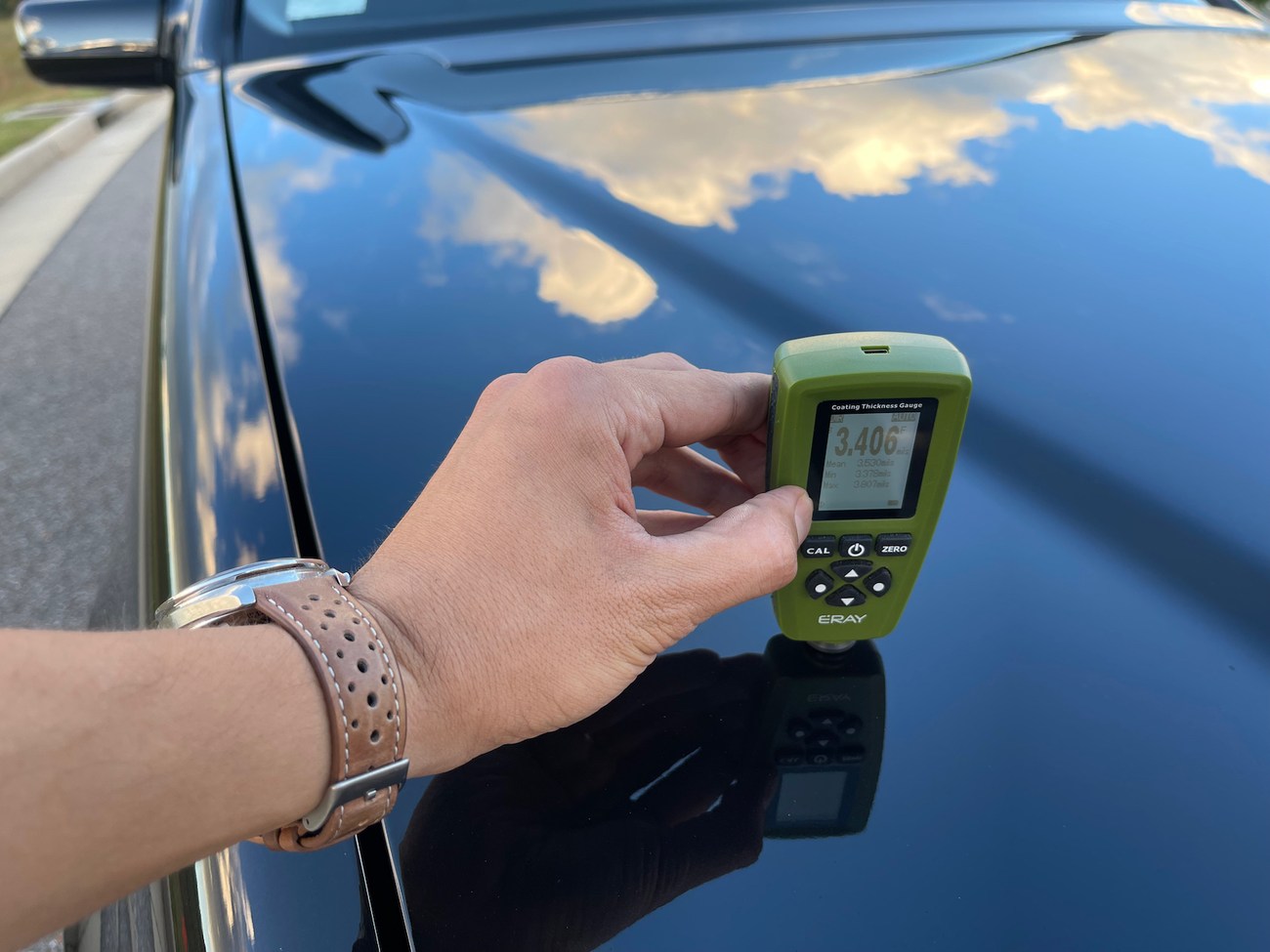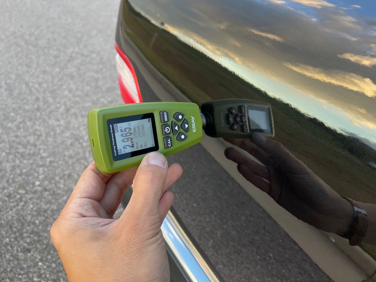 The long-wheelbase body is finished in Obsidian Black Metallic (197) and exterior equipment includes a power tilt/slide glass sunroof, Xenon HID headlamps with heated washers and wipers, heated power door mirrors, remote central locking and soft close doors. Very minor scratches are noted on the body and shown in the gallery with no signs of rust or damage. The car wears all original paint as verified by consistent paint meter readings and the clean Carfax report. The bumpers are also original paint with the factory semi-gloss finish. A paint correction and polish was performed in late 2024 along with a ceramic coating.