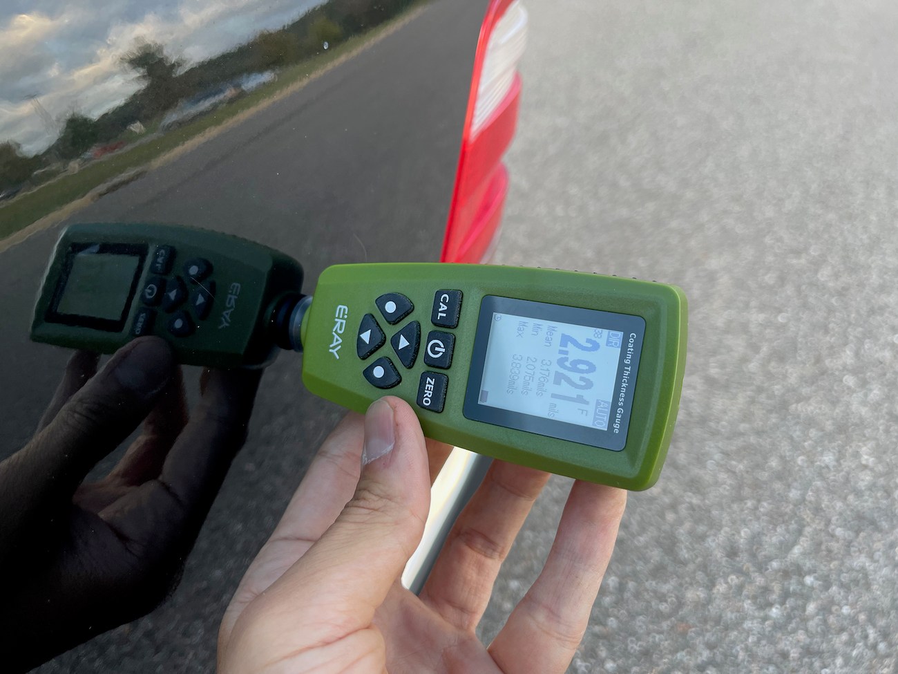 A leather steering wheel fronts analog instrumentation including a 160-mph speedometer, a 7k-rpm tachometer, an analog clock and gauges for fuel level, economy coolant temperature, and oil pressure. The digital odometer currently shows 93k miles, 13k of which have been added by the seller.