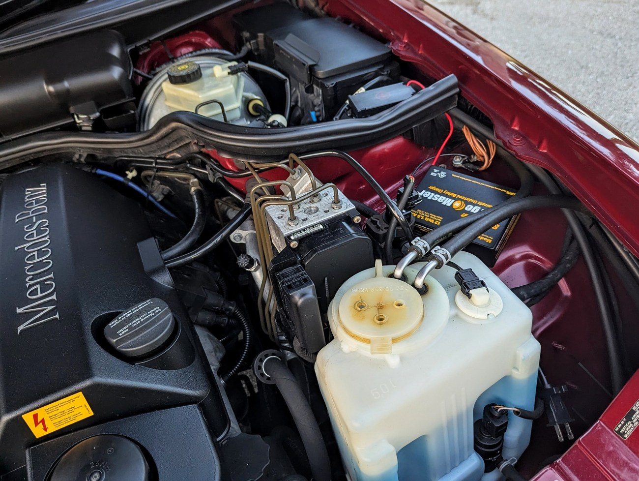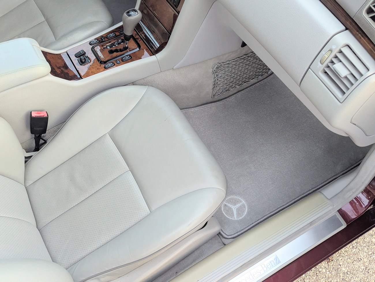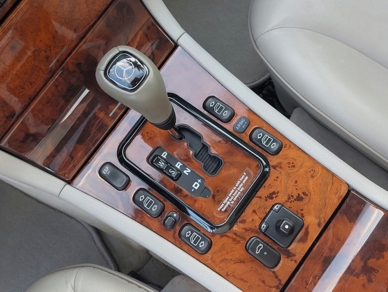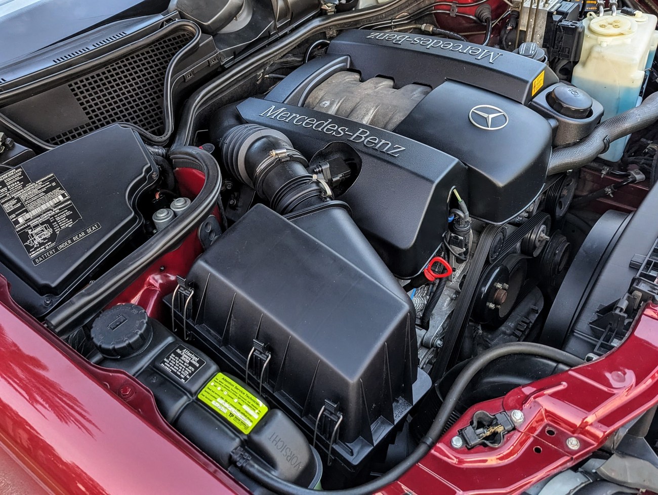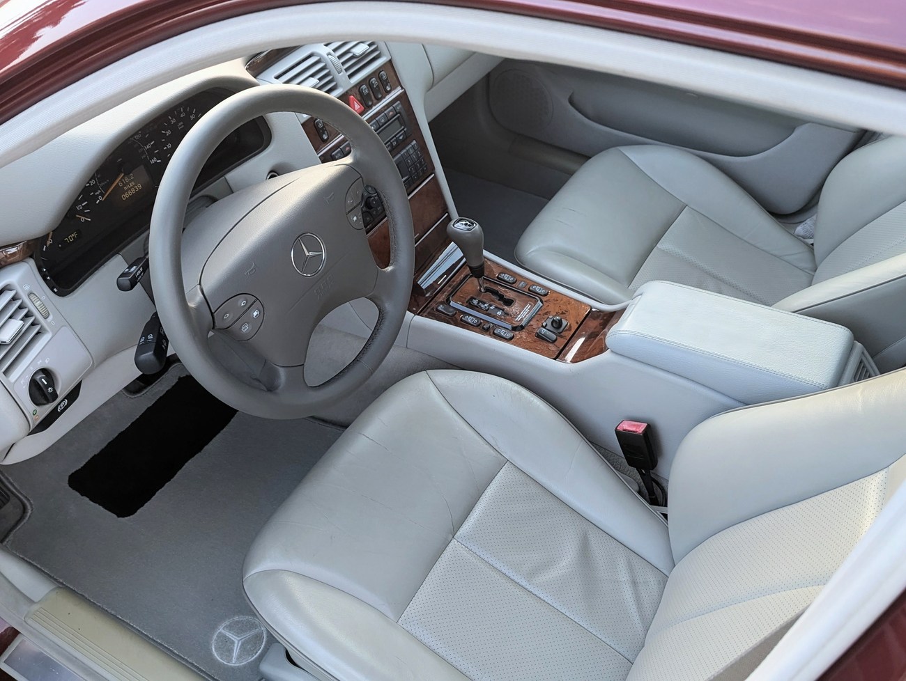 From the factory, the 3.2-liter M112 V6 is rated at 221 horsepower and 232 lb-ft of torque. Power is sent to the rear wheels through a five-speed 722.6 automatic transmission. Partial service records from the second owner and selling delaer accompany the vehicle. A full service in preparation for the sale was completed in March 2026 and included a fresh oil and filter change, transmission service, differential fluid flush, new valve cover gaskets, oil pan gasket, spark plugs, sunroof lubrication, and mono wiper blade.