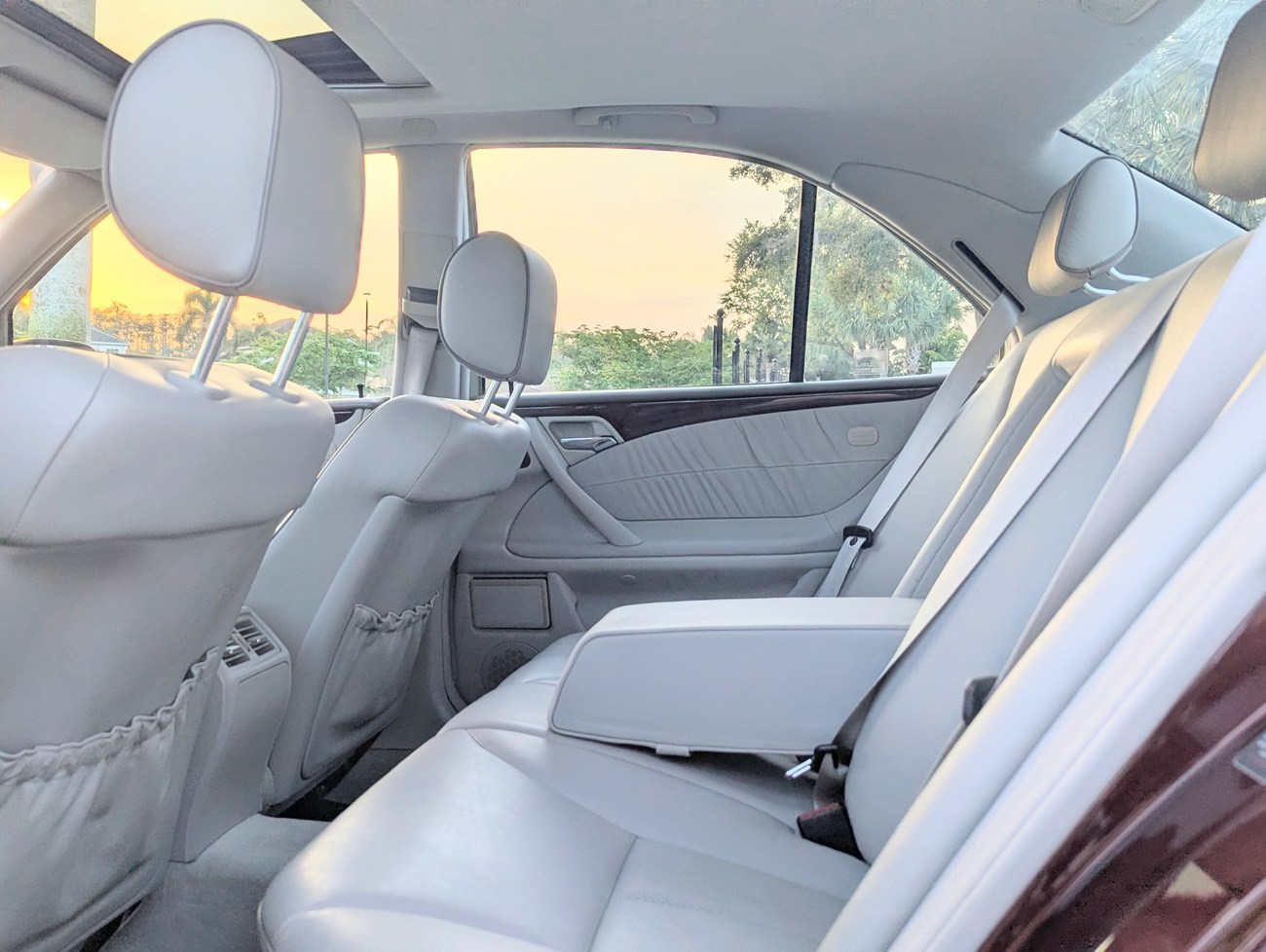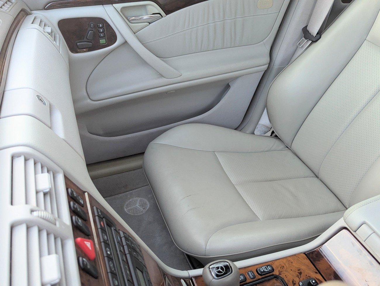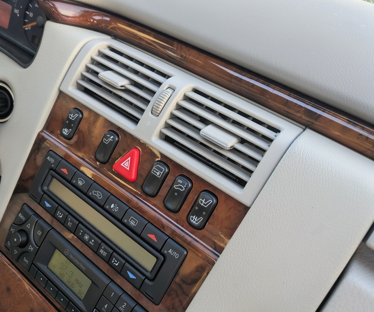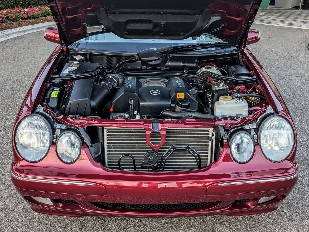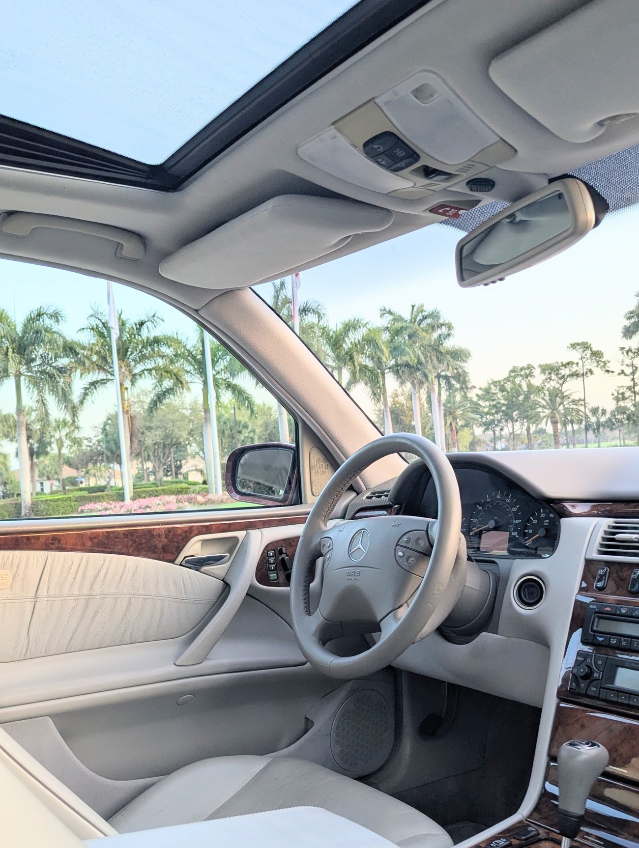 From the factory, the 3.2-liter M112 V6 is rated at 221 horsepower and 232 lb-ft of torque. Power is sent to the rear wheels through a five-speed 722.6 automatic transmission. Partial service records from the second owner and selling delaer accompany the vehicle. A full service in preparation for the sale was completed in March 2026 and included a fresh oil and filter change, transmission service, differential fluid flush, new valve cover gaskets, oil pan gasket, spark plugs, sunroof lubrication, and mono wiper blade.