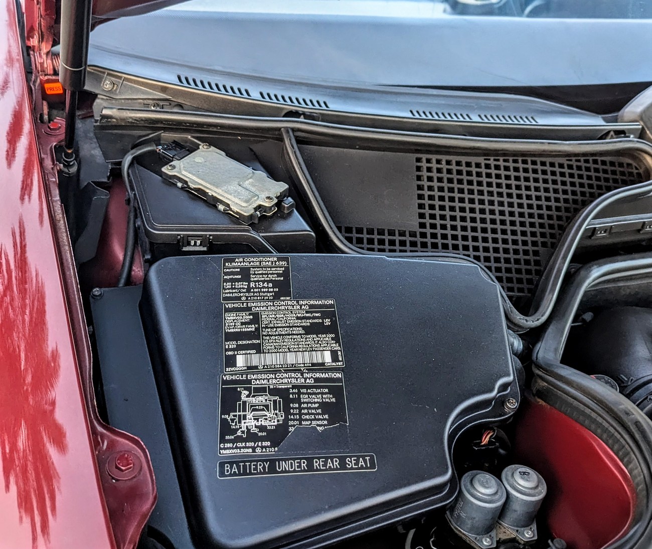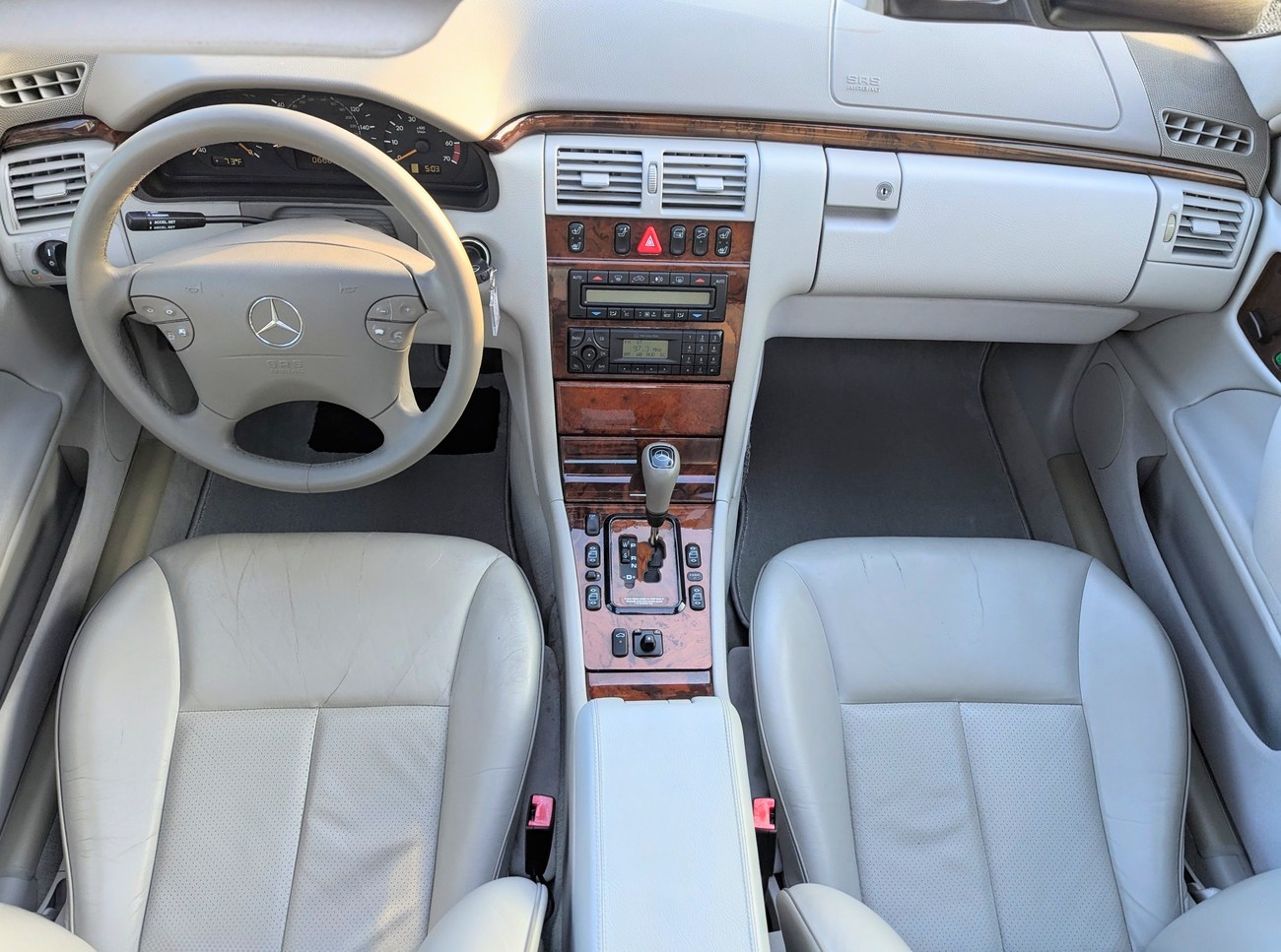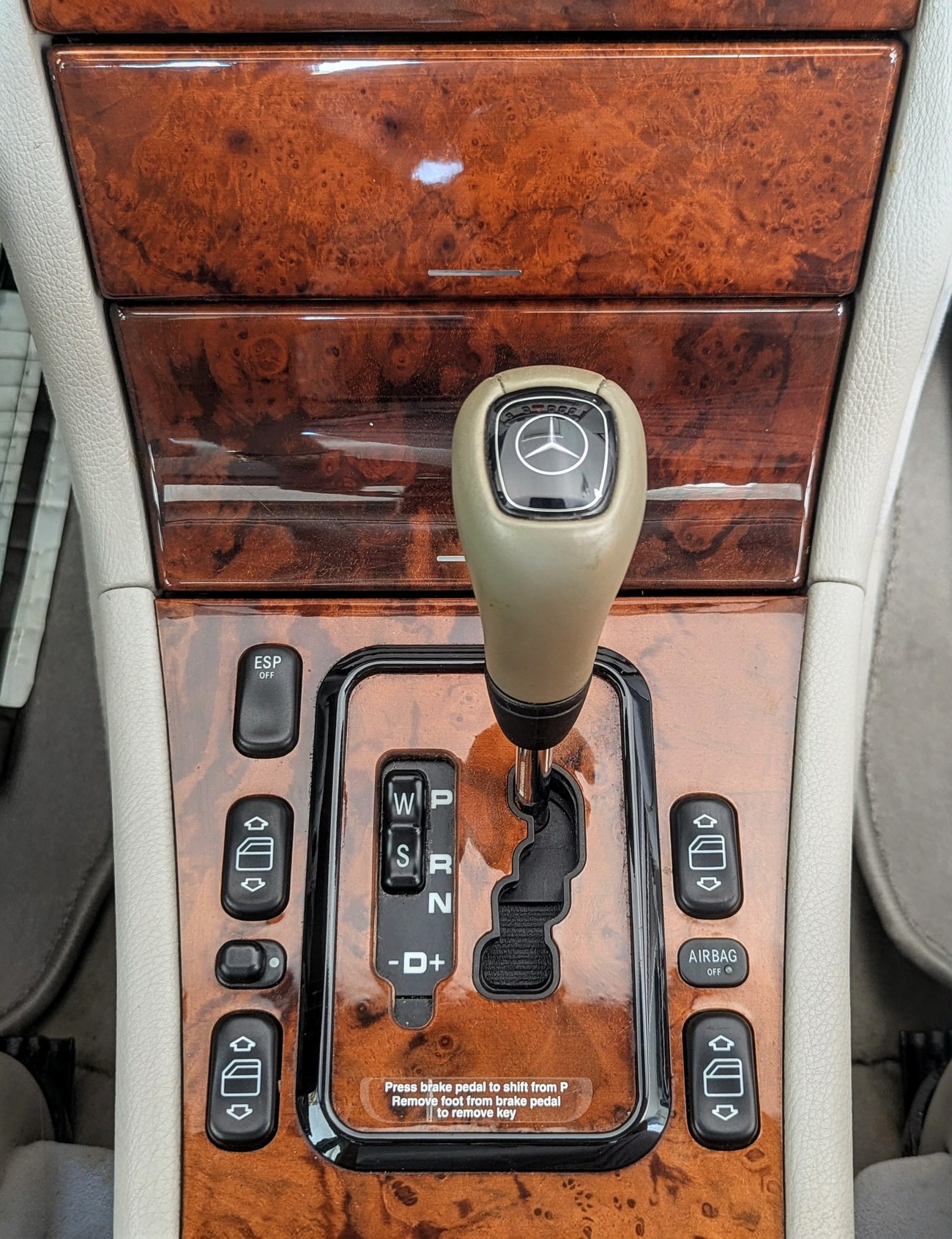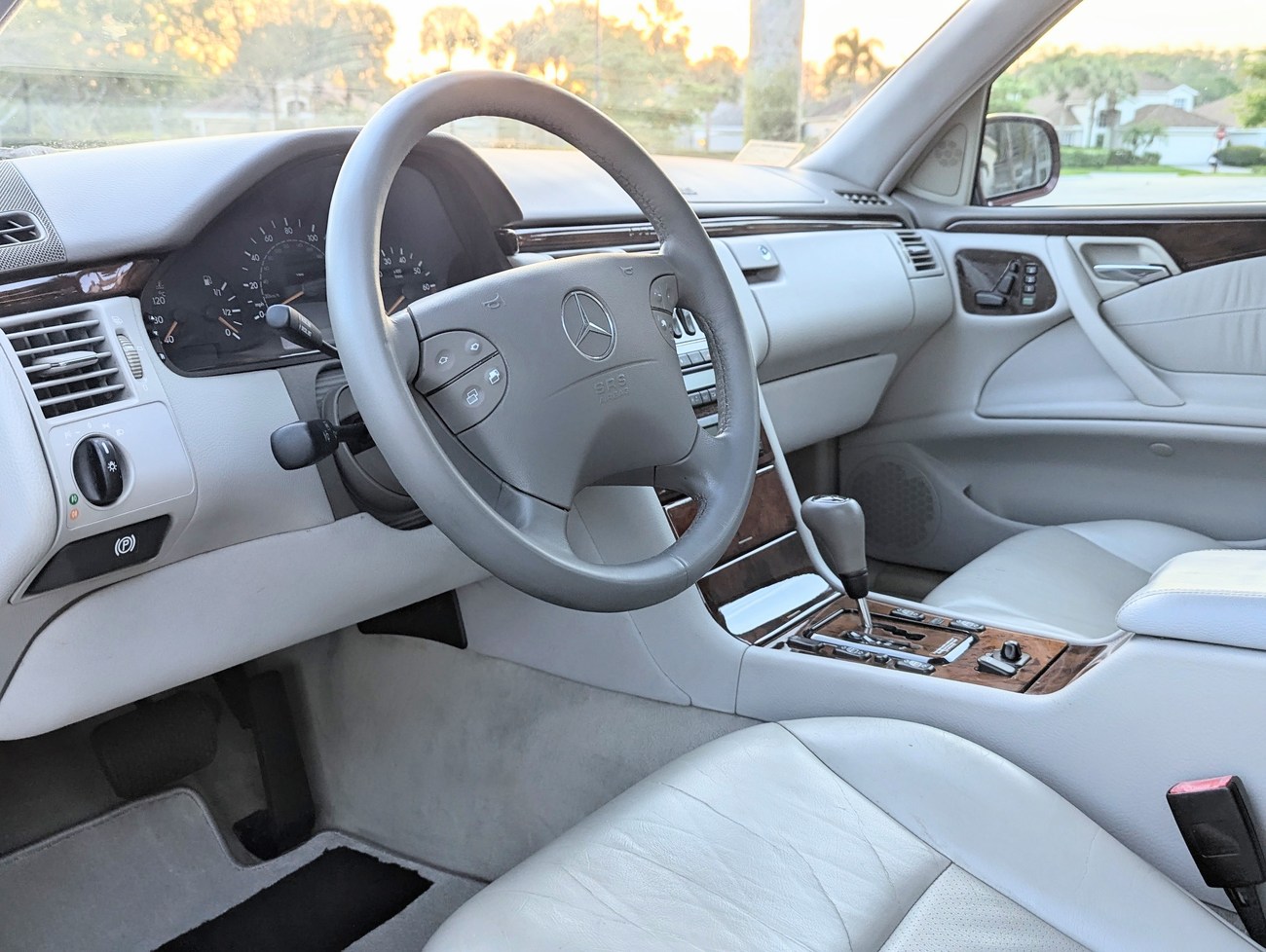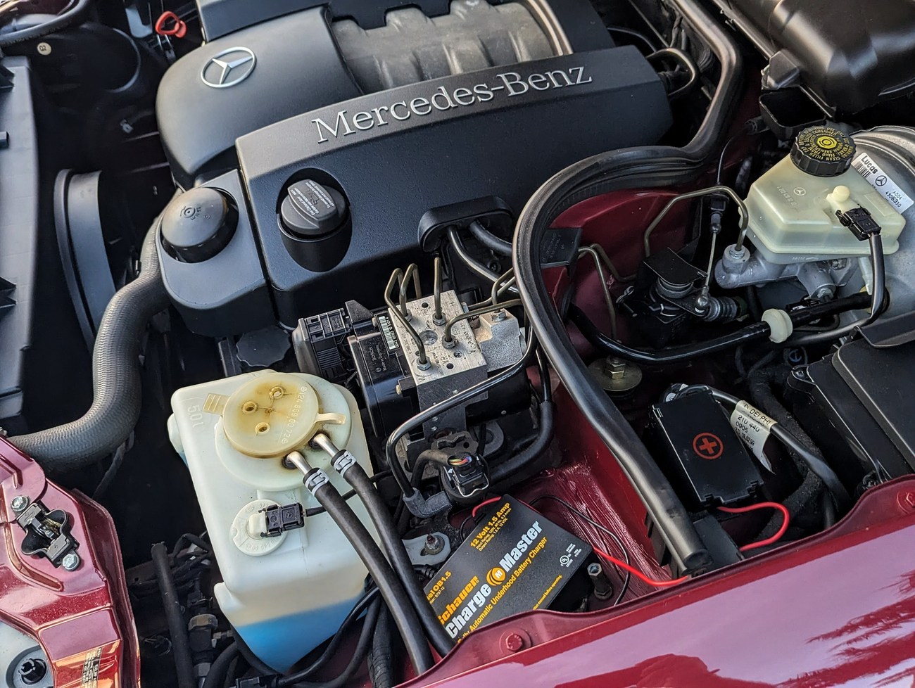 From the factory, the 3.2-liter M112 V6 is rated at 221 horsepower and 232 lb-ft of torque. Power is sent to the rear wheels through a five-speed 722.6 automatic transmission. Partial service records from the second owner and selling delaer accompany the vehicle. A full service in preparation for the sale was completed in March 2026 and included a fresh oil and filter change, transmission service, differential fluid flush, new valve cover gaskets, oil pan gasket, spark plugs, sunroof lubrication, and mono wiper blade.