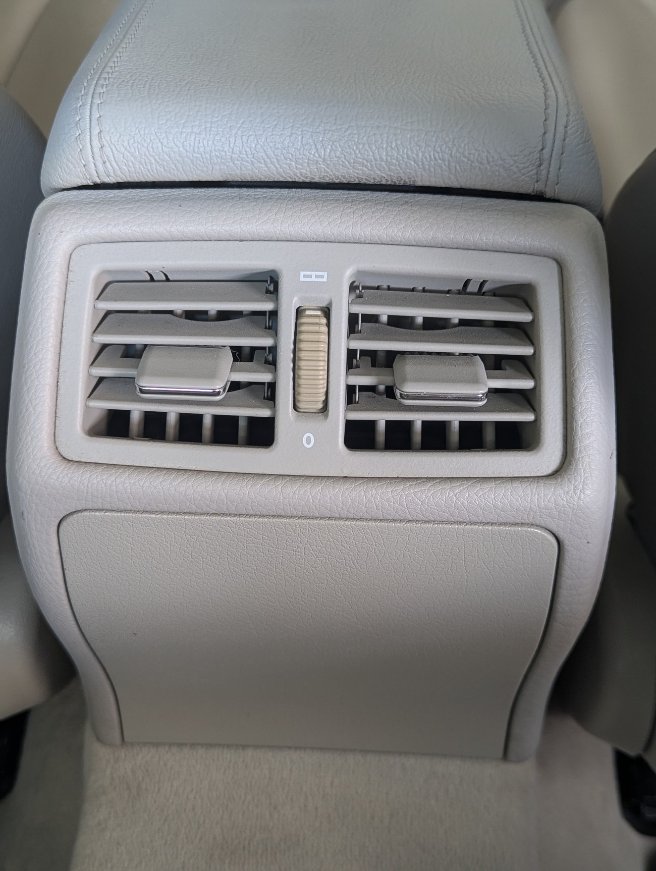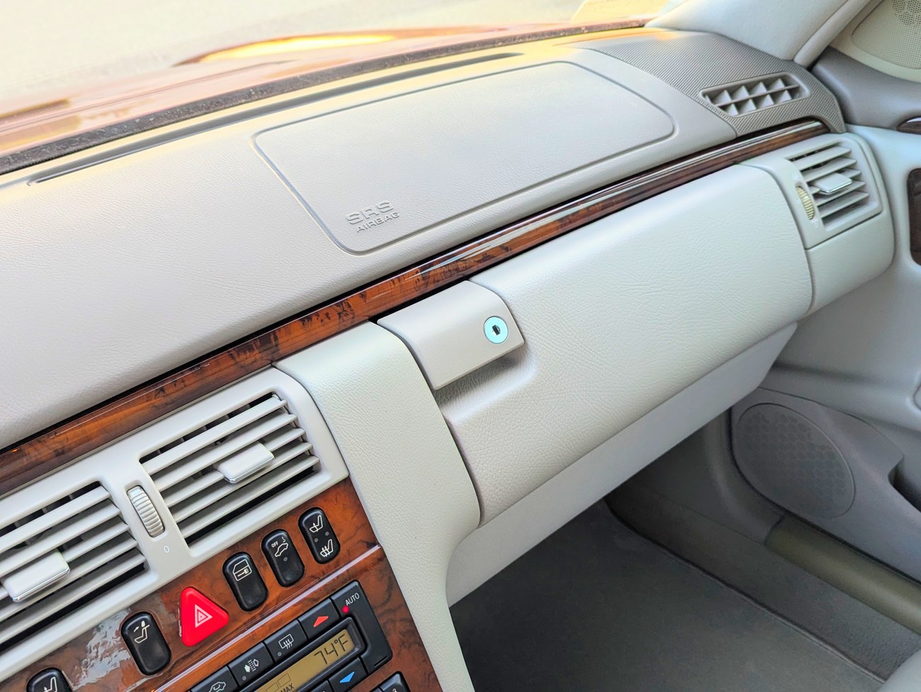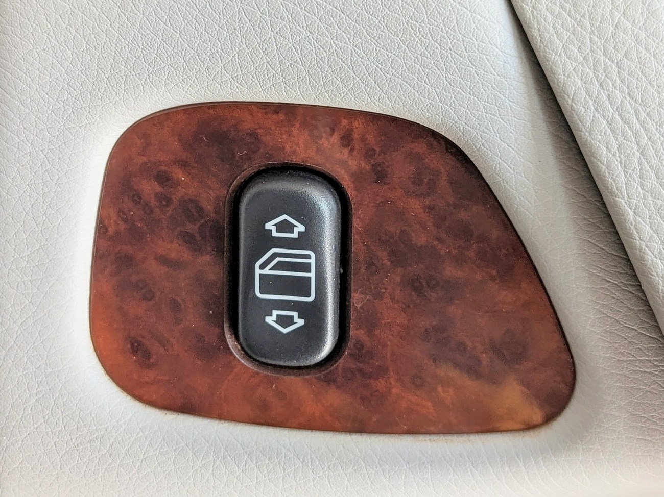 The cabin is finished in Quartz Leather (215) adorning the front seats, rear seats, headrests, and door cards. Burl wood trim accents the dashboard, center console, and door panels. Other amenities include heated and power-adjustable front seats with memory settings, dual-zone automatic climate control, electrically-adjustable side mirrors, an alarm system, and BOSE premium sound. The factory floor mats still accompany the car and feature the Mercedes-Benz logo embroidered on the front pair.