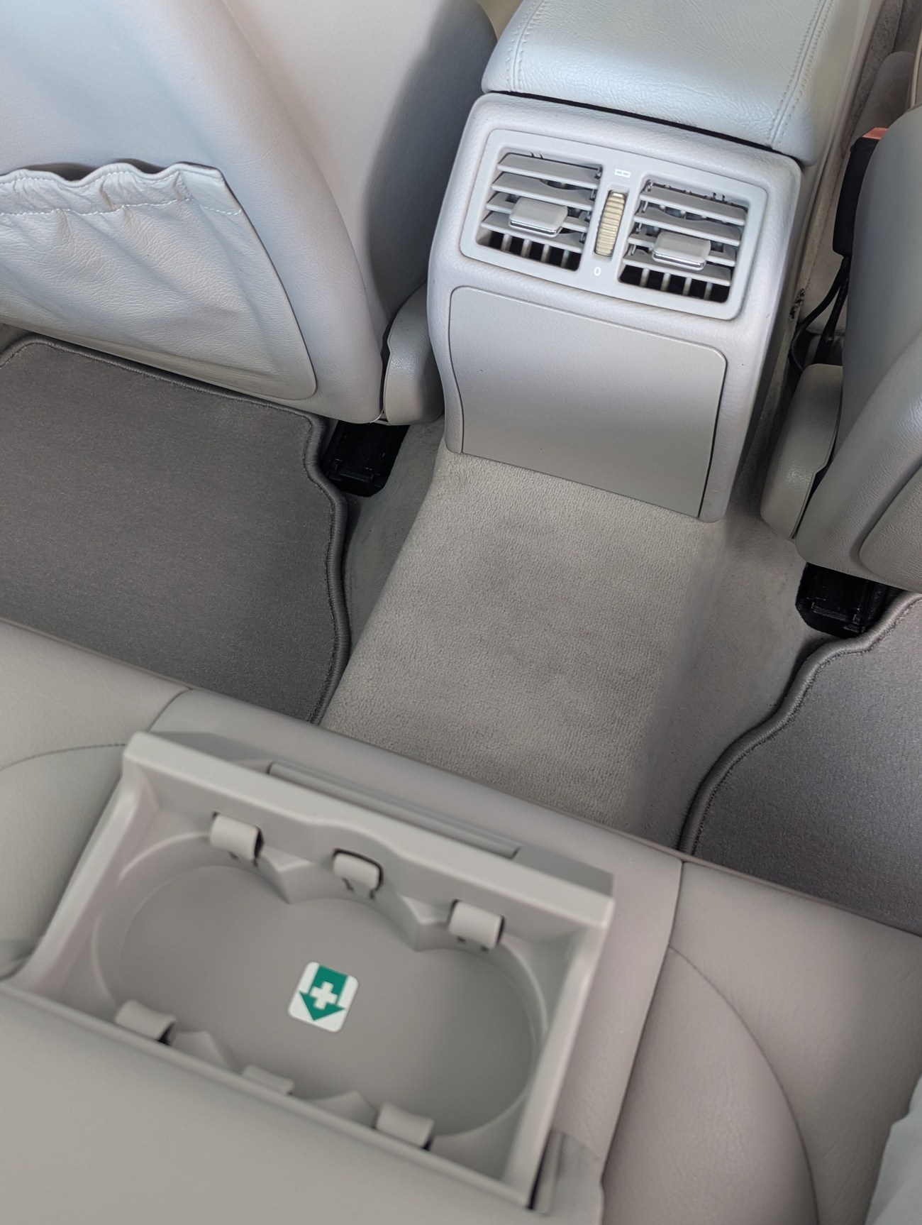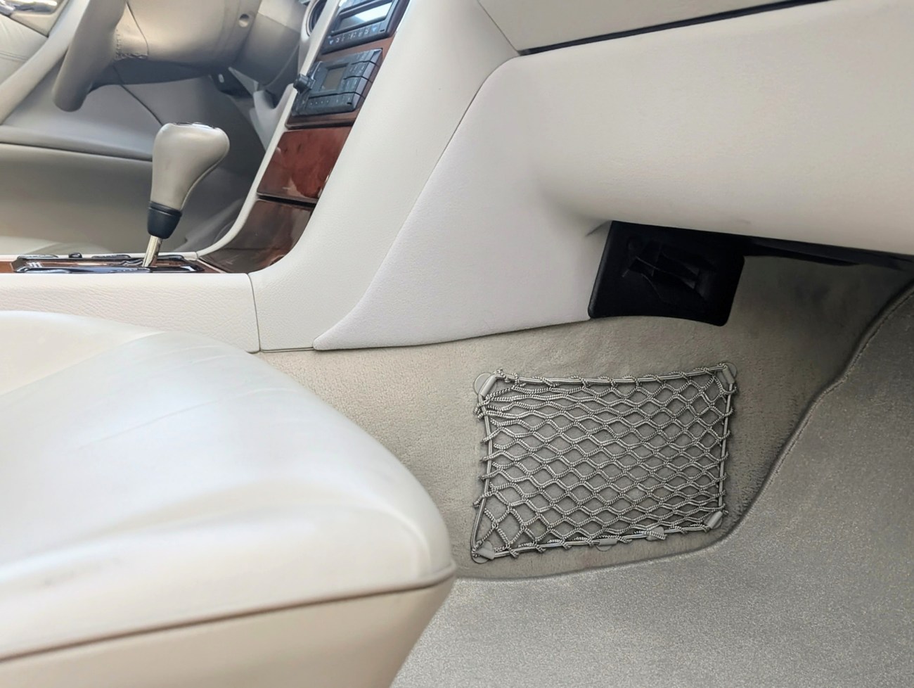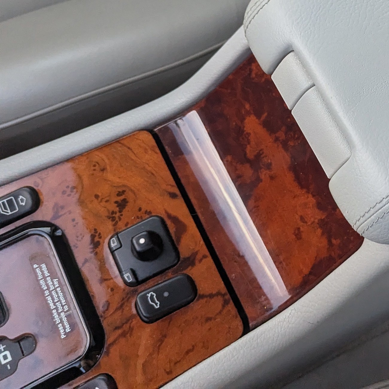 The cabin is finished in Quartz Leather (215) adorning the front seats, rear seats, headrests, and door cards. Burl wood trim accents the dashboard, center console, and door panels. Other amenities include heated and power-adjustable front seats with memory settings, dual-zone automatic climate control, electrically-adjustable side mirrors, an alarm system, and BOSE premium sound. The factory floor mats still accompany the car and feature the Mercedes-Benz logo embroidered on the front pair.