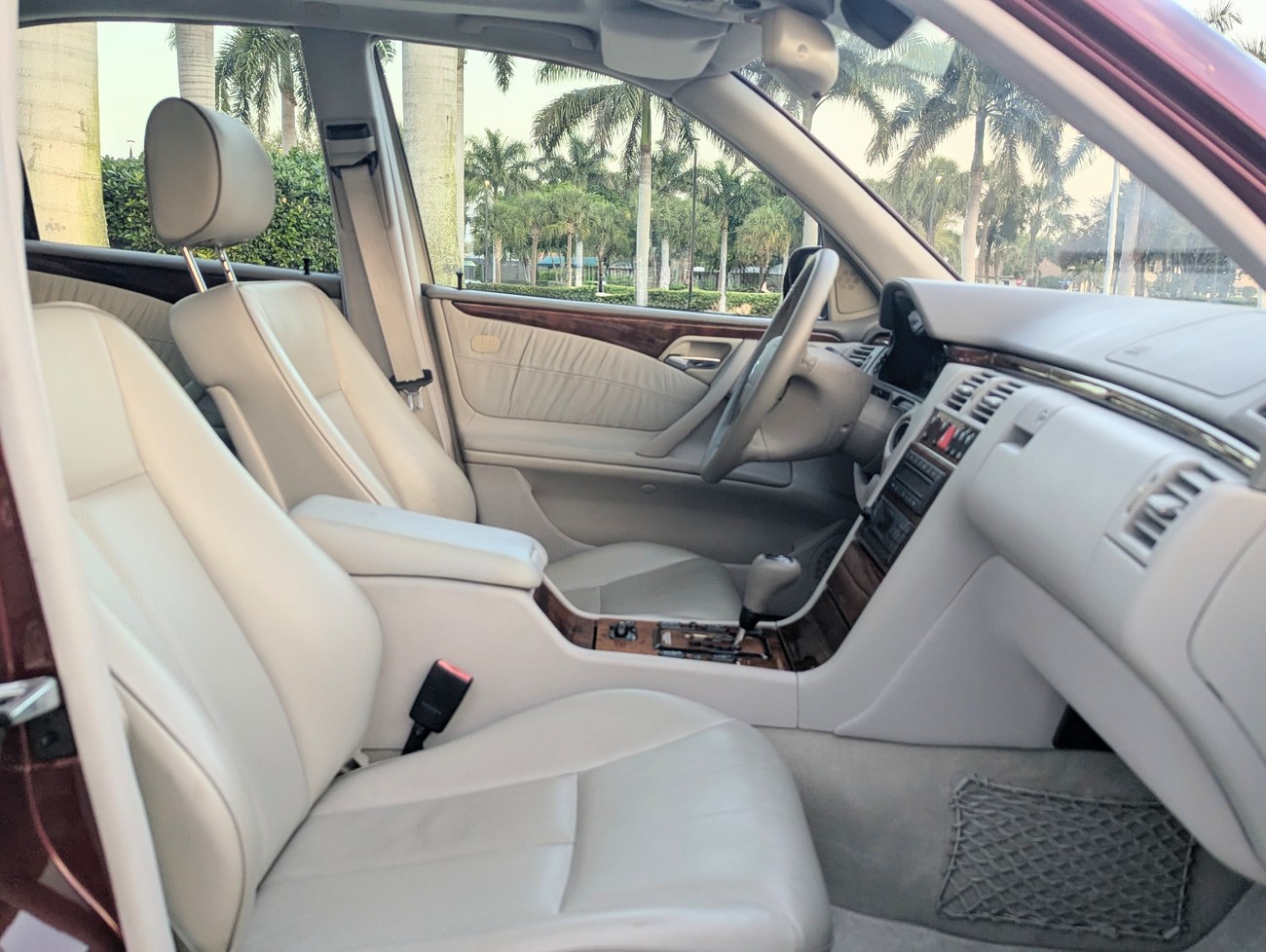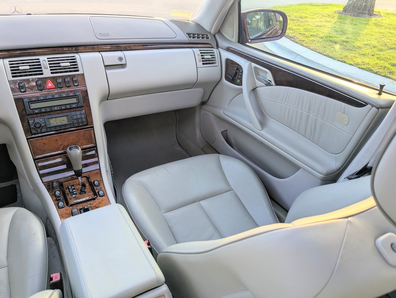 This 2000 Mercedes-Benz E320 was sold new at Mercedes-Benz of Cincinnati in March of 2000 and remained with its first owner until 2023. The car has since relocated to Florida and was recently acquired by the selling dealer. Finished in Bordeaux Red Metallic (567) over Quartz Leather (215), power is provided by a 3.2-liter M112 paired with a five-speed automatic transmission. Equipment includes heated front seats with memory, a sunroof, fog lights, and dual-zone automatic climate control. A service in preparation for the sale included a transmission service, differential fluid flush, new valve cover gaskets, oil pan gasket, spark plugs, wiper blades, and oil change. This W210 currently shows just under 67k miles and is offered by the selling dealer at No Reserve with manufacturer’s literature, one key, partial service records, a clean Carfax report, and a clean Florida title.