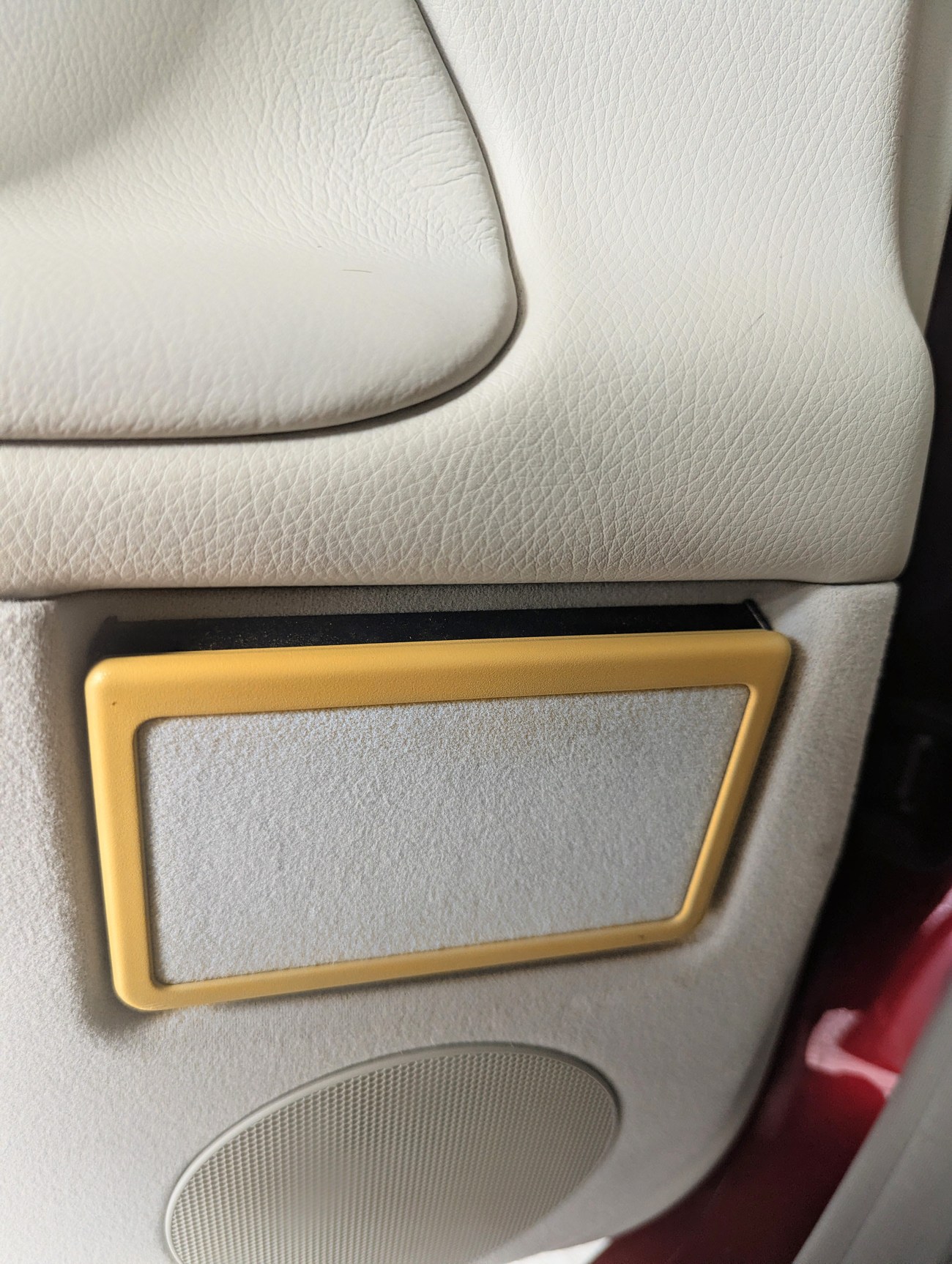 The leather-wrapped steering wheel frames a VDO 160-mph speedometer, a 7k-rpm tachometer, and gauges for coolant temperature and fuel level. The multi-function steering wheel is able to operate volume, radio stations, and toggle driving data through the center LCD screen. The digital odometer indicates just under 67k miles from new.