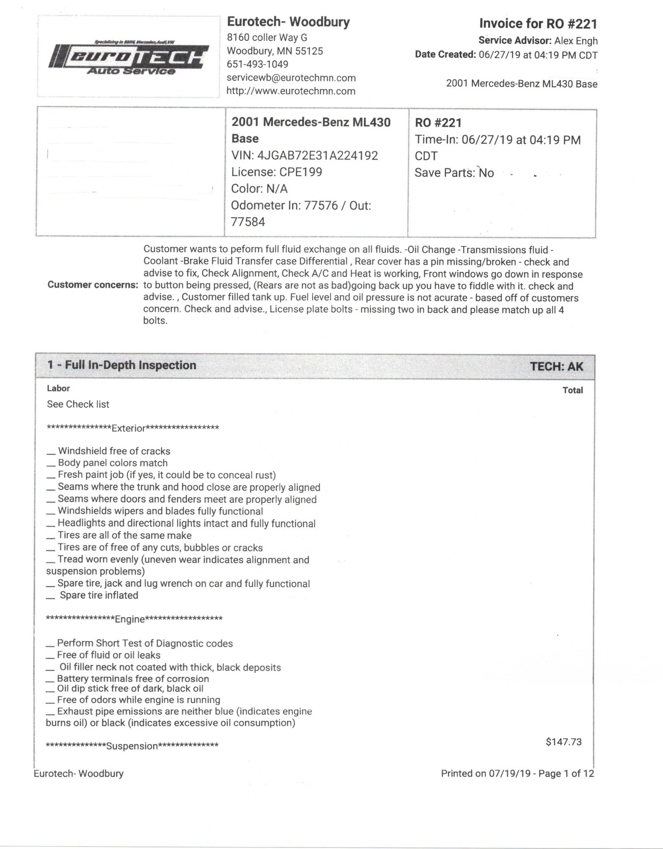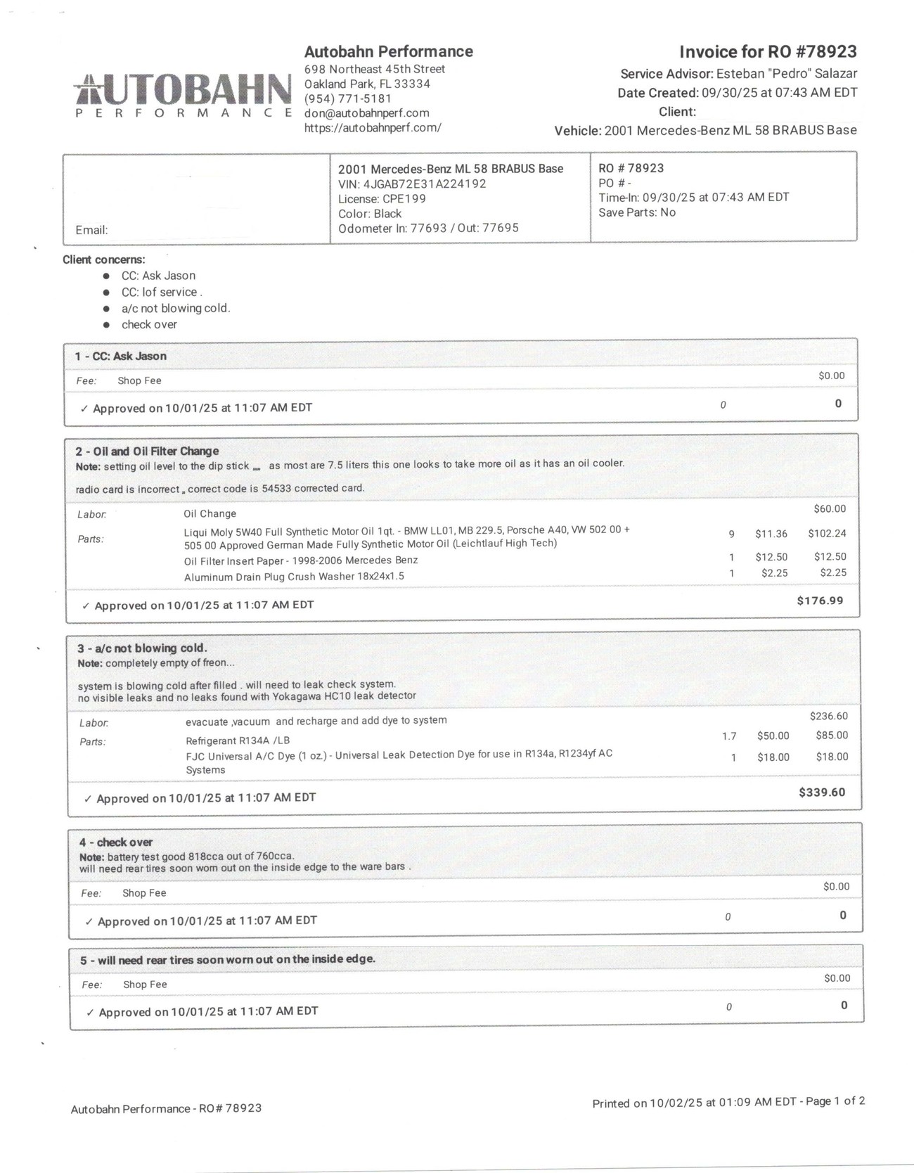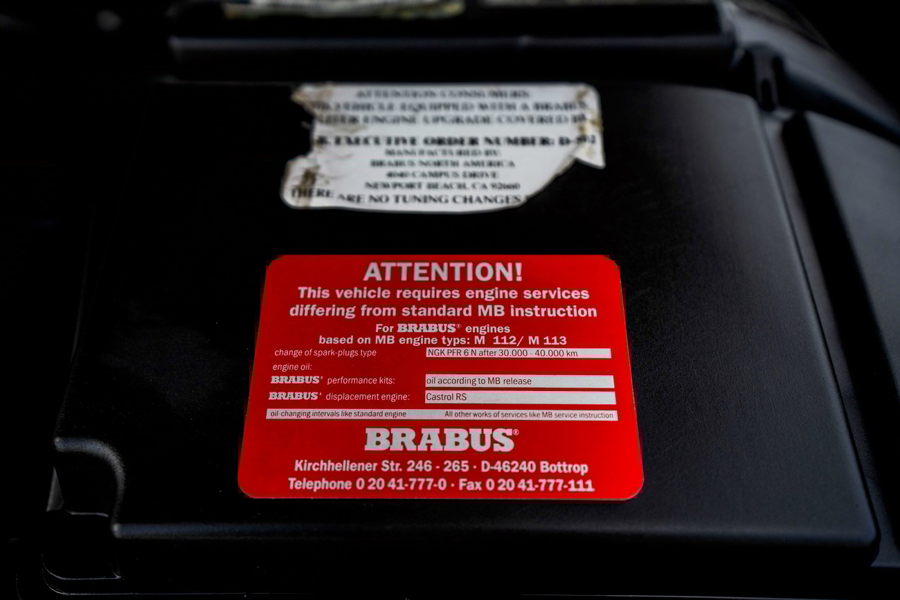 This ML is powered by a 5.8-liter M113 V8 which is reported to produce 400 horsepower and 427 lb-ft of torque. BRABUS reworked the engine with a custom crankshaft, pistons, and connecting rods. Additional engine modifications are said to include ported and polished cylinder heads with revised camshafts and larger valves as well as a full exhaust system and custom tune. Power is sent to all four wheels through a 5-speed automatic transmission which can be shifted manually. A major service less than 500 miles ago in 2019 totalled over $8k and included a flushing of the brake fluid, differential, transfer case, transmission fluid, and an oil change along with new front brake pads and rotors, lower ball joints, serpentine belt, valve cover gaskets, and engine air filter. In preparation for the sale, the seller performed a fresh oil service, installed new shifter bushings, and performed an AC service.