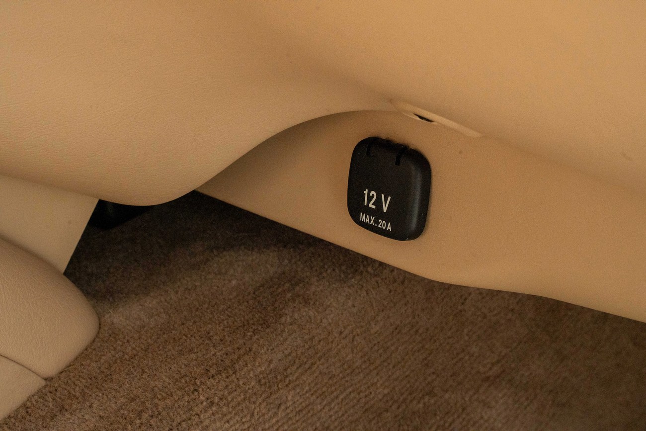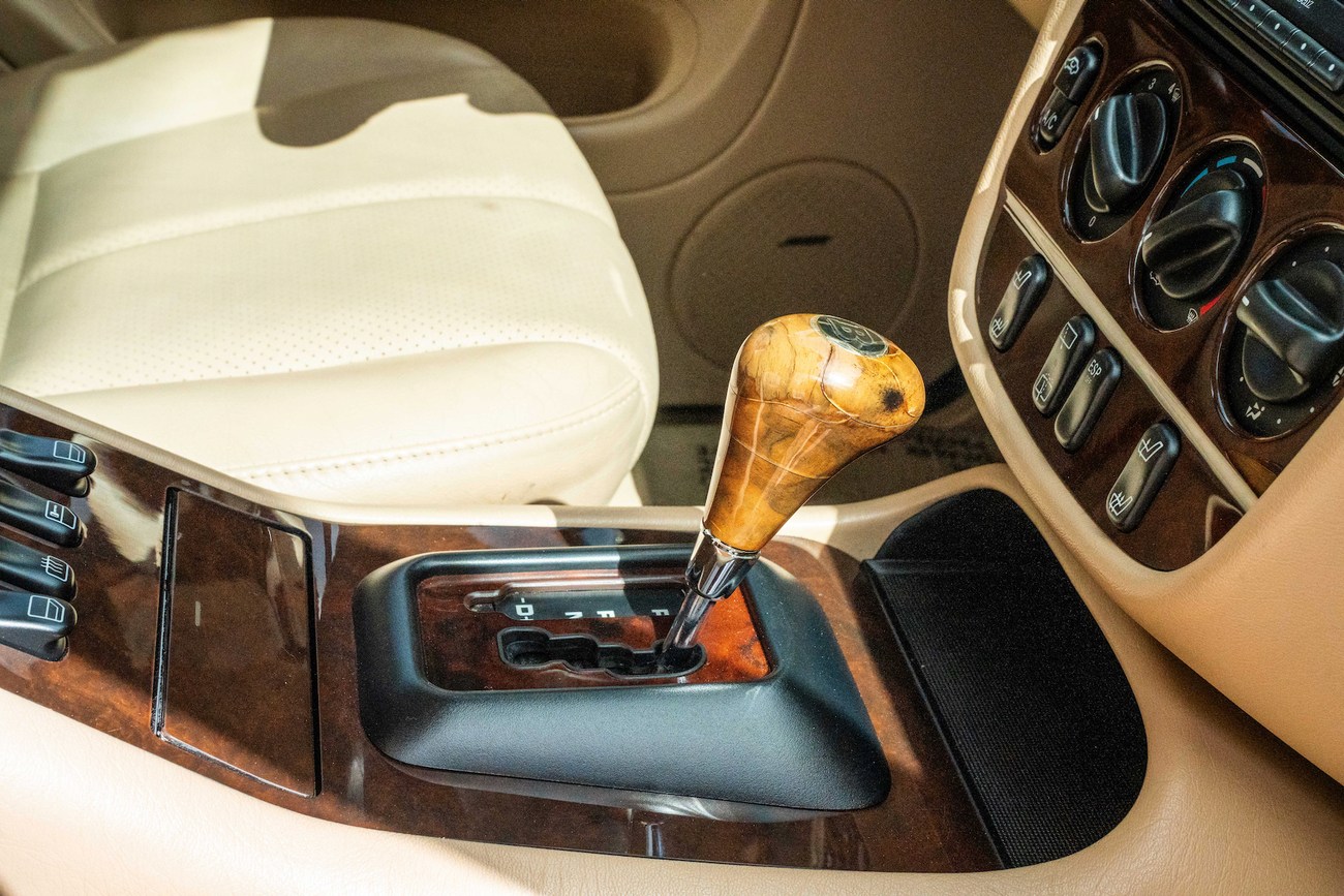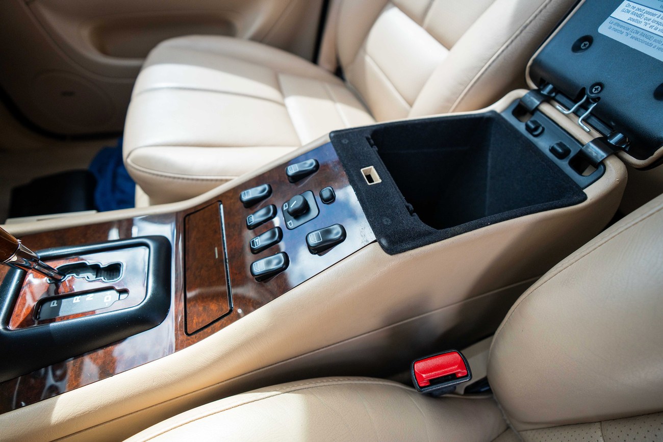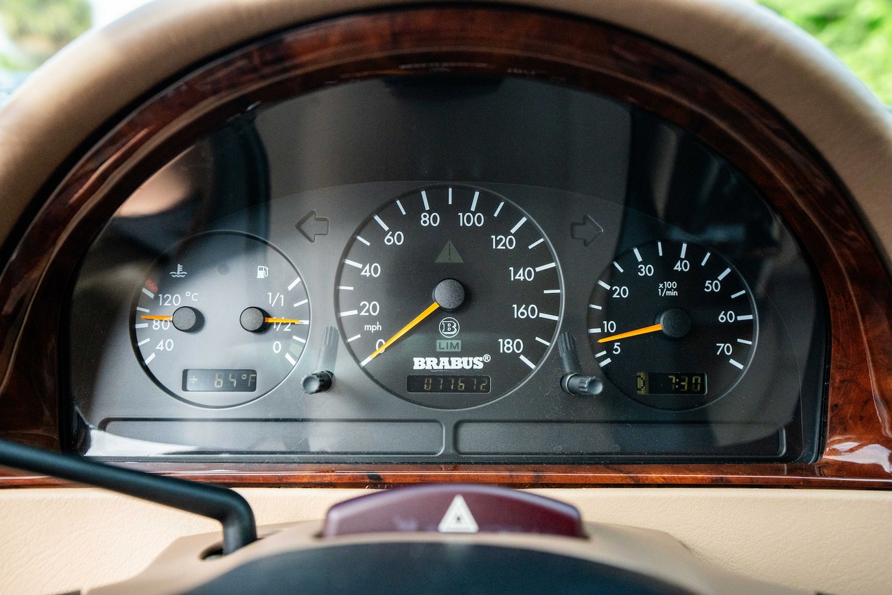 The leather and wood steering wheel frames a 180-mph speedometer, a 7k-rpm tachometer and gauges for fuel level and coolant temperature. Digital instrumentation consists of an outside temperature sensor, a digital clock, a trip meter and a digital odometer which currently shows just under 78k miles.