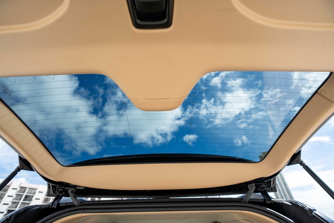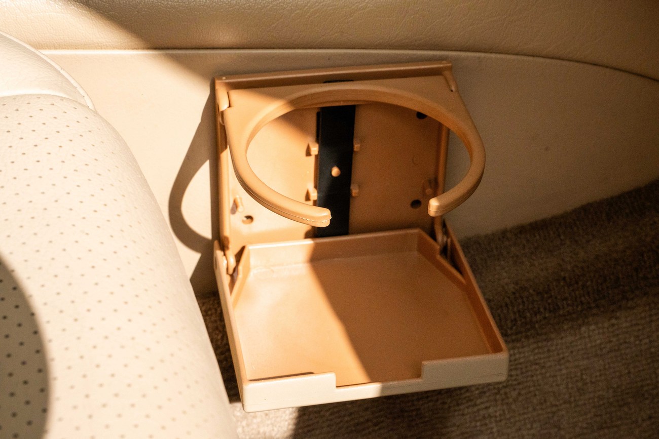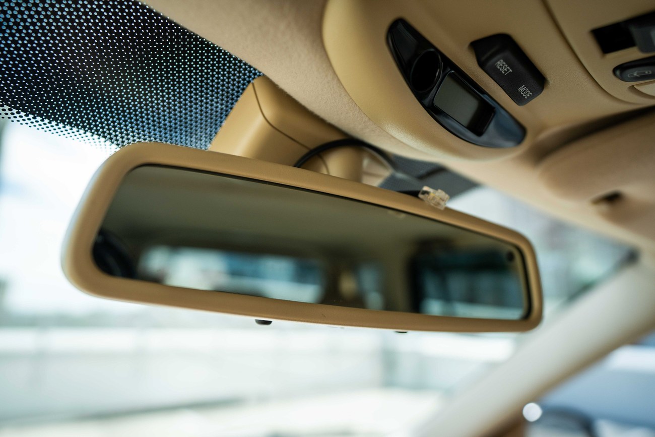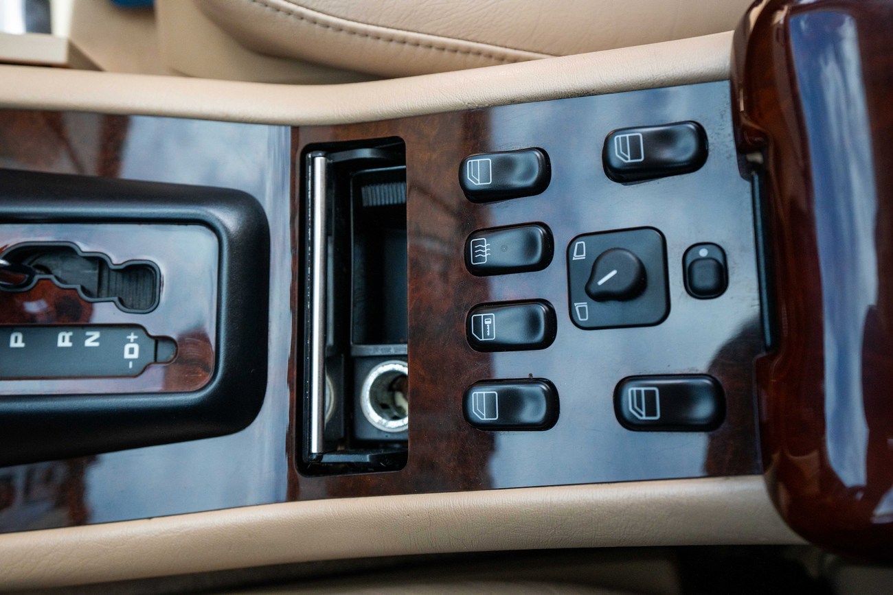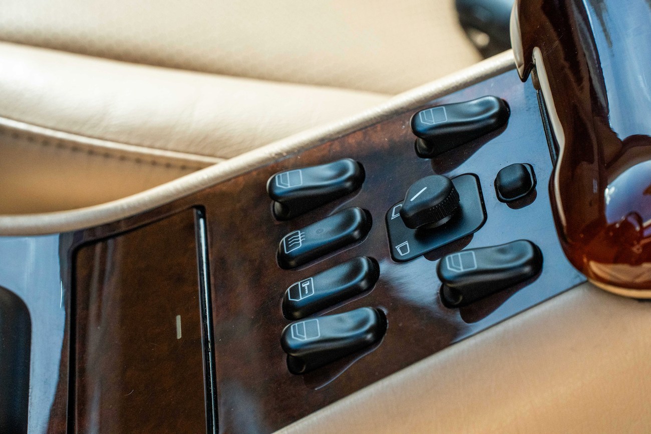 The leather and wood steering wheel frames a 180-mph speedometer, a 7k-rpm tachometer and gauges for fuel level and coolant temperature. Digital instrumentation consists of an outside temperature sensor, a digital clock, a trip meter and a digital odometer which currently shows just under 78k miles.