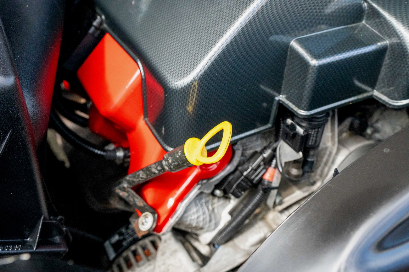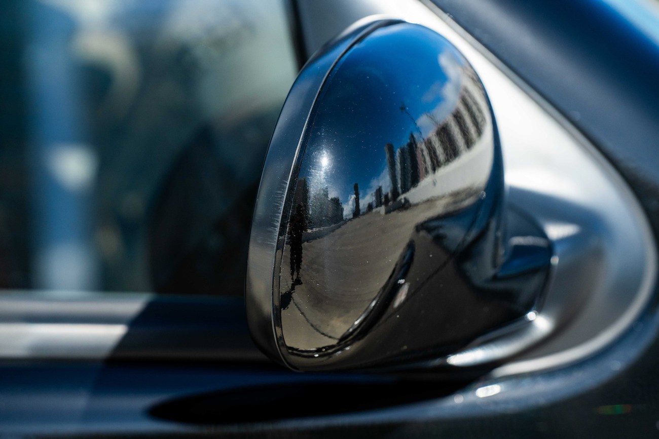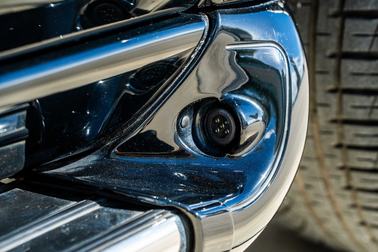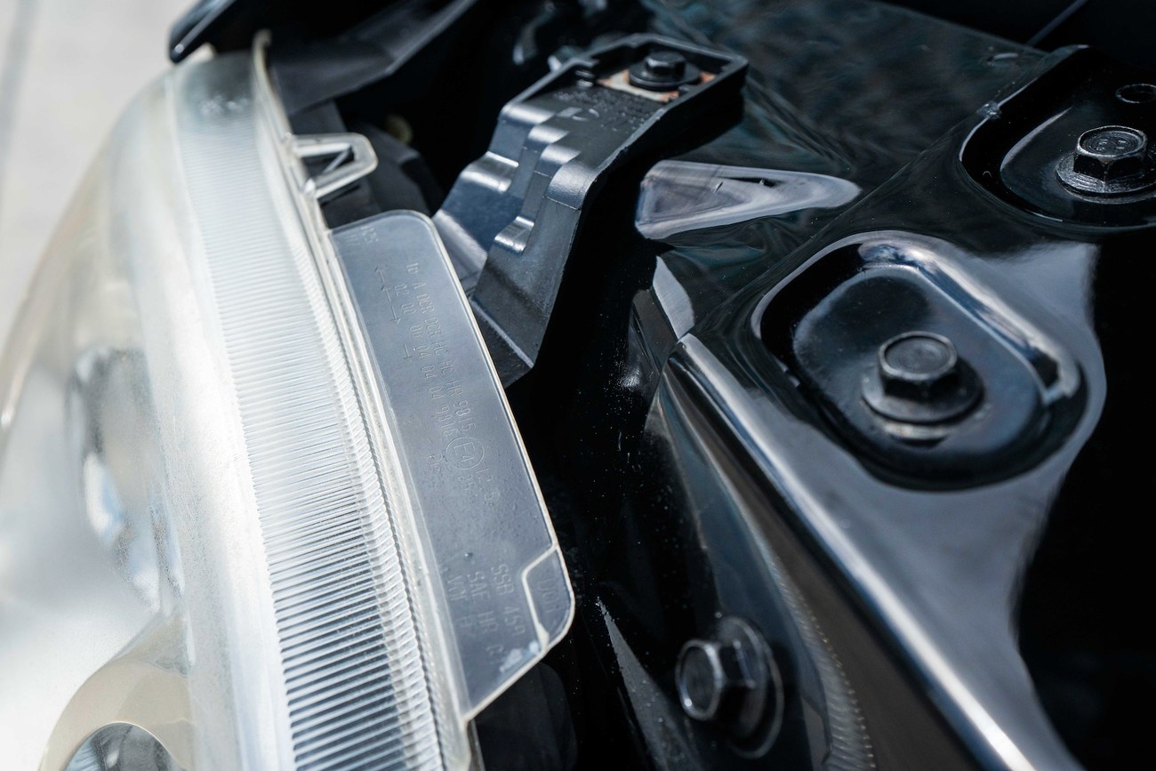 The leather and wood steering wheel frames a 180-mph speedometer, a 7k-rpm tachometer and gauges for fuel level and coolant temperature. Digital instrumentation consists of an outside temperature sensor, a digital clock, a trip meter and a digital odometer which currently shows just under 78k miles.