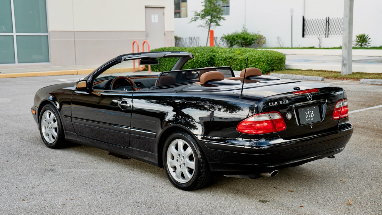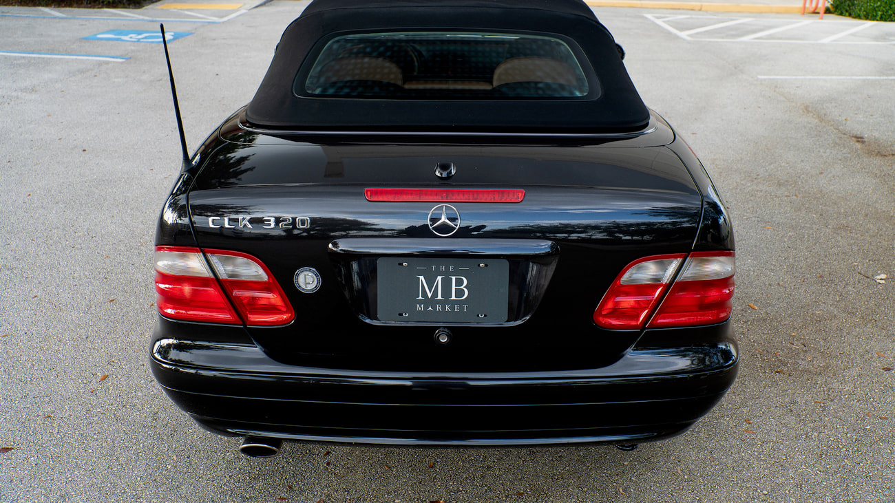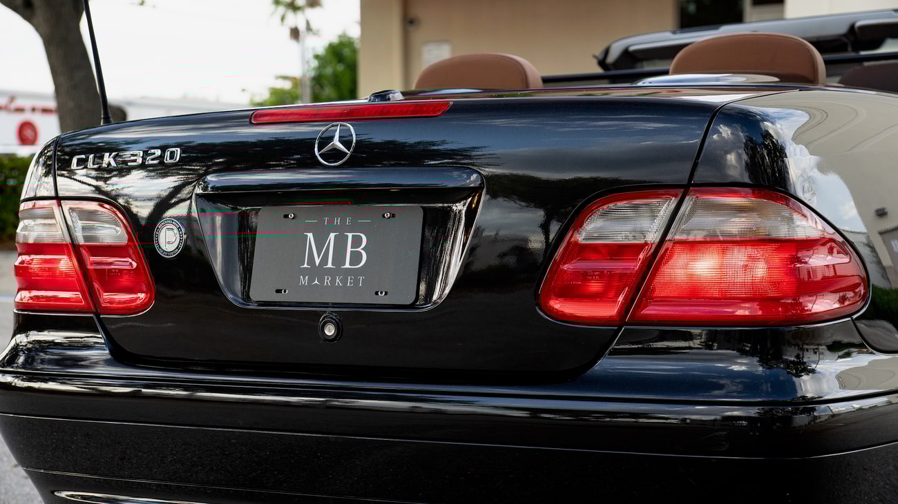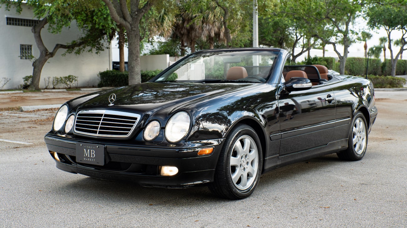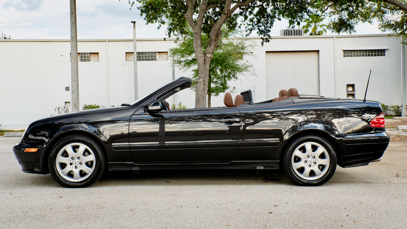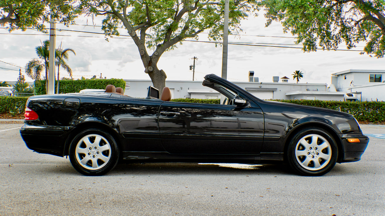 This 2002 Mercedes-Benz CLK320 Cabriolet was sold new in New Jersey in April of 2002 and first registered as a corporate vehicle. It was then sold as a Certified Pre-Owned example in 2005 and relocated to Florida. The optional designo Espresso Edition came exclusively in designo Mocha Black (033) over designo Light Brown Nappa (X35). Power is provided by a 3.2-liter V6 mated to a five-speed automatic transmission. Equipment includes a Black power-folding soft top, power and heated front seats, xenon headlights, automatic climate control, and Bose audio. An oil service was performed in preparation for the sale. The odometer currently shows just over 60k original miles and this CLK320 Cabriolet is now offered by the seller with the owner's manual, an OEM draft deflector, 1 key fob, 1 valet key, a clean Carfax report, and a clean Florida title.