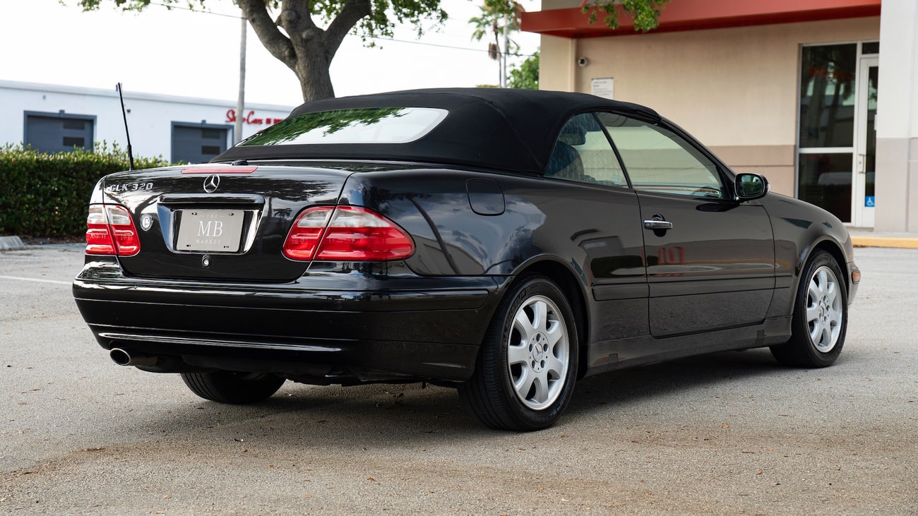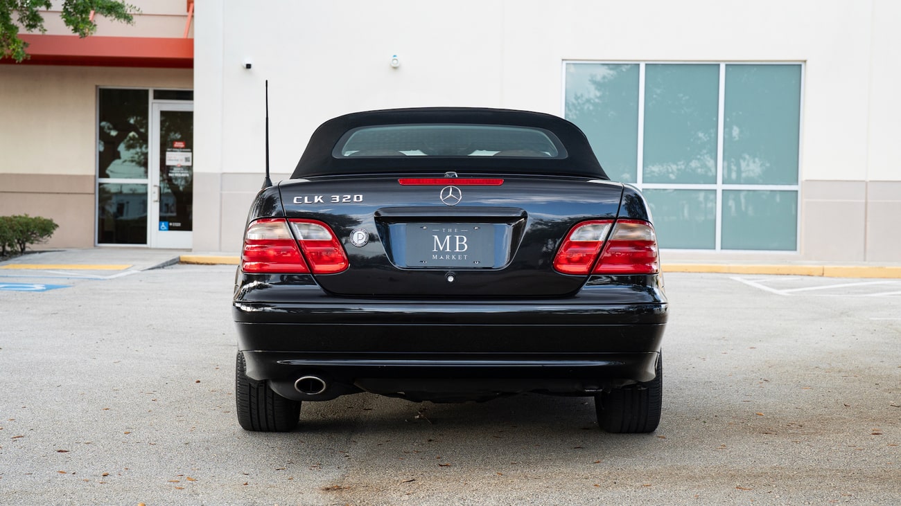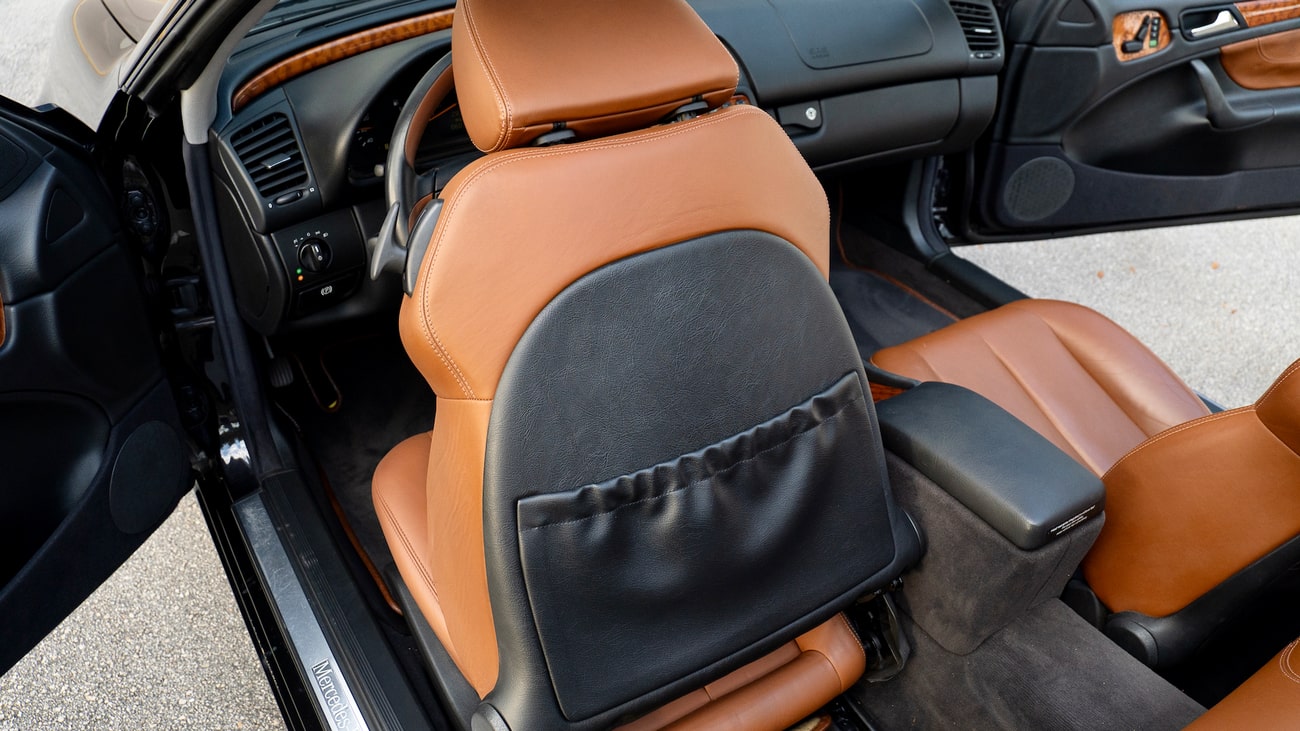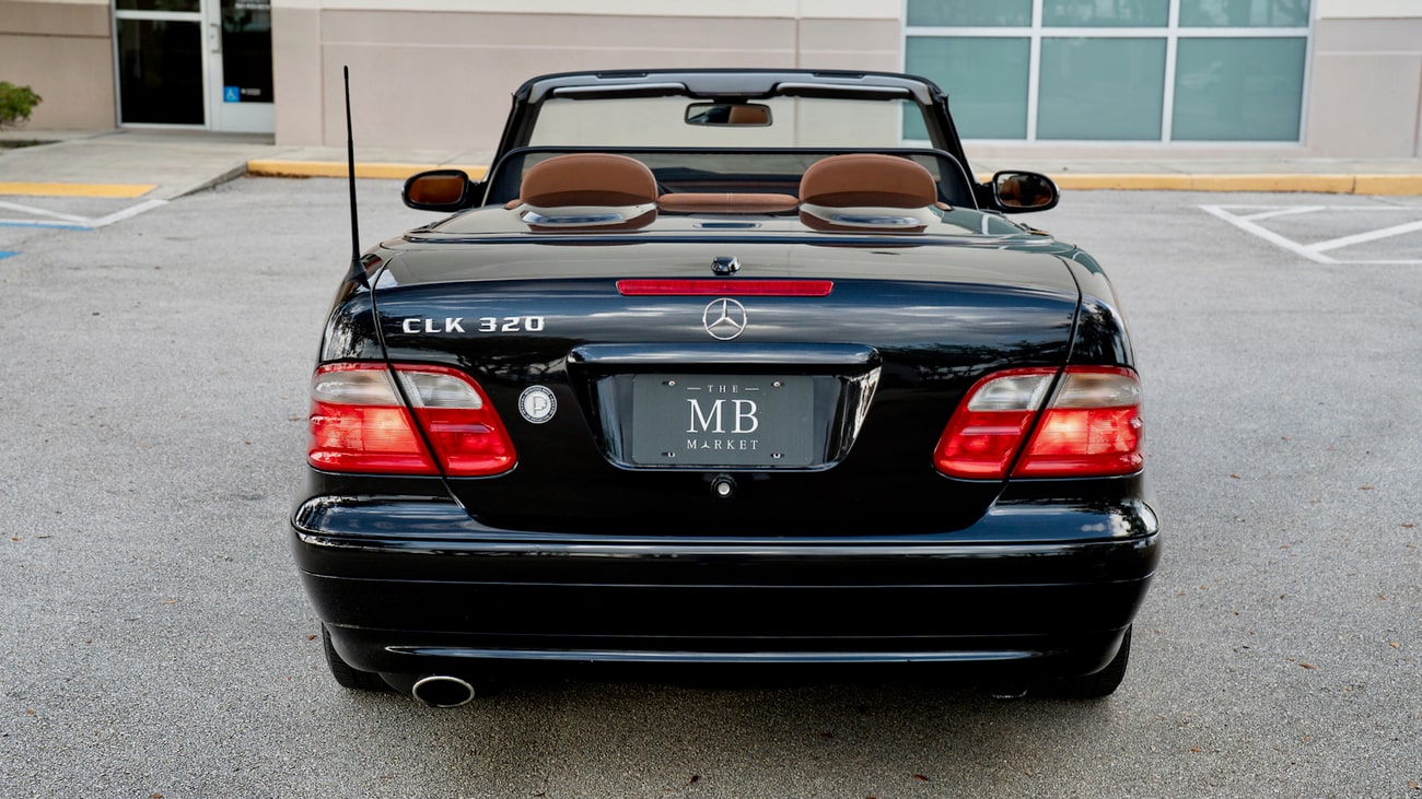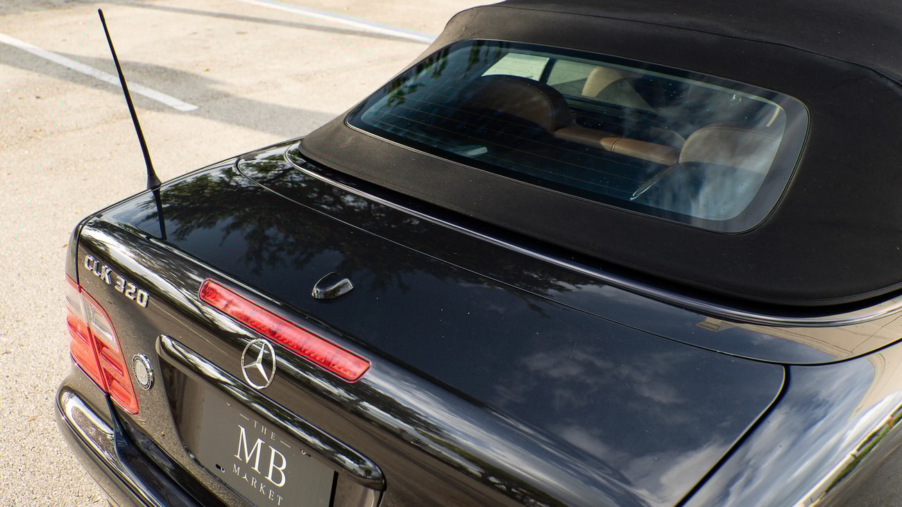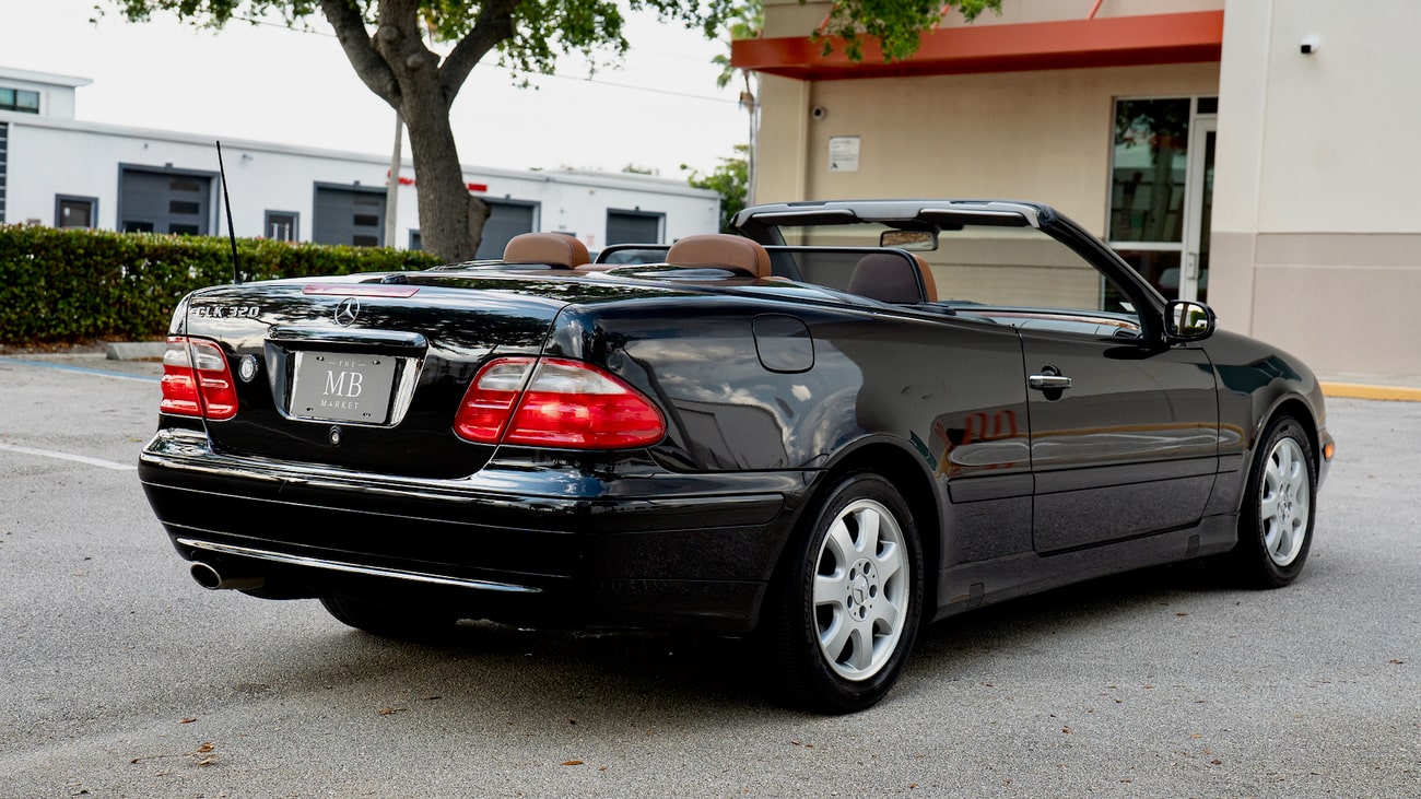 This 2002 Mercedes-Benz CLK320 Cabriolet was sold new in New Jersey in April of 2002 and first registered as a corporate vehicle. It was then sold as a Certified Pre-Owned example in 2005 and relocated to Florida. The optional designo Espresso Edition came exclusively in designo Mocha Black (033) over designo Light Brown Nappa (X35). Power is provided by a 3.2-liter V6 mated to a five-speed automatic transmission. Equipment includes a Black power-folding soft top, power and heated front seats, xenon headlights, automatic climate control, and Bose audio. An oil service was performed in preparation for the sale. The odometer currently shows just over 60k original miles and this CLK320 Cabriolet is now offered by the seller with the owner's manual, an OEM draft deflector, 1 key fob, 1 valet key, a clean Carfax report, and a clean Florida title.