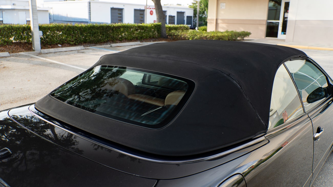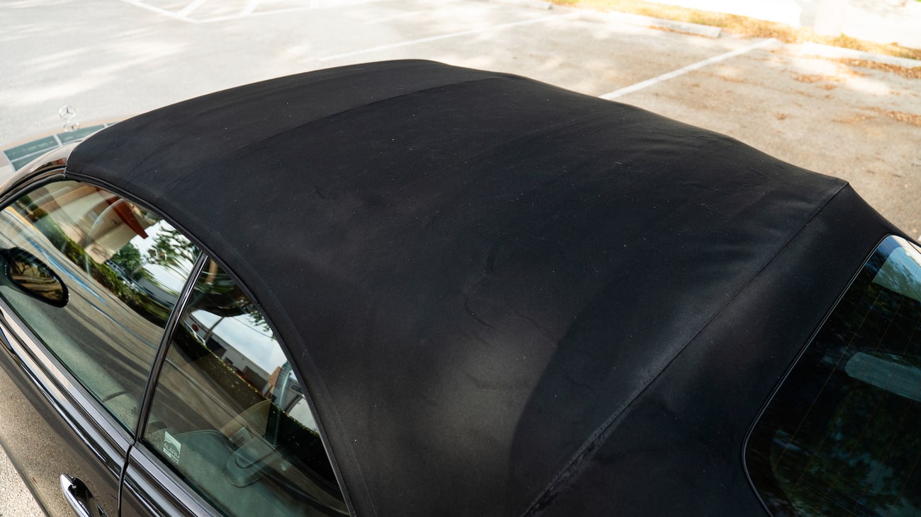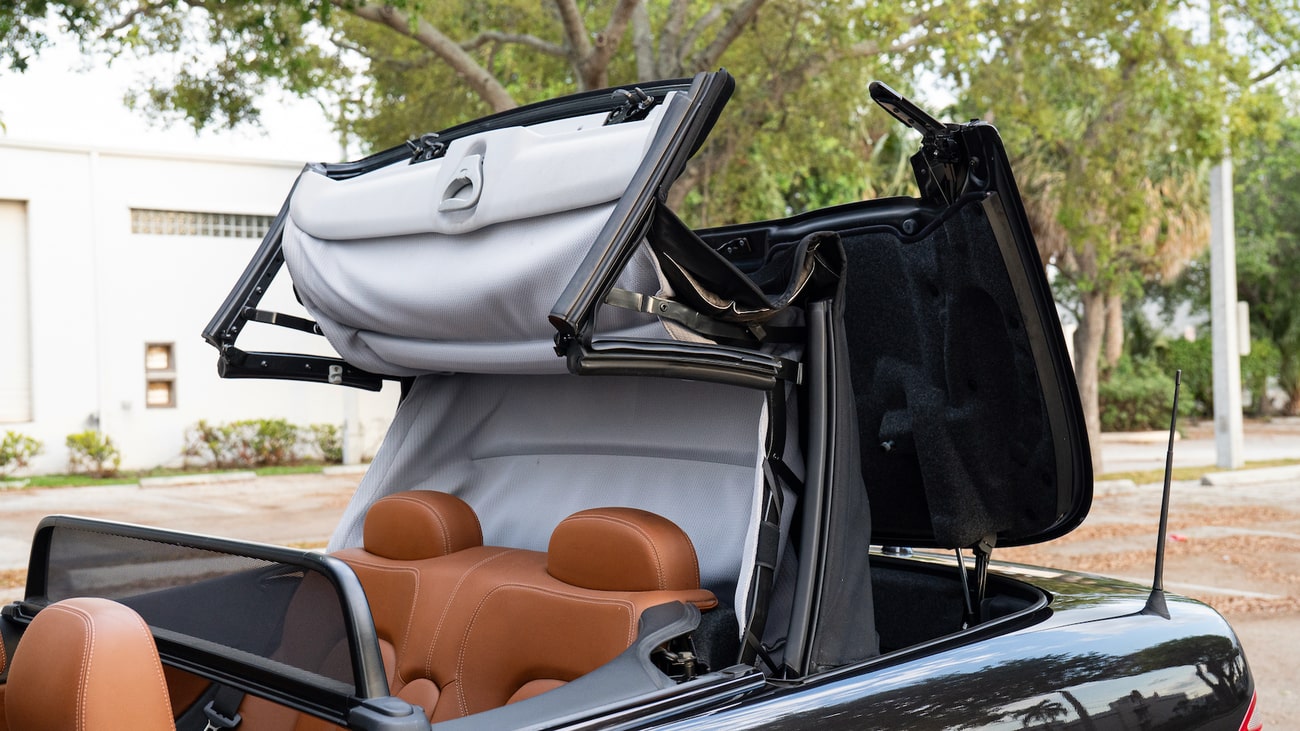 The car is finished in designo Mocha Black (033) which is exclusive to the designo Espresso Edition cars. Features include xenon headlights, lower front fog lamps, electrically adjustable side mirrors with integrated turn signals, rain sensing wipers, and a black power-folding soft top. The front driver amber turn signal mounted on the bumper was cracked as seen in the photos and the seller states the lenses on each side were replaced with new units just after the photos were taken. The soft top features a glass rear window and is reported function properly.