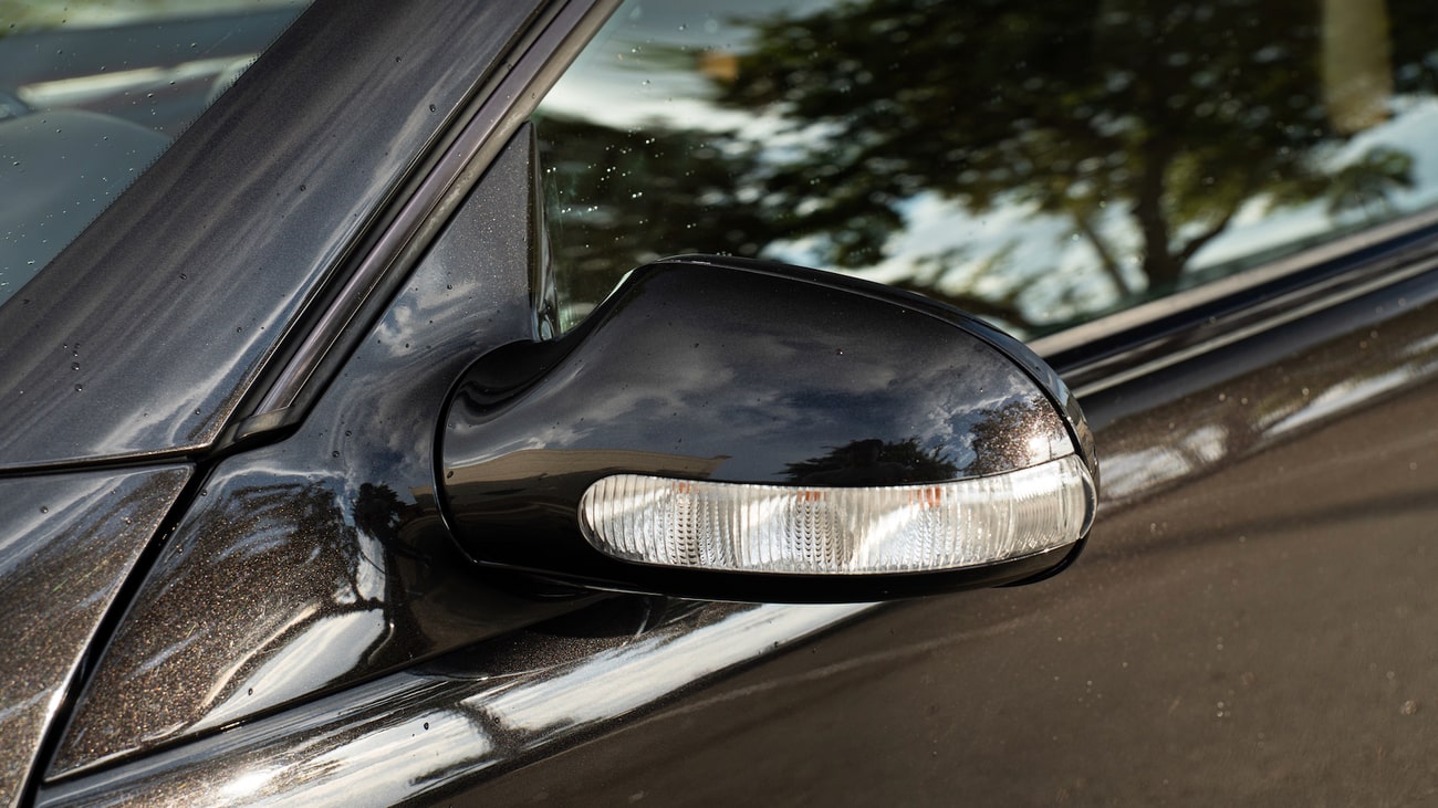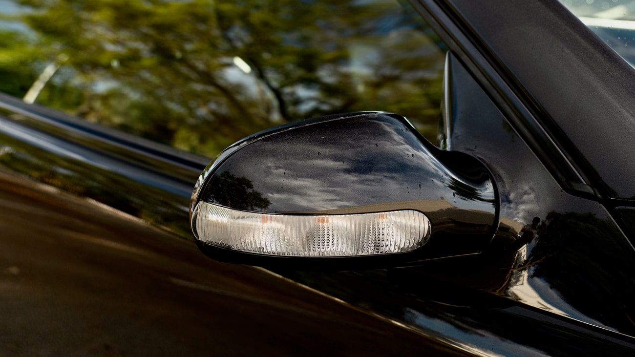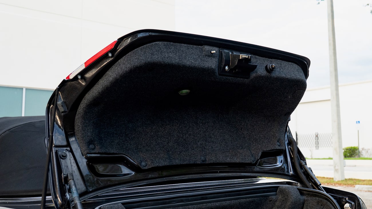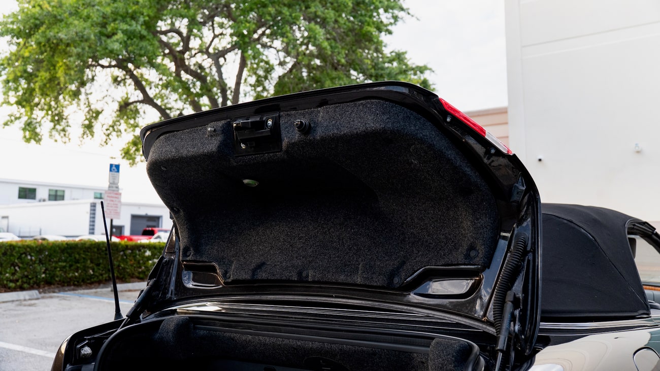 The car is finished in designo Mocha Black (033) which is exclusive to the designo Espresso Edition cars. Features include xenon headlights, lower front fog lamps, electrically adjustable side mirrors with integrated turn signals, rain sensing wipers, and a black power-folding soft top. The front driver amber turn signal mounted on the bumper was cracked as seen in the photos and the seller states the lenses on each side were replaced with new units just after the photos were taken. The soft top features a glass rear window and is reported function properly.