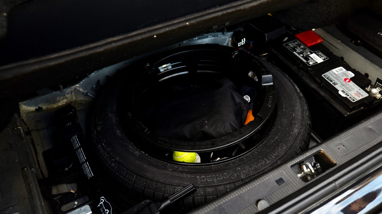 Original 16” wheels are shown in factory finish with painted centers and a machined outer lip. Michelin Premier A/S tires showing 2017 date codes in the rear and 2019 in the front are mounted and measure 205/55 per factory specification. Braking is handled by discs at all four corners. Minor imperfections are noted due to normal wear on the wheels and a spare is located under the trunk floor.