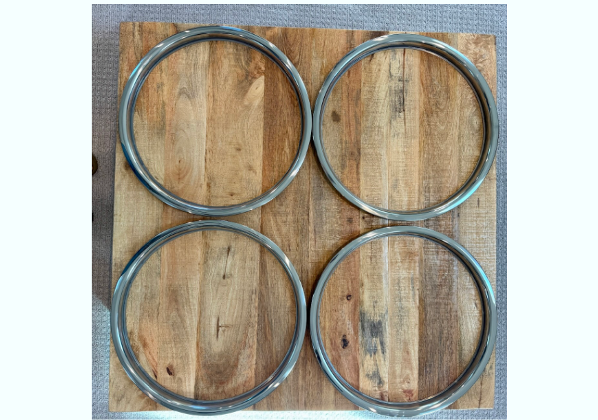 This Set of 4 R129 Silver Arrow Polished 18" Beauty Rings are spares kept by the seller for a previous car. Each ring is polished and fits the 2-piece BBS Wheel designated for Silver Arrow SL’s produced for the 2002 model year. Photos are provided of the fronts and backs of the rings showing all mounting tabs and hardware to be intact. These rings are offered by the seller in Franklin, Tennessee with packaging available and shipping at the buyer’s expense.