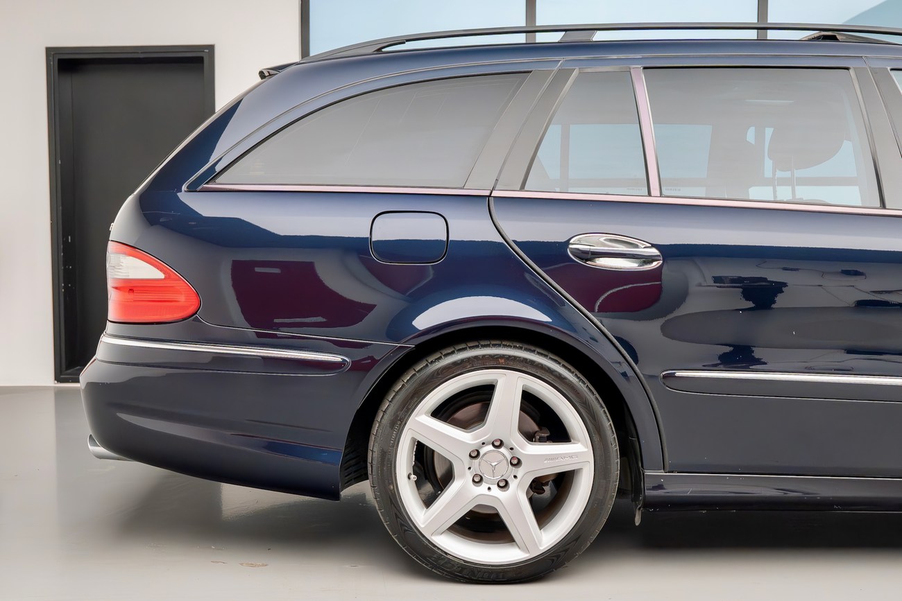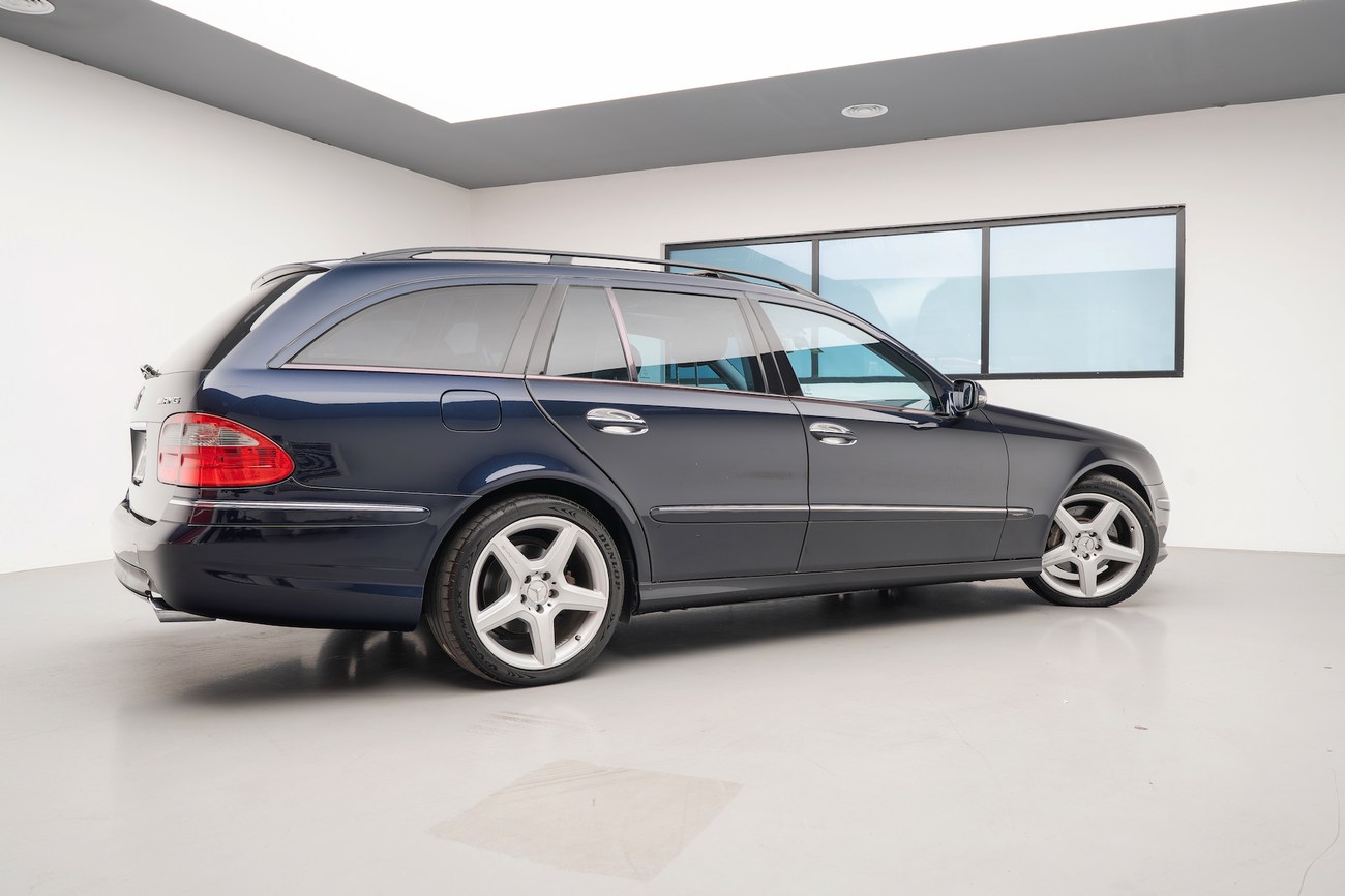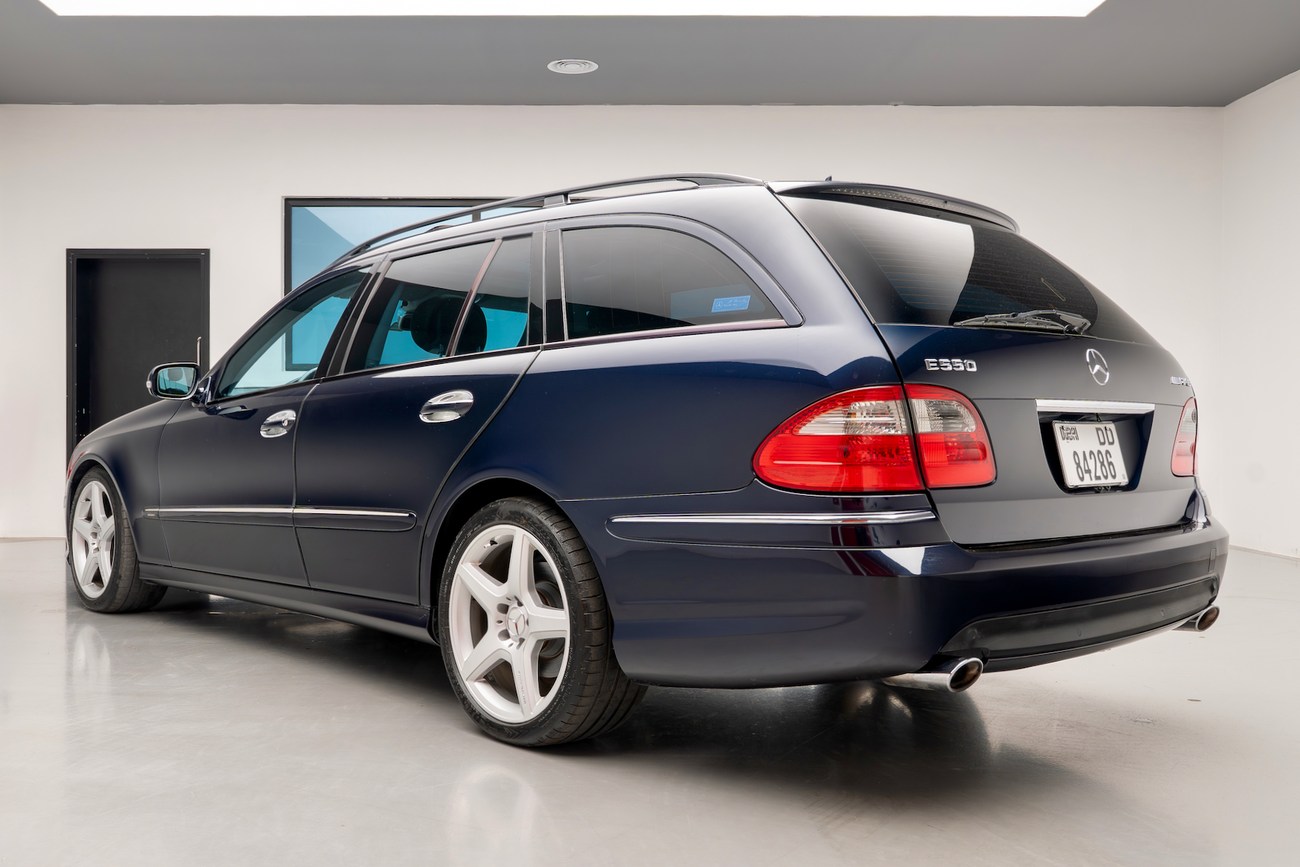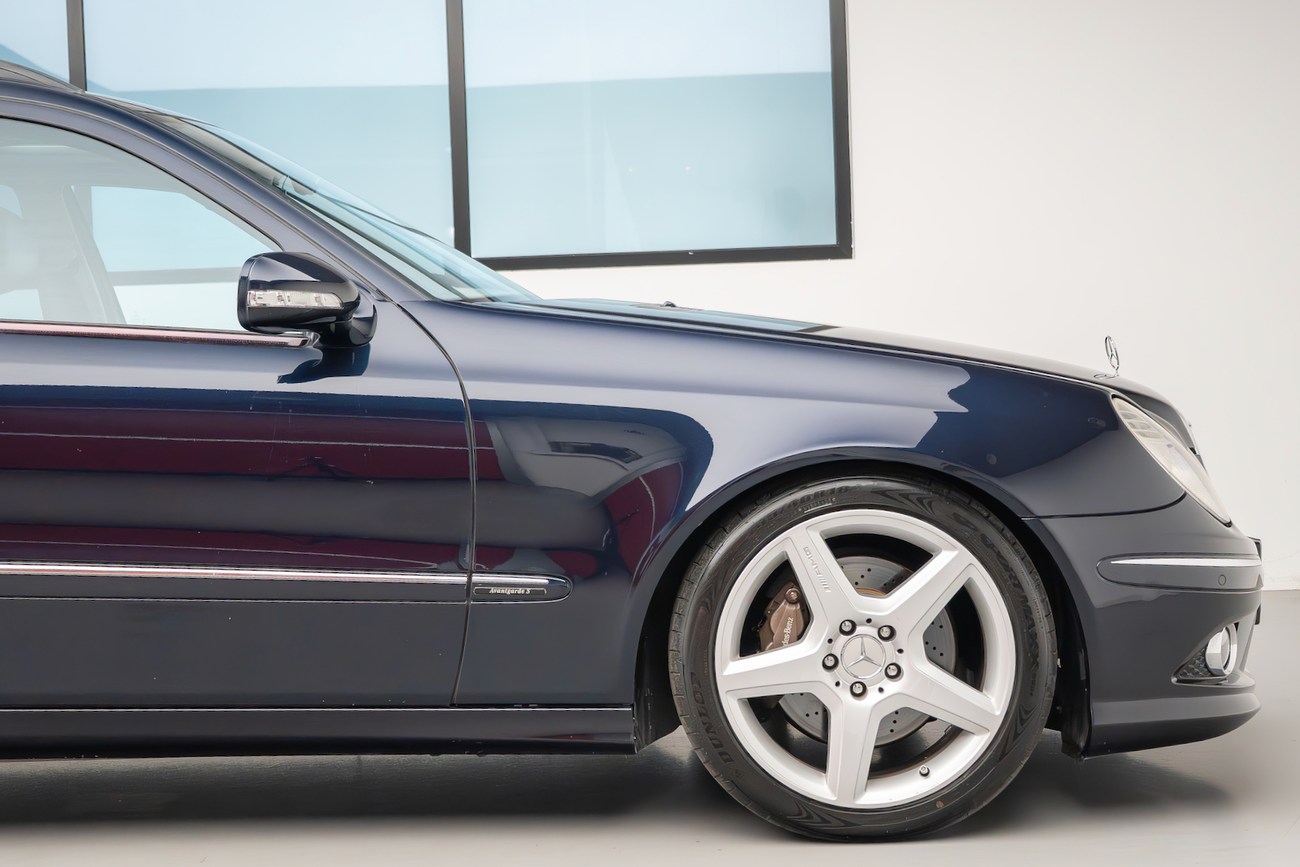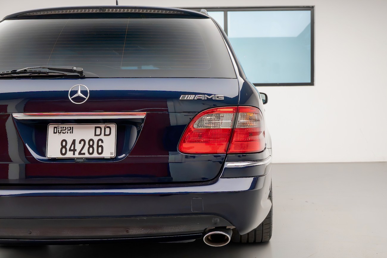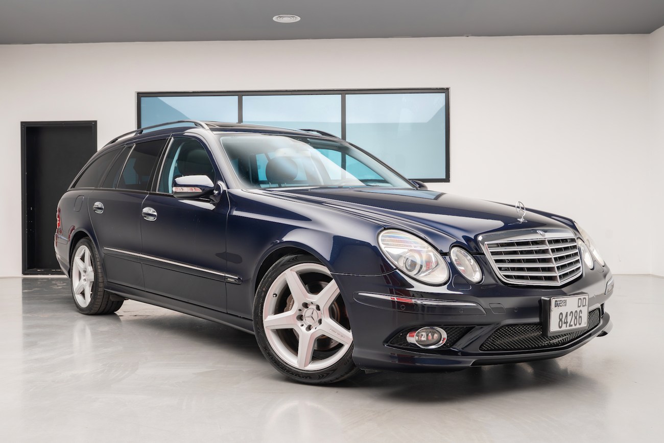 This 2007 Mercedes-Benz E550 Wagon was first sold new in Japan as a left-hand drive example and later exported to the United Arab Emirates where it currently resides with only 122k km (~75k miles). Finished in Tanzanite Blue Metallic (359) over Anthracite Leather (821), power is provided by a 5.5-liter V8 mated with a seven-speed automatic driving the rear wheels. Factory equipment includes heated front seats and mirrors, a glass sunroof, bi-xenon headlamps, dual-zone climate control, Harman Kardon audio, Parktronic, and the AMG Sport Package. Recent service includes new Dunlop tires in June 2025, along with a transmission service and oil change in October 2025 in preparation for the sale. This rare E-Class wagon is offered for sale in Dubai, UAE with one key, the factory tool roll, recent service records, and a clean UAE RTA Certificate/title. The seller can assist buyers with worldwide shipping needs.