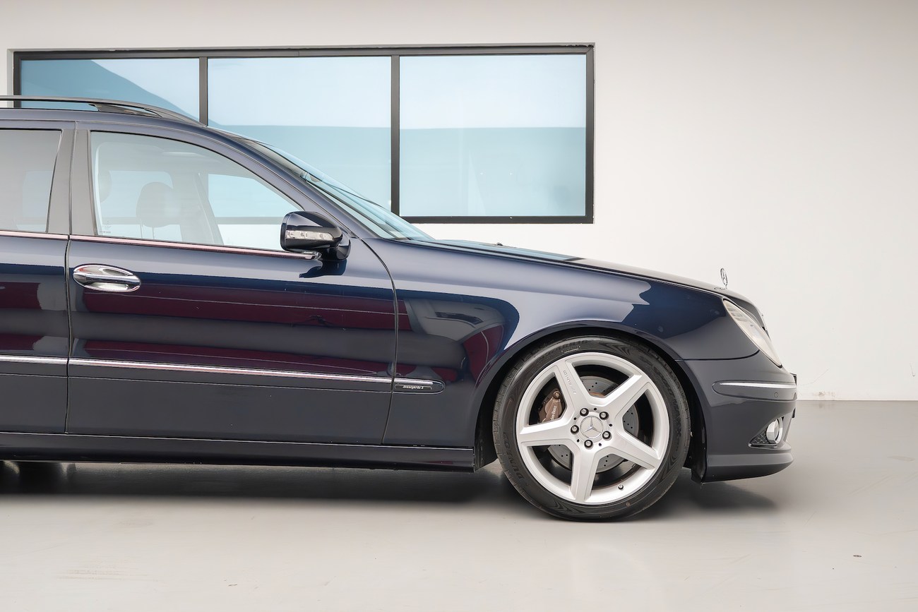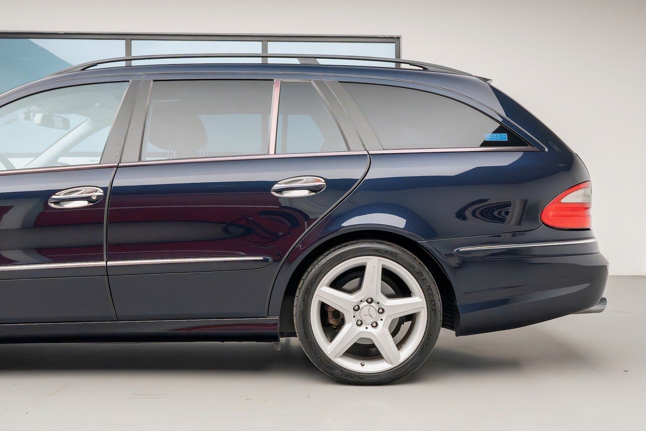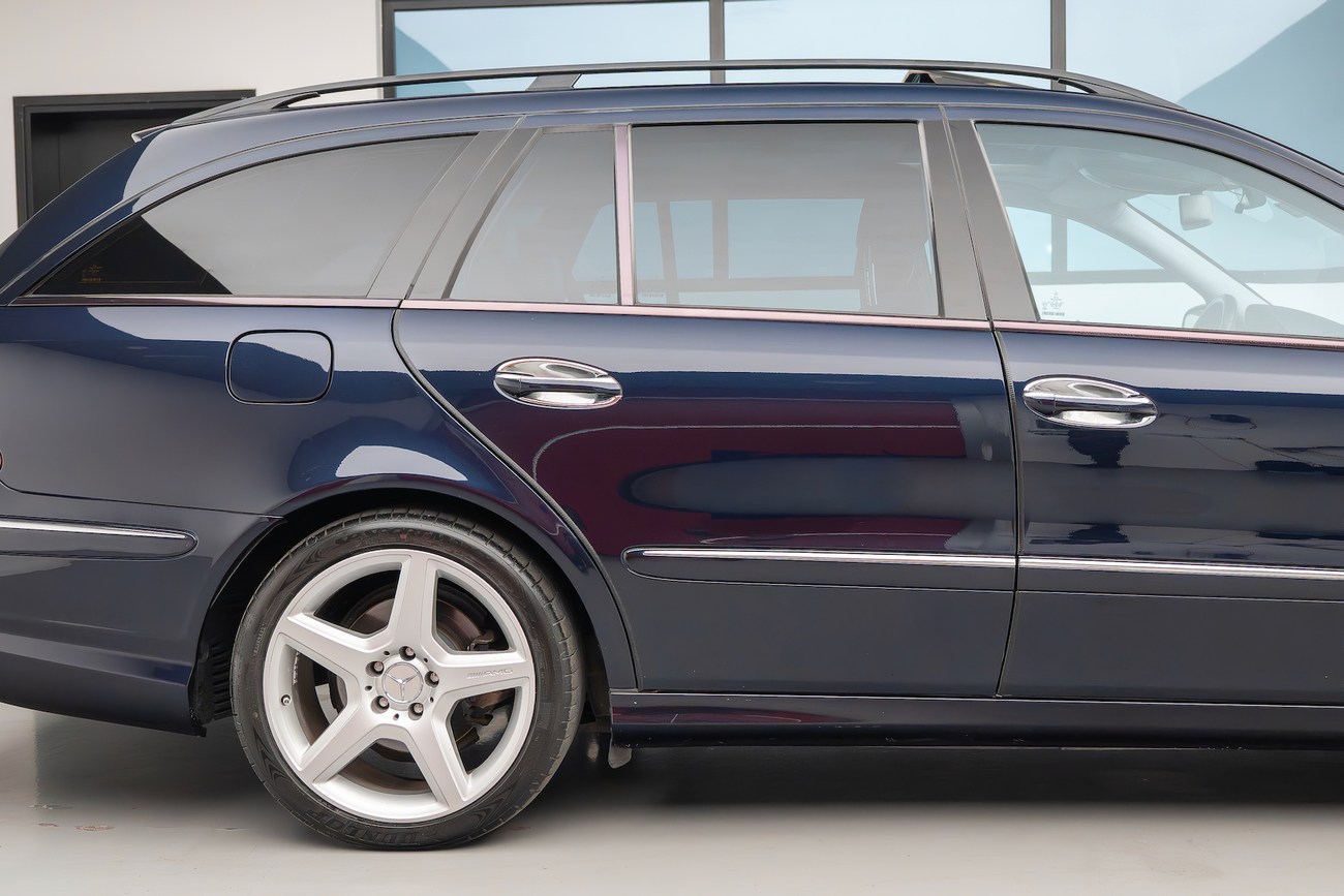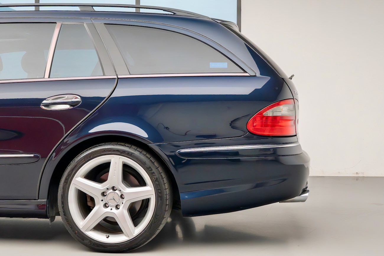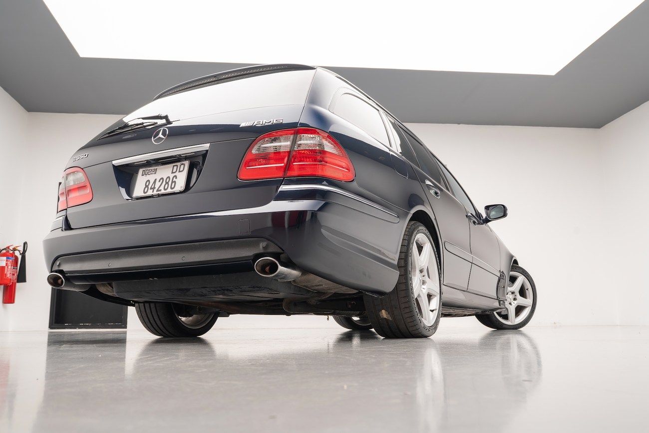 This 2007 Mercedes-Benz E550 Wagon was first sold new in Japan as a left-hand drive example and later exported to the United Arab Emirates where it currently resides with only 122k km (~75k miles). Finished in Tanzanite Blue Metallic (359) over Anthracite Leather (821), power is provided by a 5.5-liter V8 mated with a seven-speed automatic driving the rear wheels. Factory equipment includes heated front seats and mirrors, a glass sunroof, bi-xenon headlamps, dual-zone climate control, Harman Kardon audio, Parktronic, and the AMG Sport Package. Recent service includes new Dunlop tires in June 2025, along with a transmission service and oil change in October 2025 in preparation for the sale. This rare E-Class wagon is offered for sale in Dubai, UAE with one key, the factory tool roll, recent service records, and a clean UAE RTA Certificate/title. The seller can assist buyers with worldwide shipping needs.