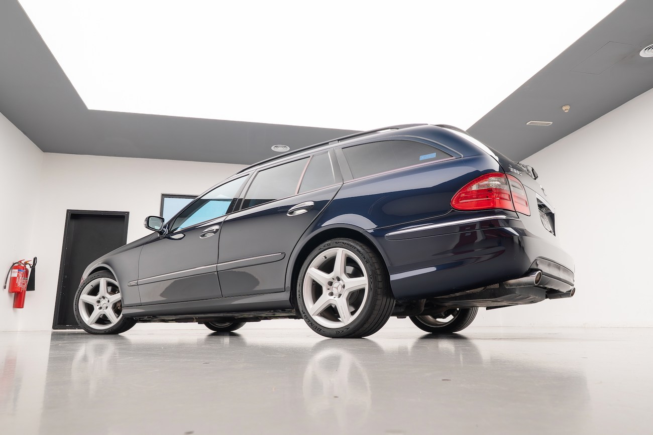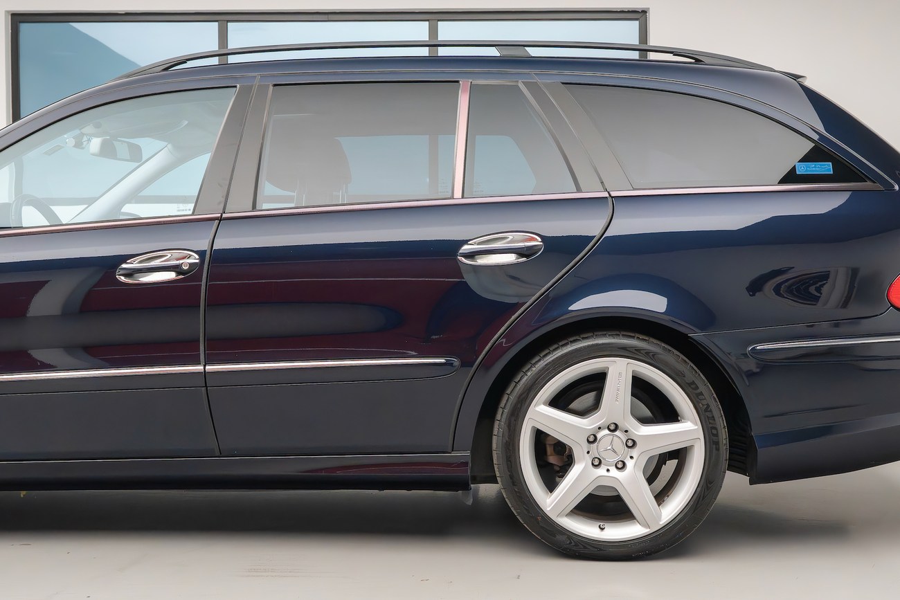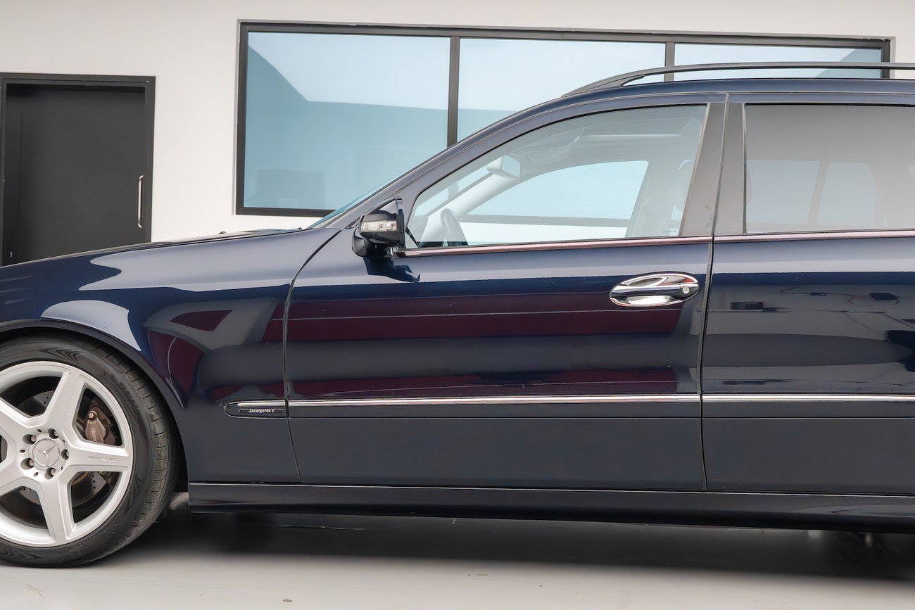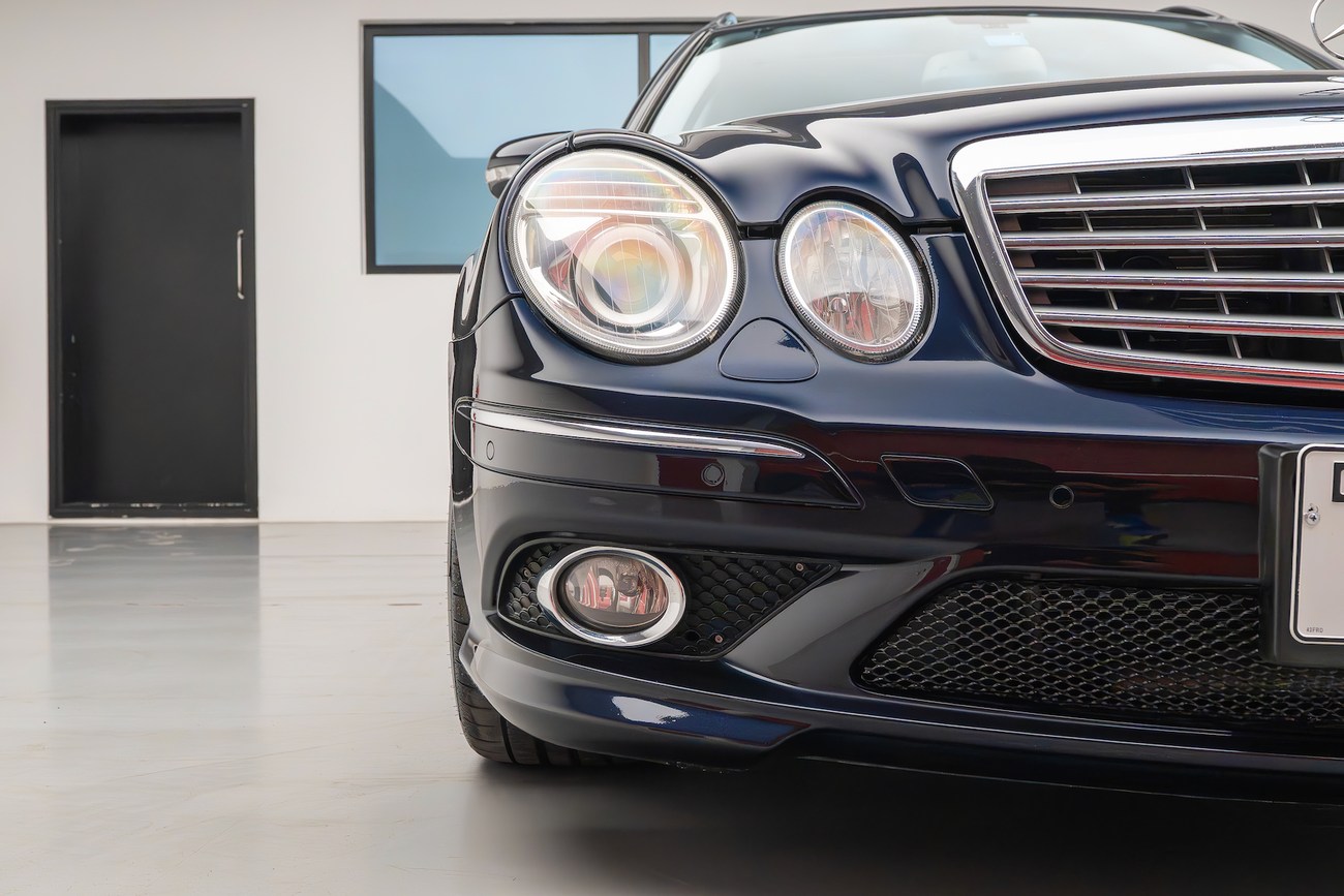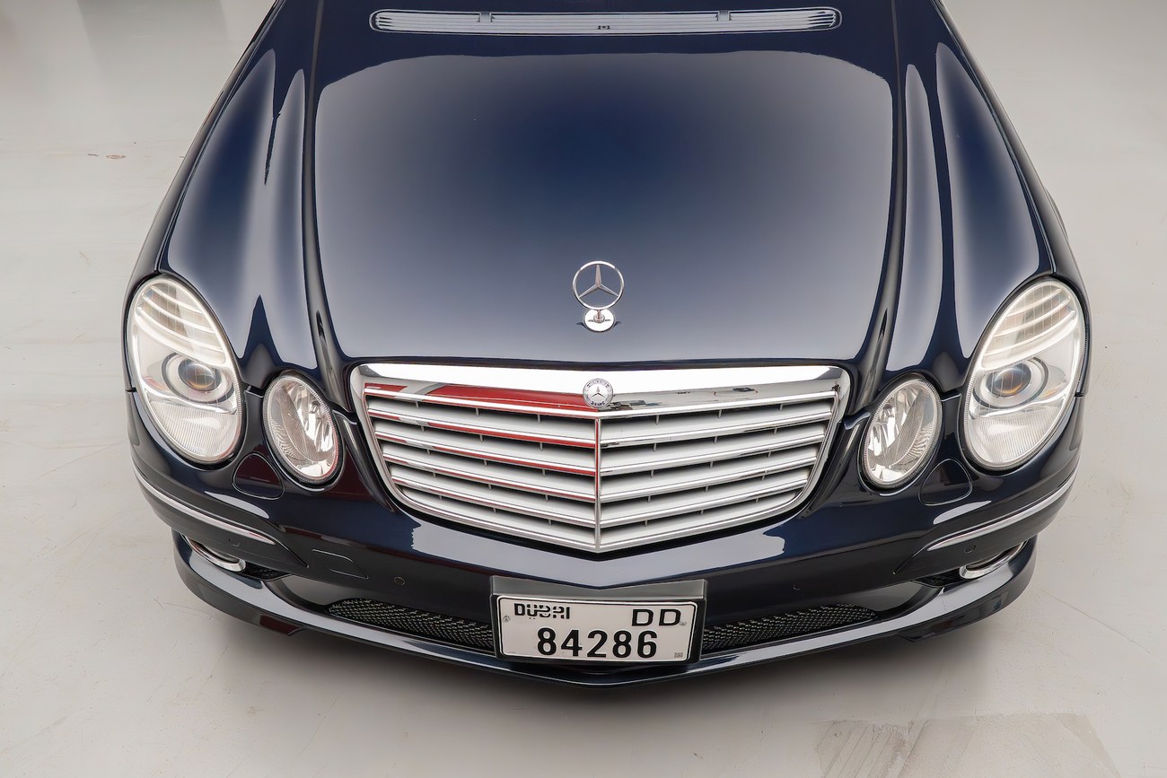 This 2007 Mercedes-Benz E550 Wagon was first sold new in Japan as a left-hand drive example and later exported to the United Arab Emirates where it currently resides with only 122k km (~75k miles). Finished in Tanzanite Blue Metallic (359) over Anthracite Leather (821), power is provided by a 5.5-liter V8 mated with a seven-speed automatic driving the rear wheels. Factory equipment includes heated front seats and mirrors, a glass sunroof, bi-xenon headlamps, dual-zone climate control, Harman Kardon audio, Parktronic, and the AMG Sport Package. Recent service includes new Dunlop tires in June 2025, along with a transmission service and oil change in October 2025 in preparation for the sale. This rare E-Class wagon is offered for sale in Dubai, UAE with one key, the factory tool roll, recent service records, and a clean UAE RTA Certificate/title. The seller can assist buyers with worldwide shipping needs.