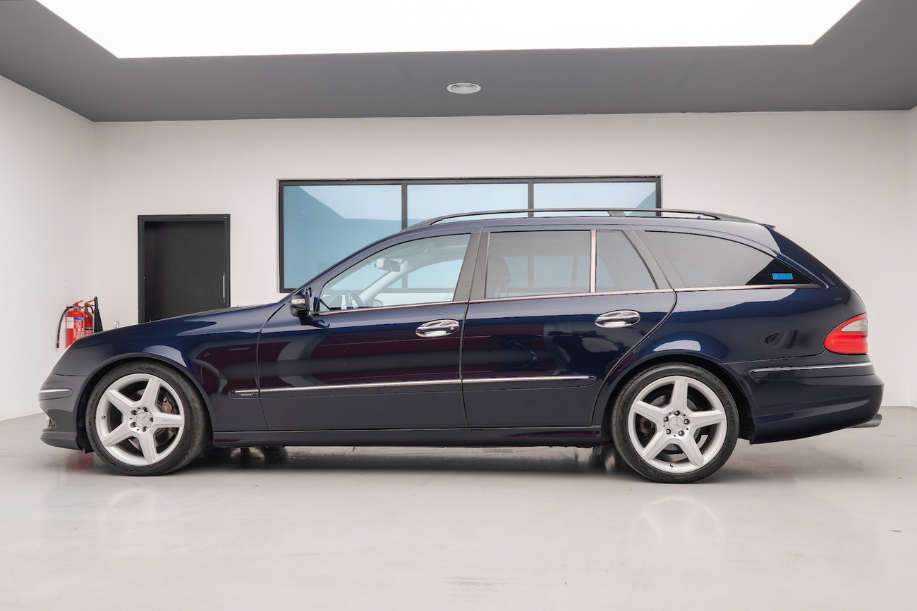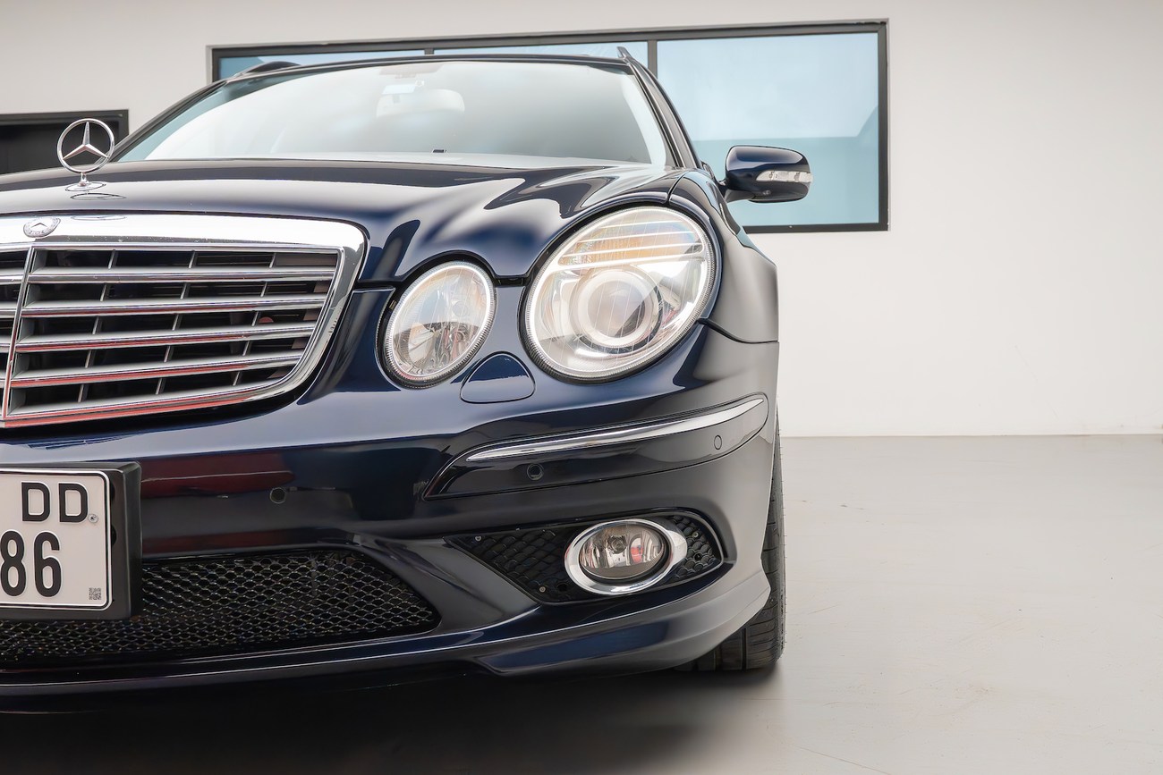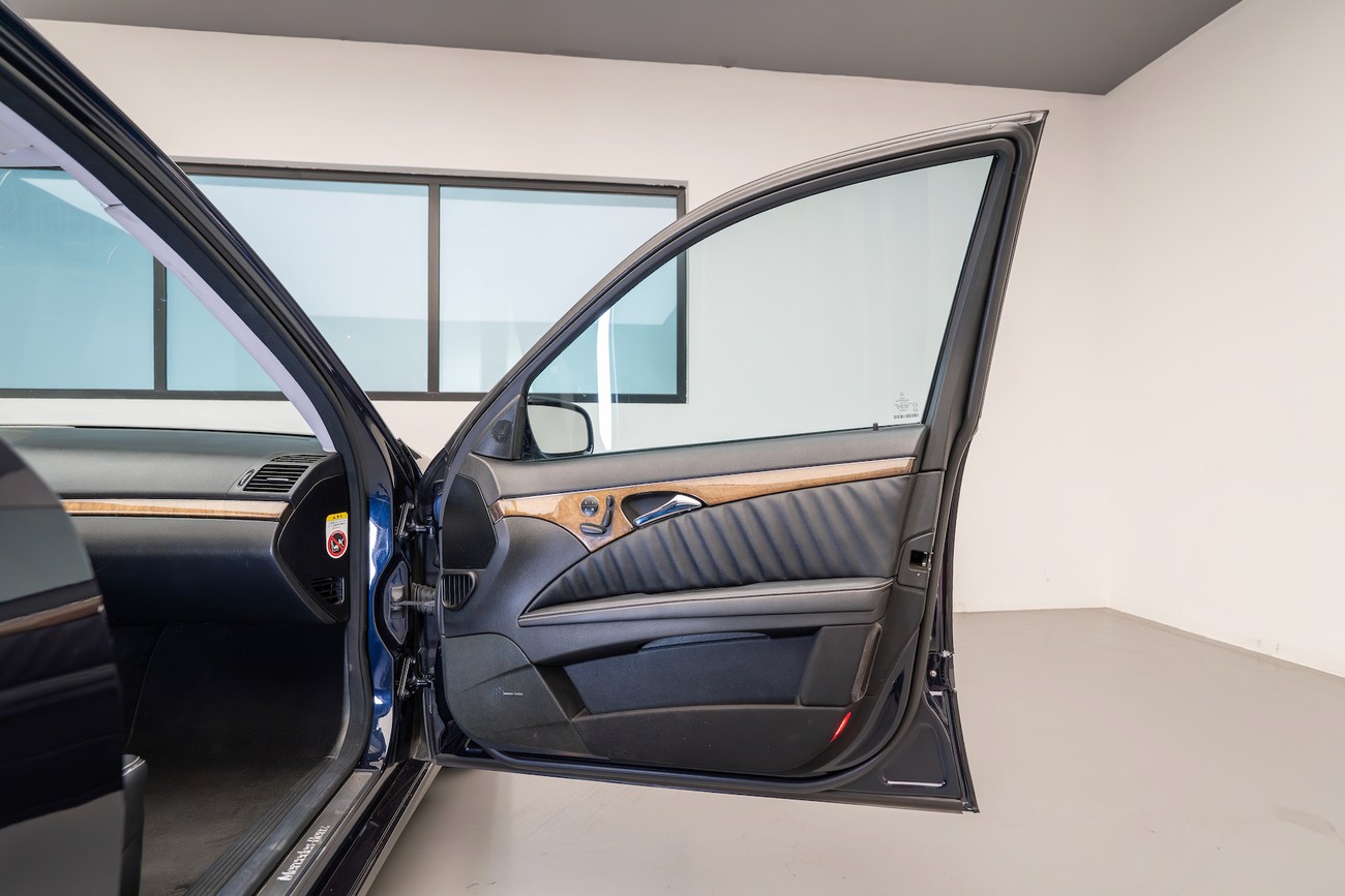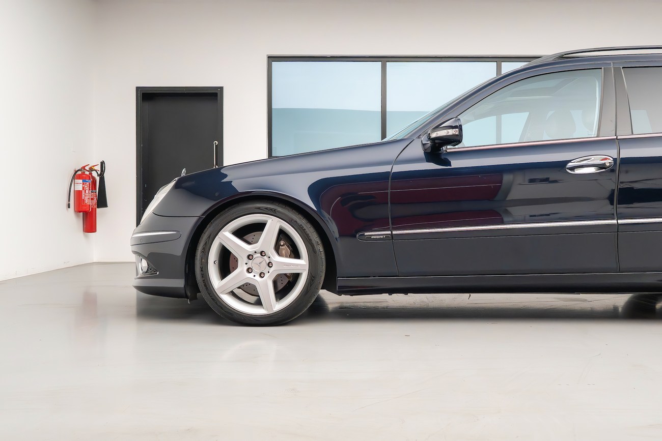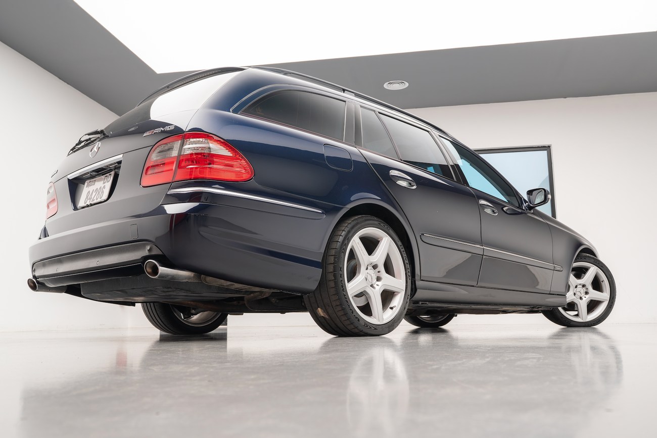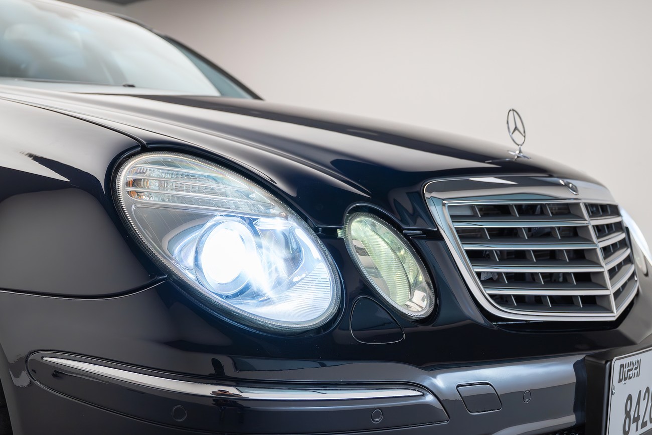 This 2007 Mercedes-Benz E550 Wagon was first sold new in Japan as a left-hand drive example and later exported to the United Arab Emirates where it currently resides with only 122k km (~75k miles). Finished in Tanzanite Blue Metallic (359) over Anthracite Leather (821), power is provided by a 5.5-liter V8 mated with a seven-speed automatic driving the rear wheels. Factory equipment includes heated front seats and mirrors, a glass sunroof, bi-xenon headlamps, dual-zone climate control, Harman Kardon audio, Parktronic, and the AMG Sport Package. Recent service includes new Dunlop tires in June 2025, along with a transmission service and oil change in October 2025 in preparation for the sale. This rare E-Class wagon is offered for sale in Dubai, UAE with one key, the factory tool roll, recent service records, and a clean UAE RTA Certificate/title. The seller can assist buyers with worldwide shipping needs.