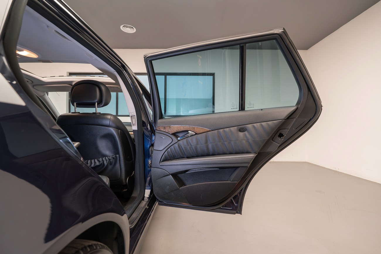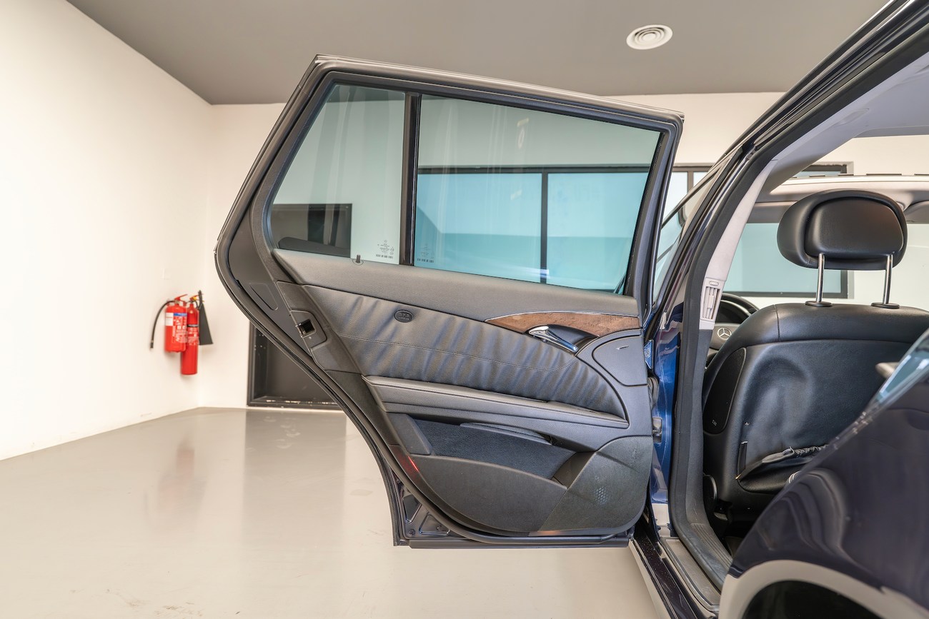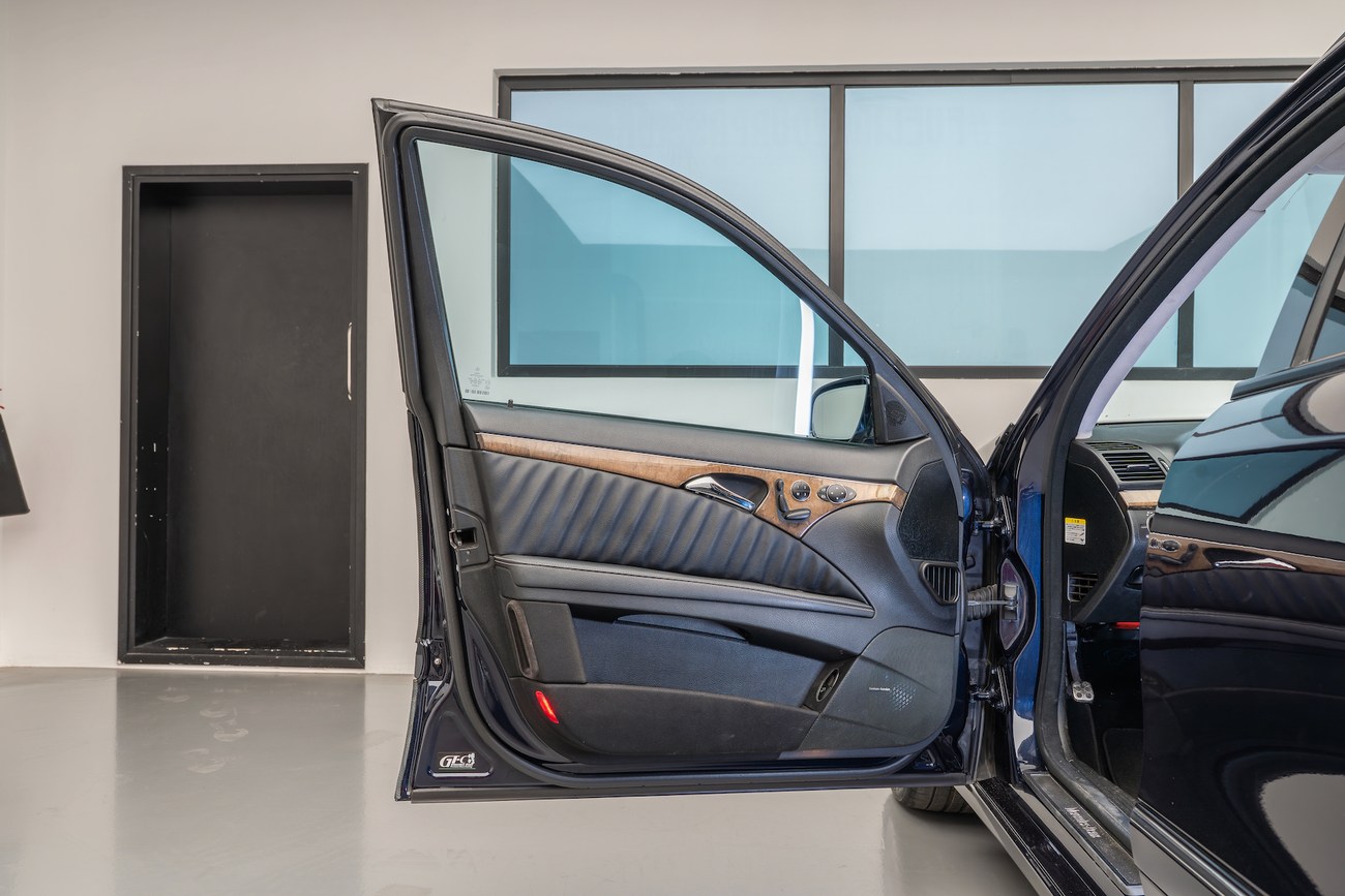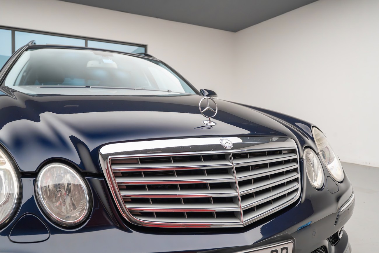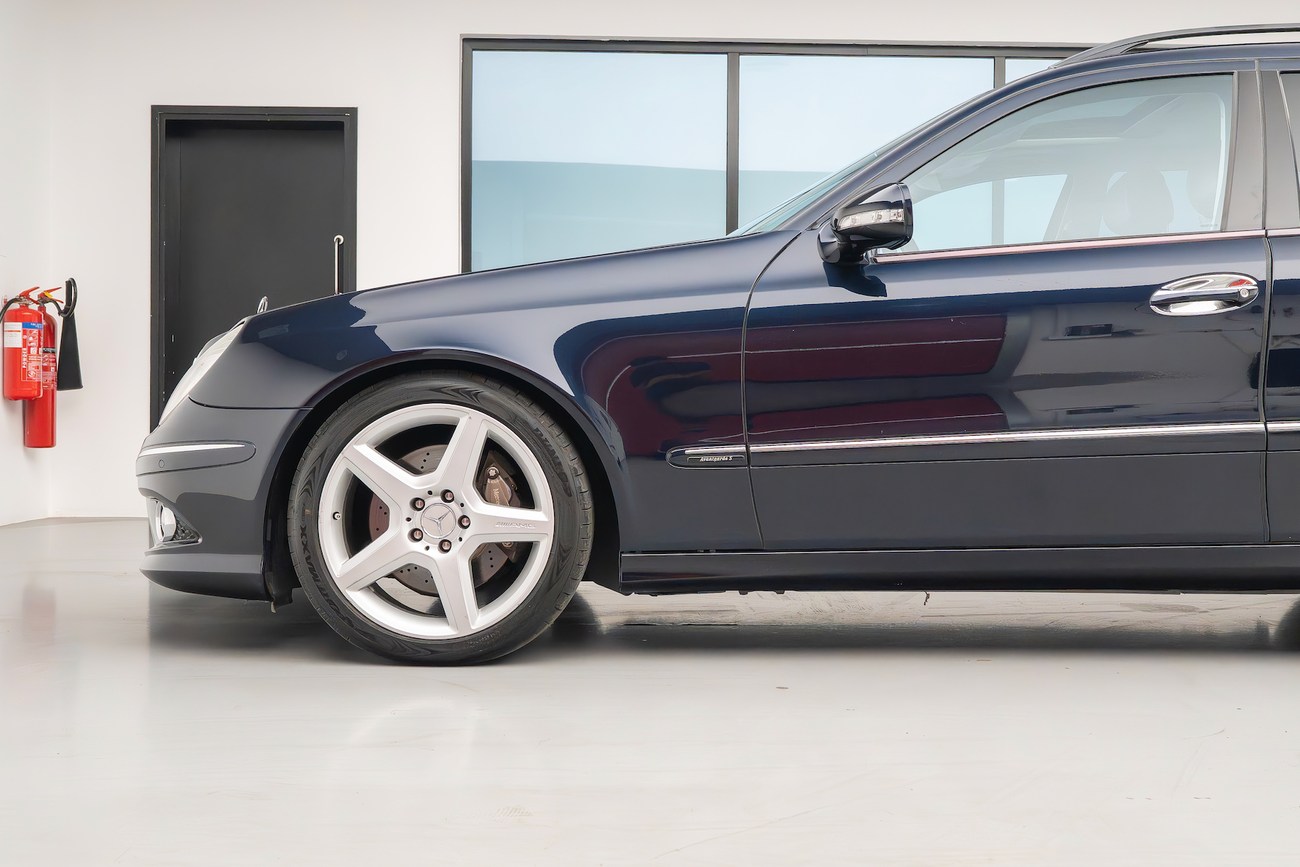 This 2007 Mercedes-Benz E550 Wagon was first sold new in Japan as a left-hand drive example and later exported to the United Arab Emirates where it currently resides with only 122k km (~75k miles). Finished in Tanzanite Blue Metallic (359) over Anthracite Leather (821), power is provided by a 5.5-liter V8 mated with a seven-speed automatic driving the rear wheels. Factory equipment includes heated front seats and mirrors, a glass sunroof, bi-xenon headlamps, dual-zone climate control, Harman Kardon audio, Parktronic, and the AMG Sport Package. Recent service includes new Dunlop tires in June 2025, along with a transmission service and oil change in October 2025 in preparation for the sale. This rare E-Class wagon is offered for sale in Dubai, UAE with one key, the factory tool roll, recent service records, and a clean UAE RTA Certificate/title. The seller can assist buyers with worldwide shipping needs.