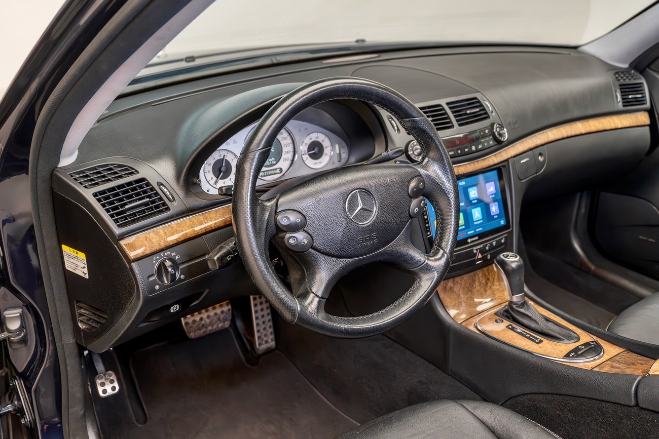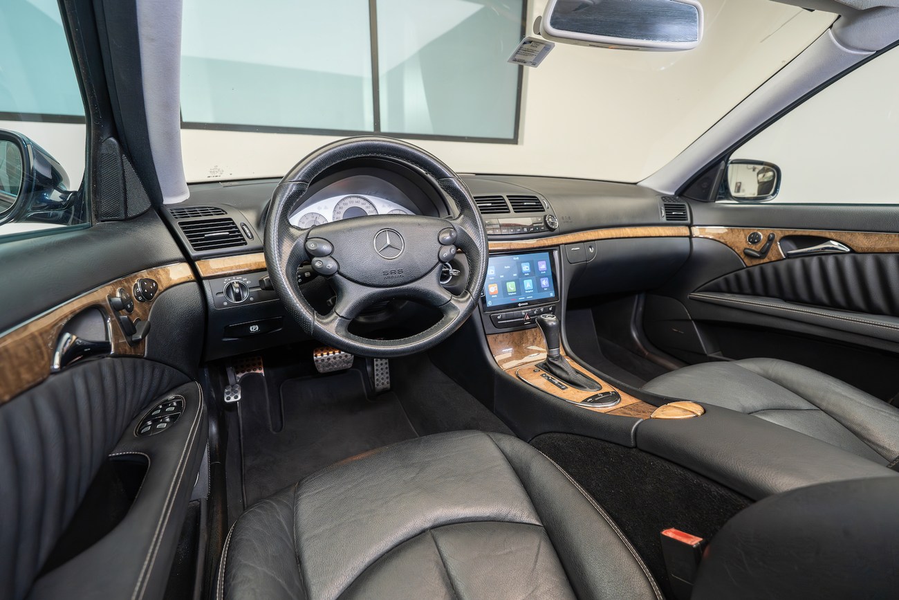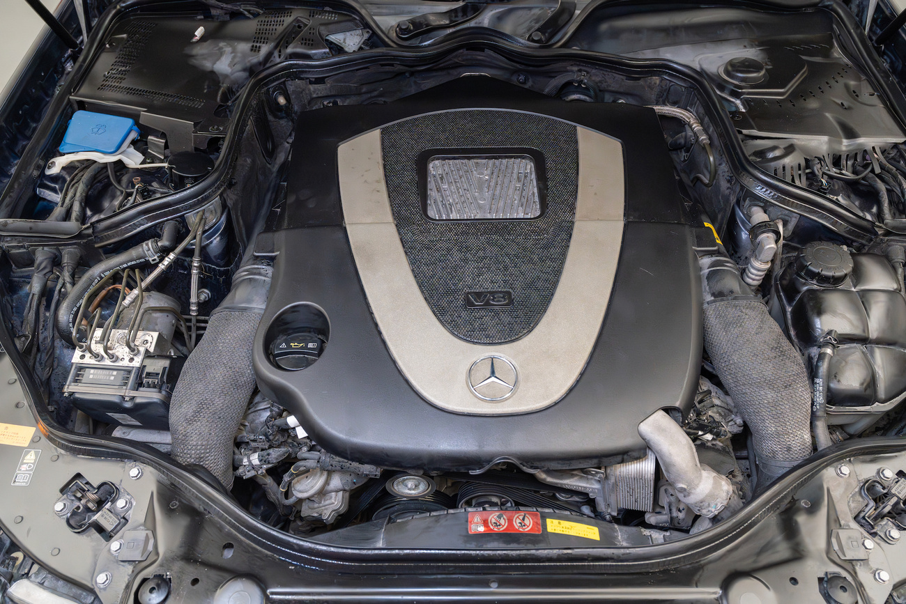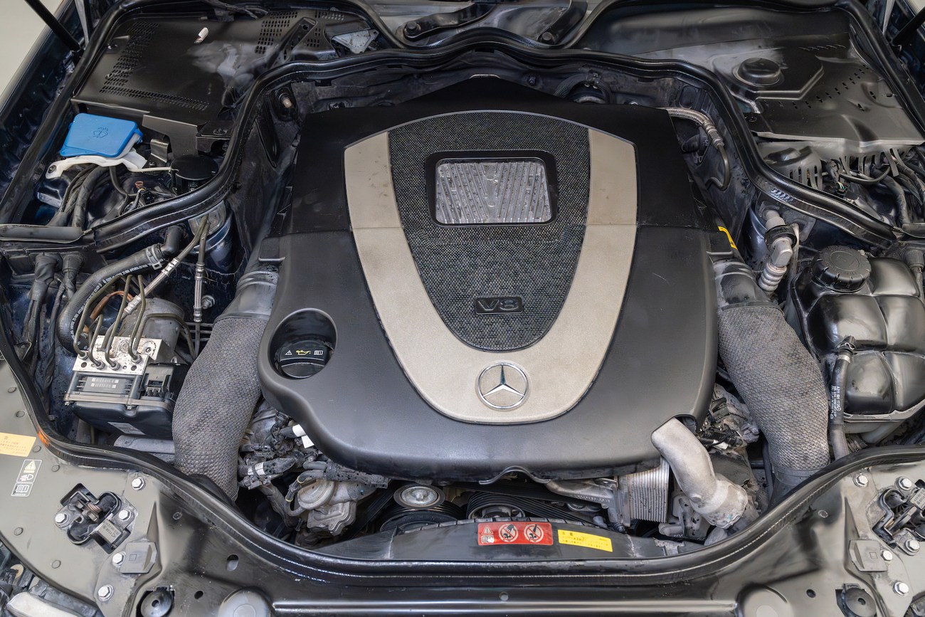 This S211 is powered by a 5.5-liter V8 which is factory rated at 382 horsepower and 391 lb-ft of torque. Power is sent to the rear wheels through a seven-speed automatic transmission. In preparation for the sale, the most recent service was completed in October 2025 and included a transmission fluid and filter change along with a fresh oil service.