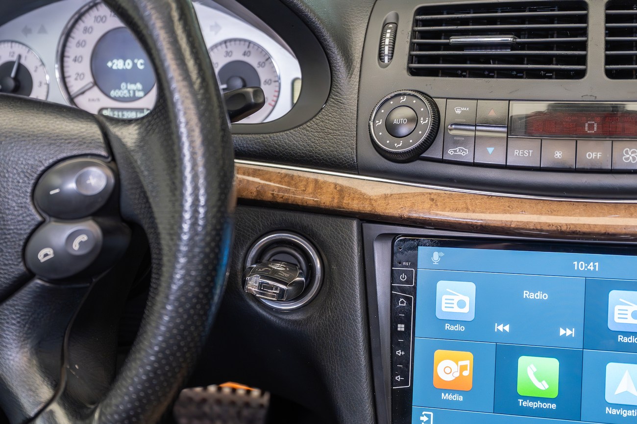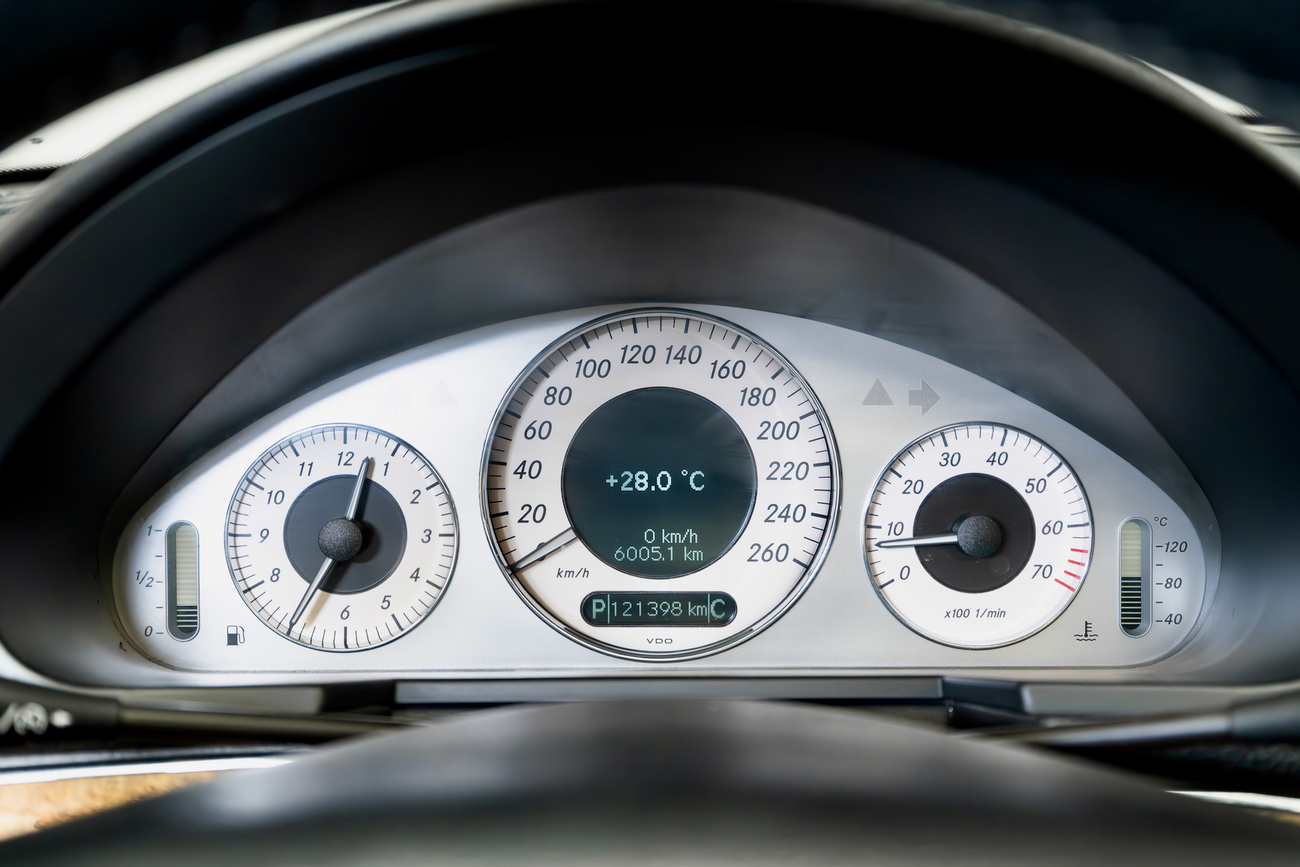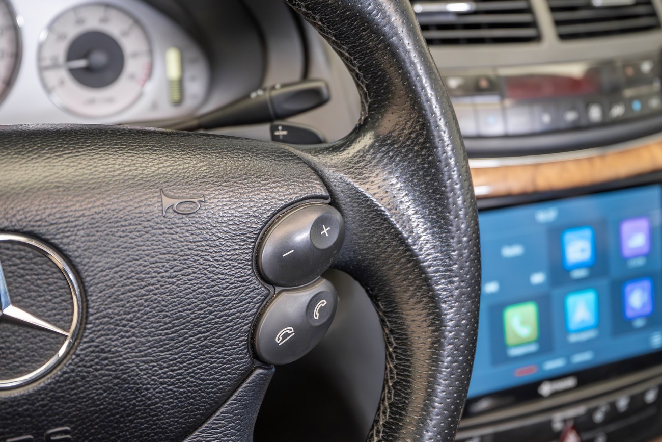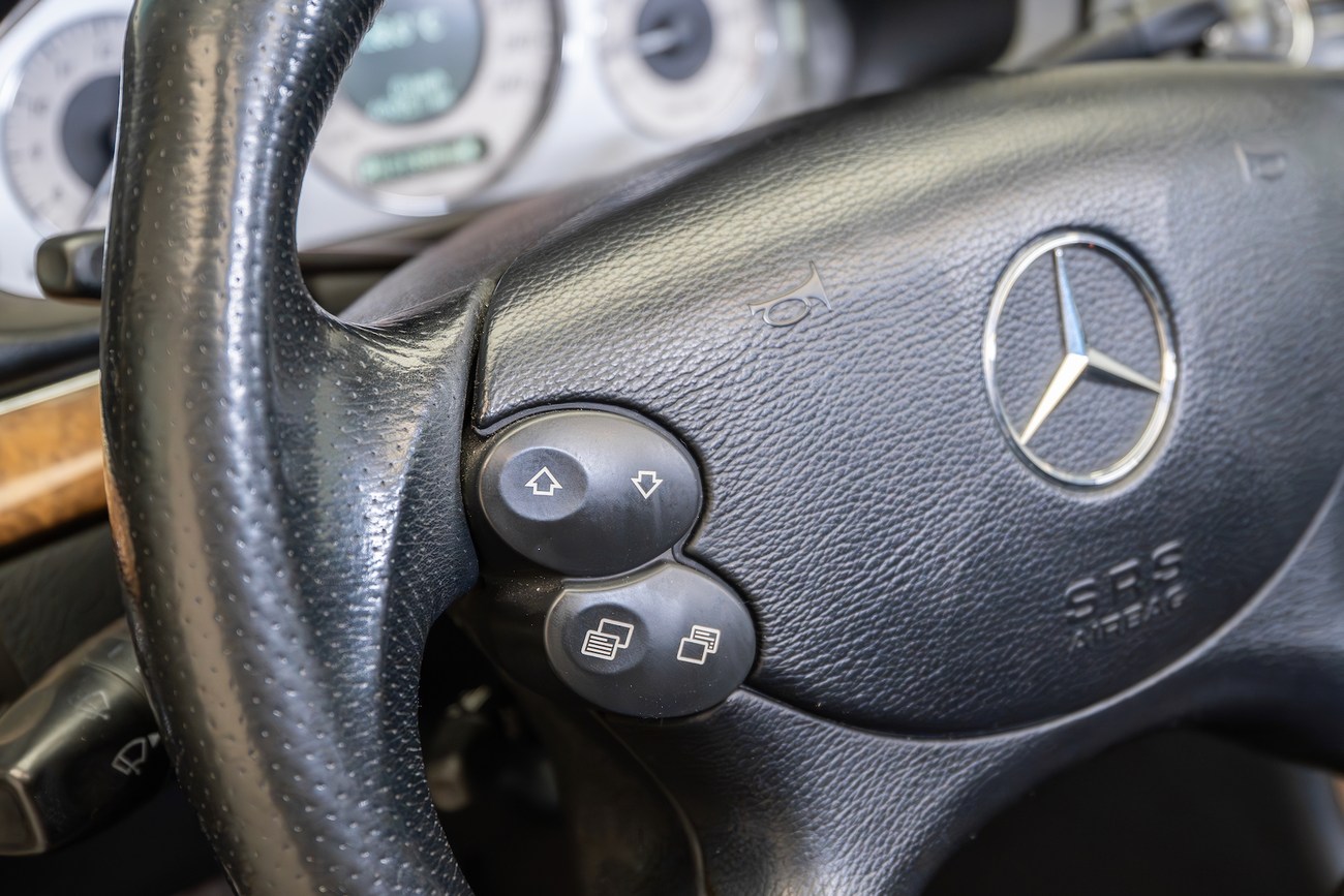 This S211 is powered by a 5.5-liter V8 which is factory rated at 382 horsepower and 391 lb-ft of torque. Power is sent to the rear wheels through a seven-speed automatic transmission. In preparation for the sale, the most recent service was completed in October 2025 and included a transmission fluid and filter change along with a fresh oil service.