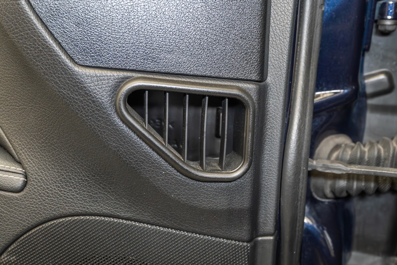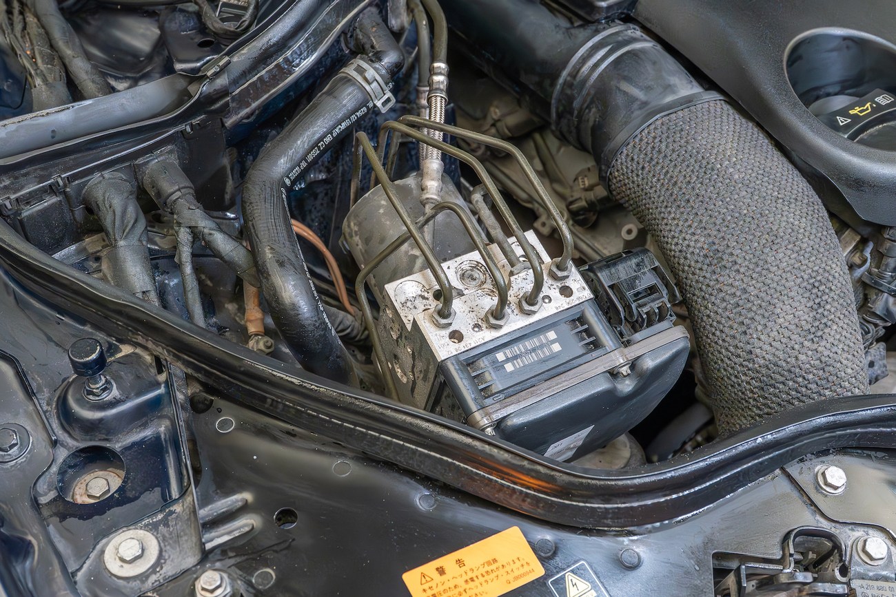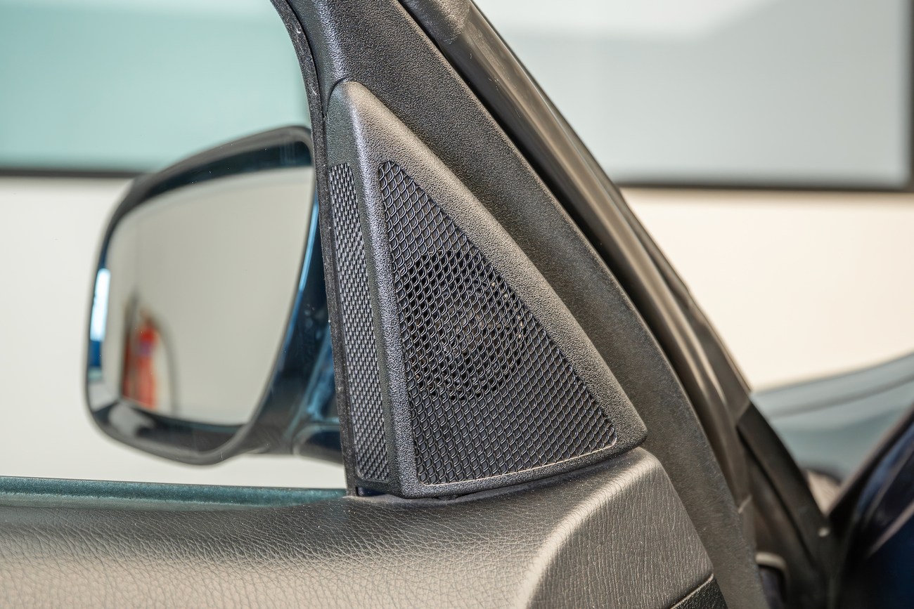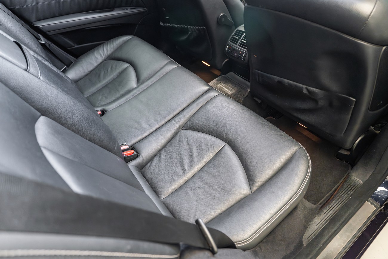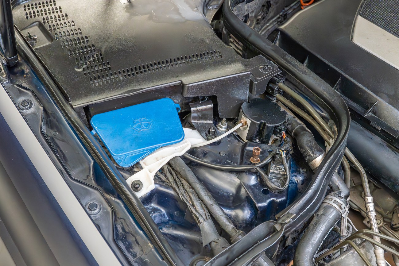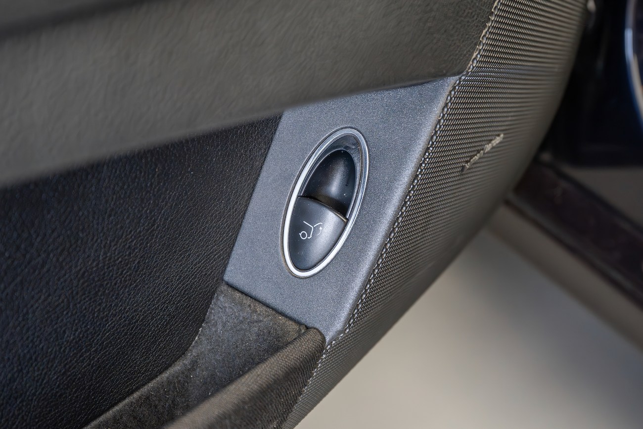 The leather-wrapped steering wheel features paddle shifters and fronts white-faced Sport gauges including a 260kmh speedometer with a centrally-mounted digital display. The digital odometer currently reads 122k kilometers (~75k miles). Other instrumentation includes a 7k-rpm tachometer, analog clock, and digital fuel level and coolant temperature gauges.