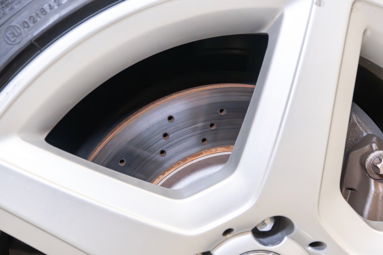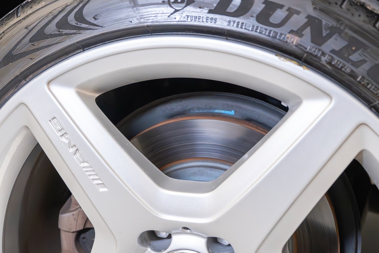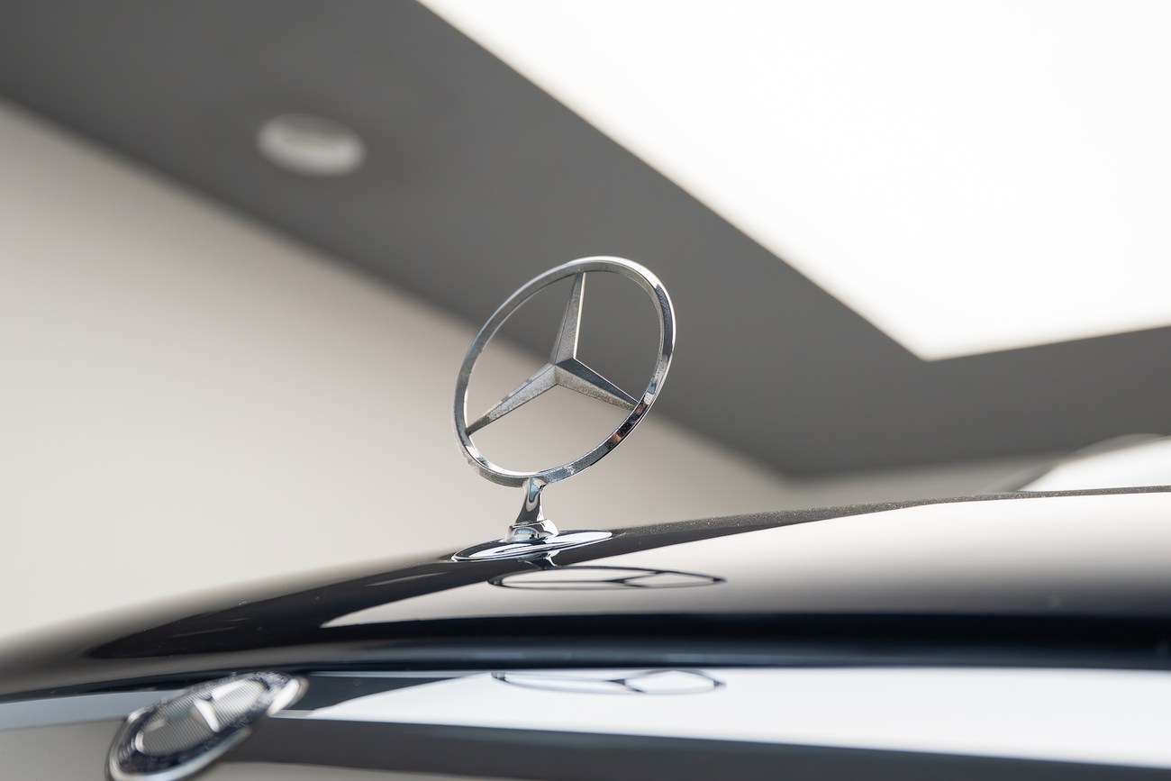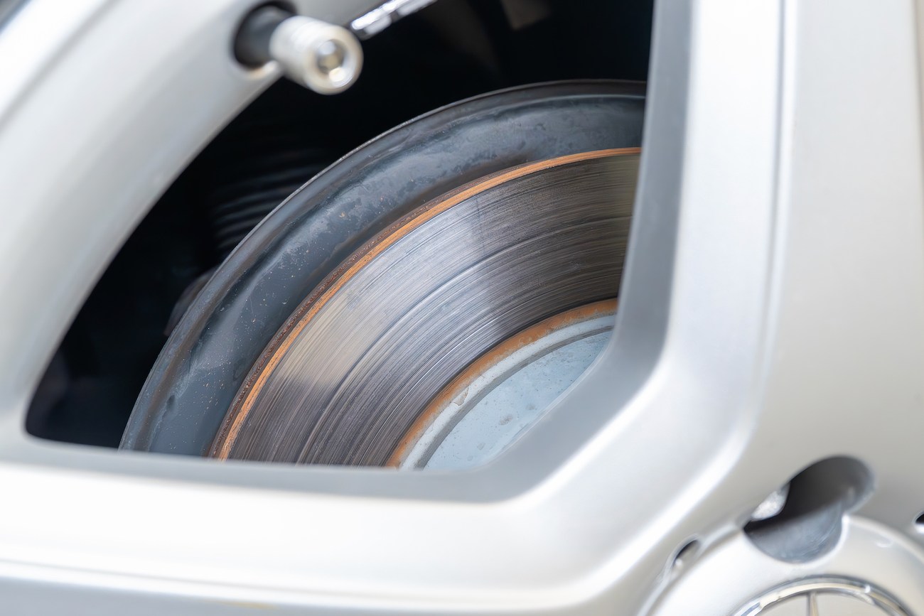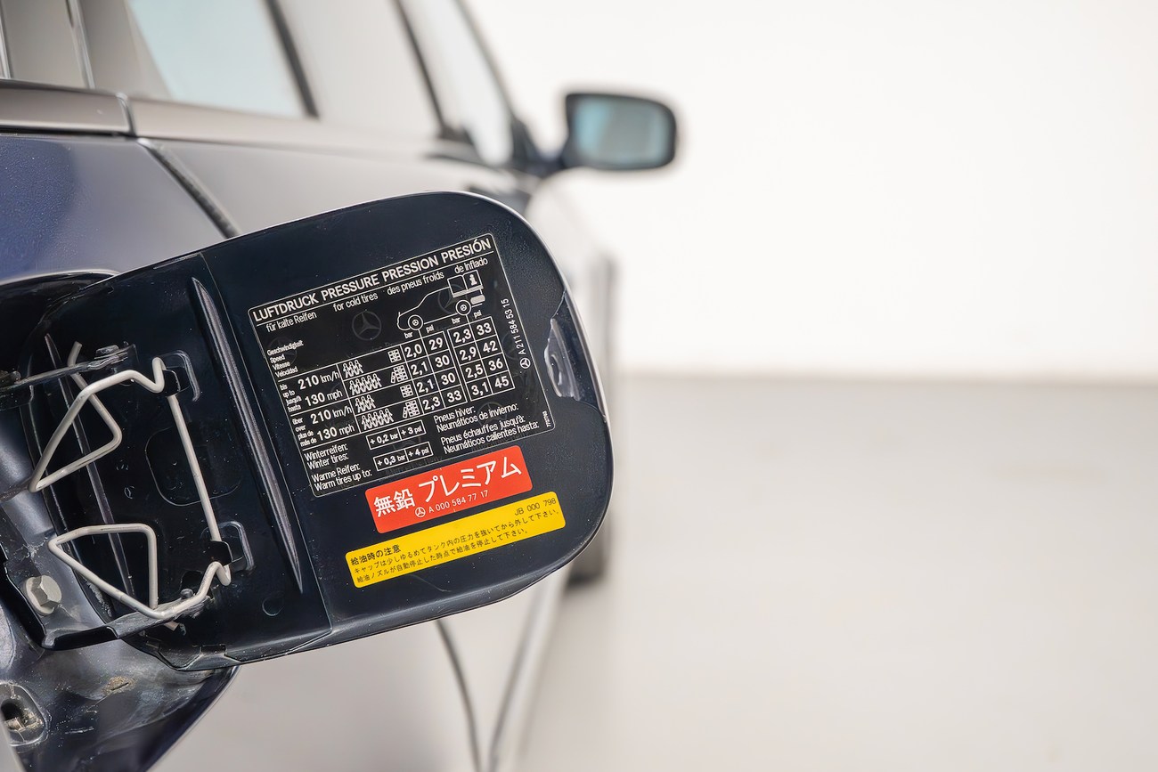 Fitted are the factory Sport-optioned 18” AMG five-spoke alloy wheels which are wrapped with Dunlop Sport Maxx tires measuring 245/40 in the front and 265/35 in the rear. The tires were replaced in June 2025 and show 2025 date codes. The car feature airmatic suspension on all four corners which allow for height and damping adjustment.