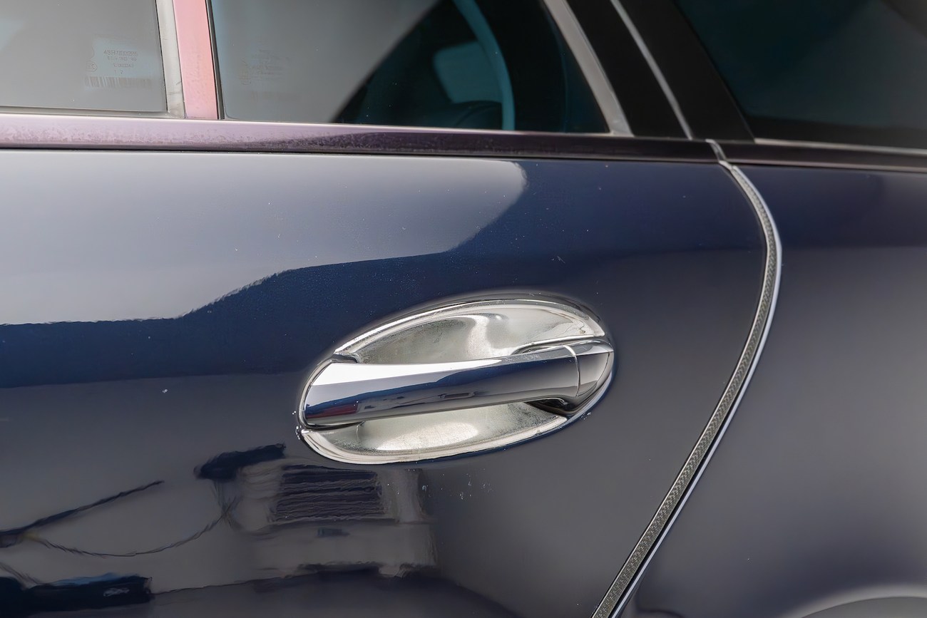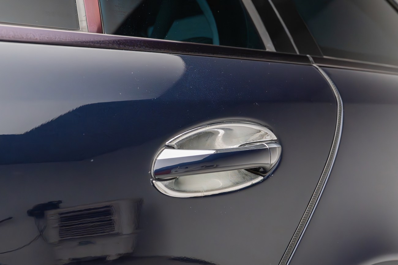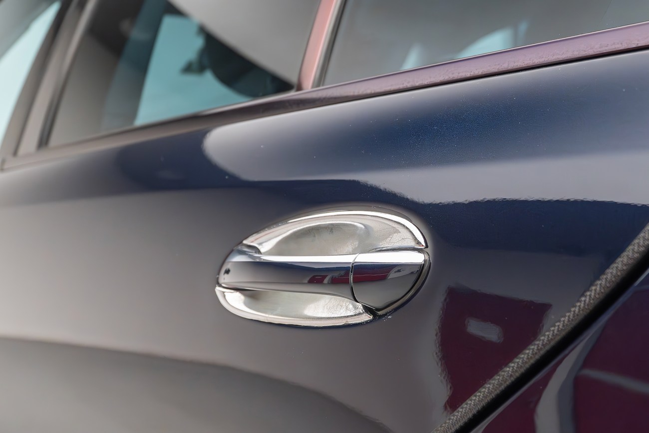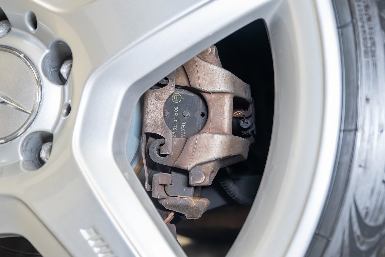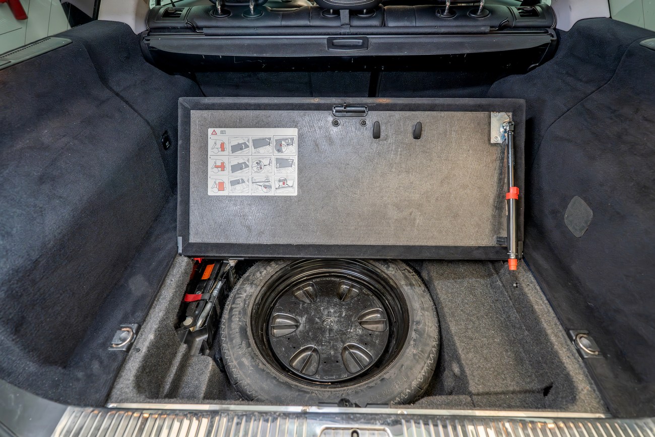 Fitted are the factory Sport-optioned 18” AMG five-spoke alloy wheels which are wrapped with Dunlop Sport Maxx tires measuring 245/40 in the front and 265/35 in the rear. The tires were replaced in June 2025 and show 2025 date codes. The car feature airmatic suspension on all four corners which allow for height and damping adjustment.