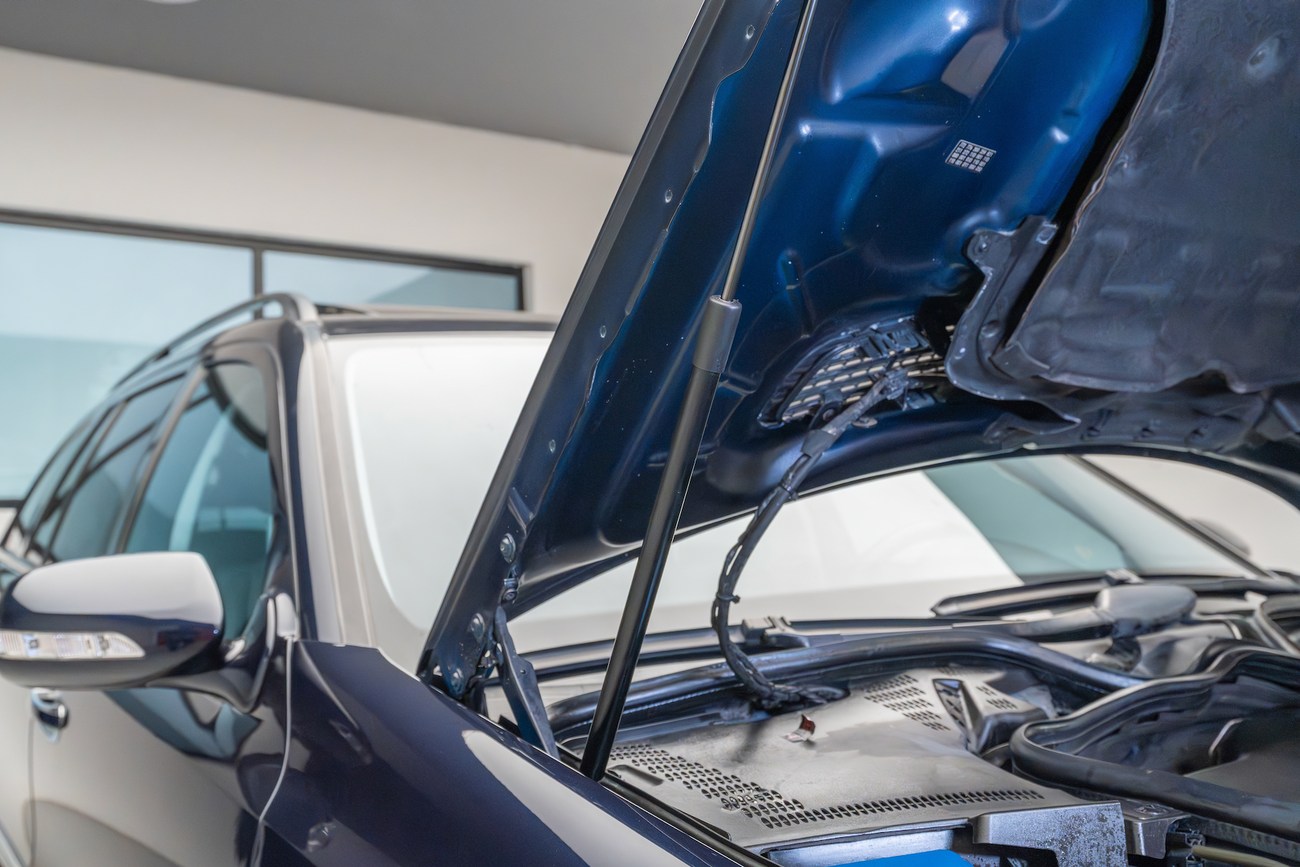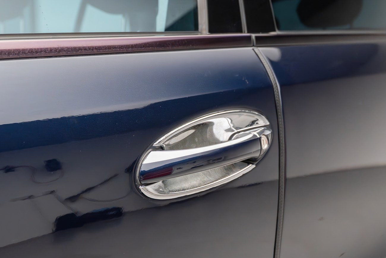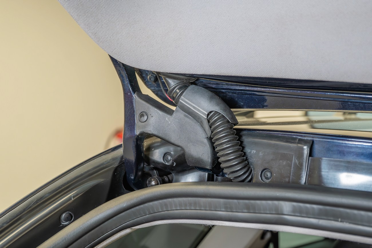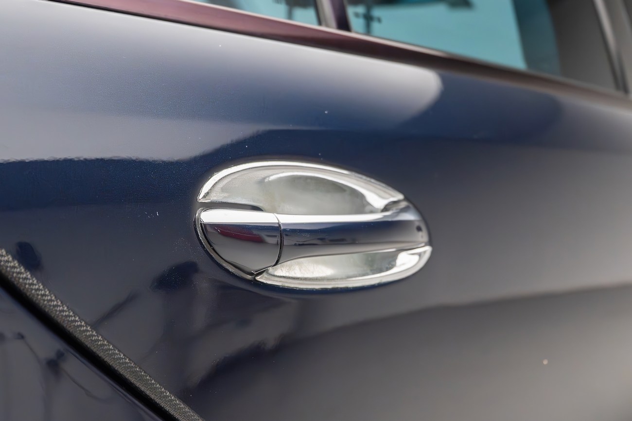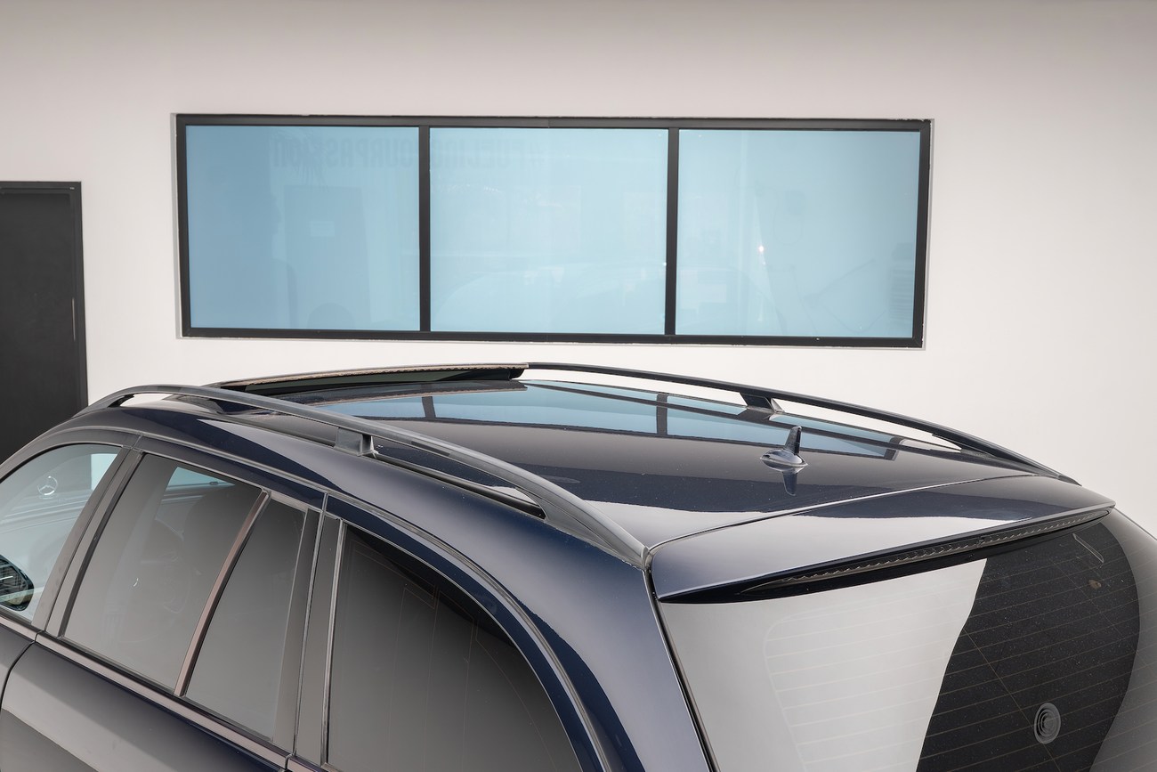Fitted are the factory Sport-optioned 18” AMG five-spoke alloy wheels which are wrapped with Dunlop Sport Maxx tires measuring 245/40 in the front and 265/35 in the rear. The tires were replaced in June 2025 and show 2025 date codes. The car feature airmatic suspension on all four corners which allow for height and damping adjustment.