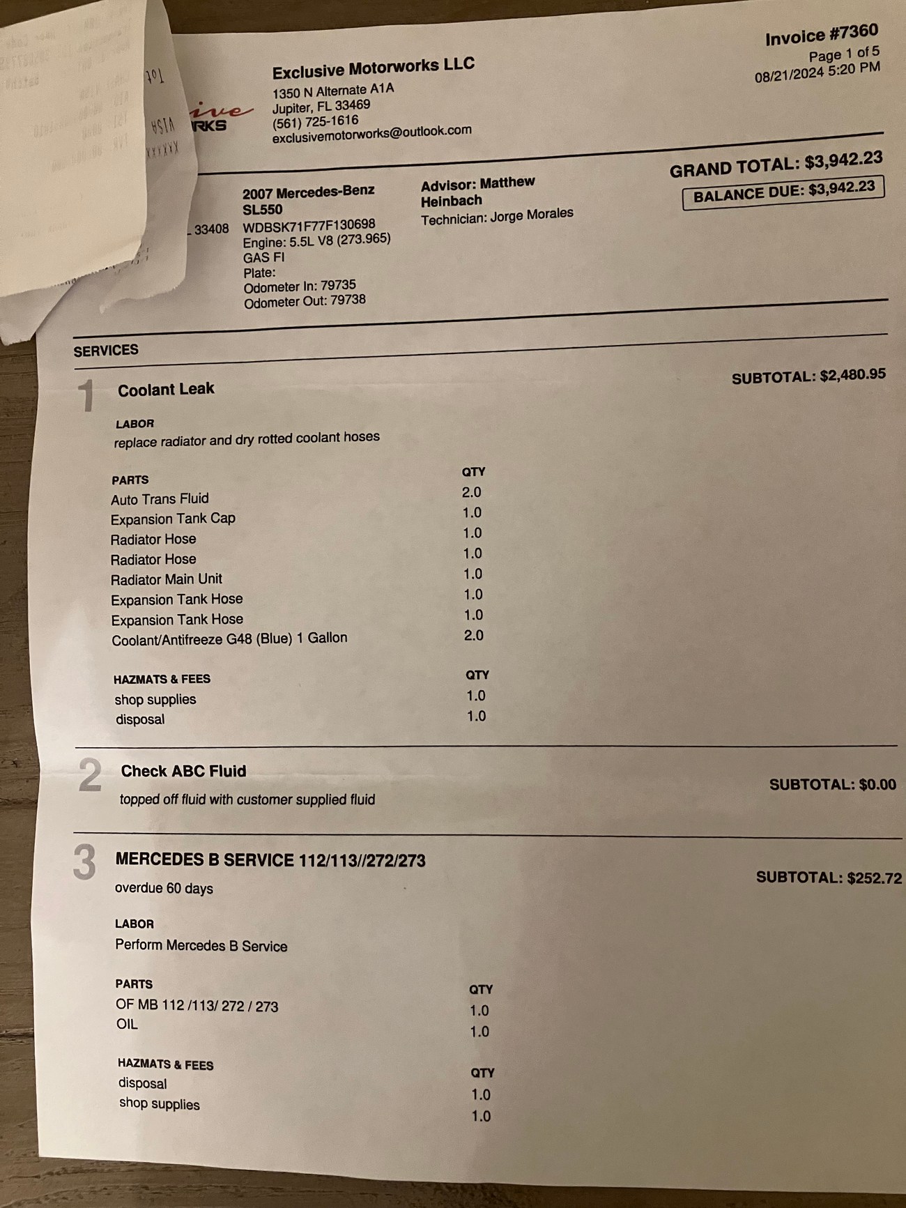 Looks pretty clean, this cars last forever well maintained, when was the last service made? Does it has a clean Carfax> Congratulations on the interiors and the paint, super cleanThis is a beautiful vehicle. Can you tell me if it’s the original paint? What is the date code on the tires? I’m very anxious to see the driving video.. Thank youWelcome to the Auction. Happy to present this 2007 SlL550. The car features AMG trim kit and all the bells and whistles. AC blows ice cold. Seats heat up, rear window defrosts. Seat motion function works as it should. Top opens in about :18 as it should. Drives straight and true. Rear tires are new, front tires are ready to change. Trunk function works perfectly as do lock and start systems. Batteries test correct. Front (starter) battery is new this year.. Also, receipts for about $10k of maintenance from the last year and a half. I’ll post a driving video this weekend. Any questions please let me know. Thanks!$250 bid placed by @Stevehall