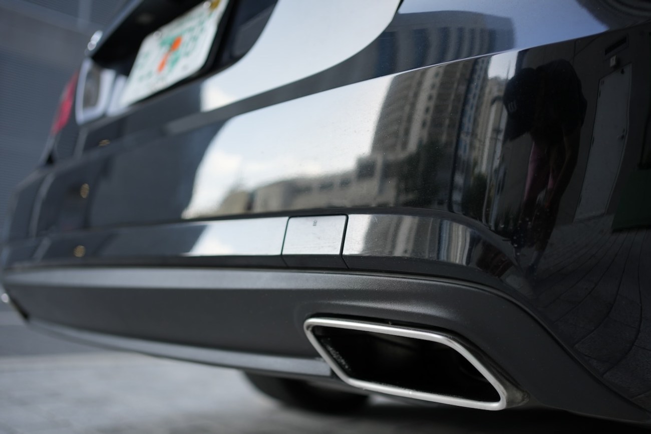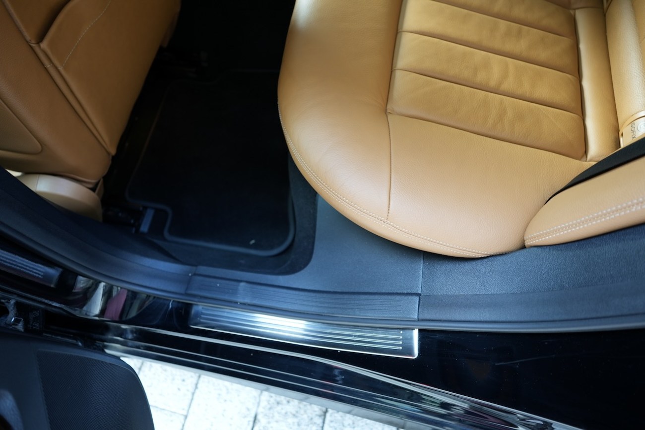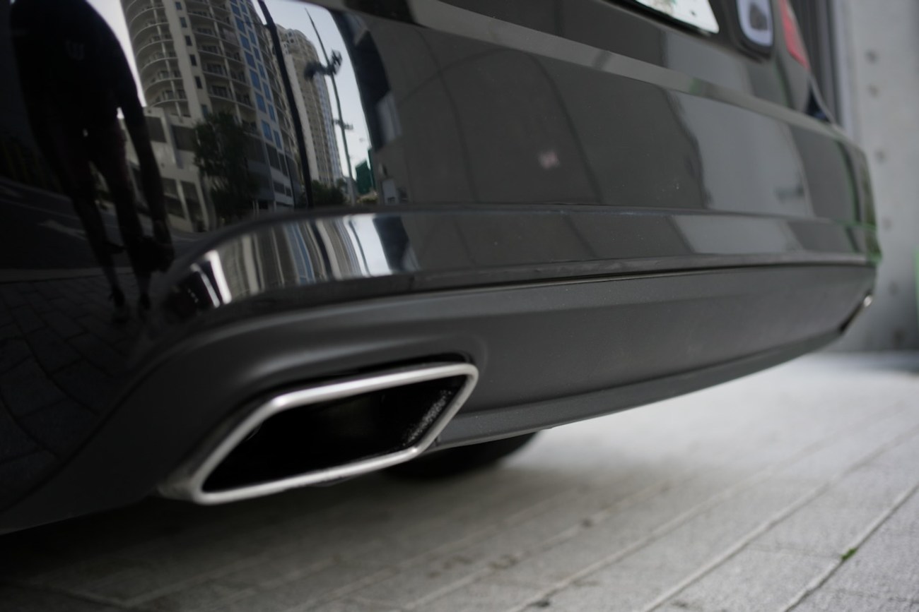 The exterior is finished in Black (040) and features Sport styling with chrome trim and body accessories. Exterior features include Bi-Xenon headlamps with adaptive high beam, fog lights, auto dimming door mirrors, a rear-view camera, and a power glass sunroof. The included Carfax report shows no prior accidents or damage and photos of the body have been included in the gallery.