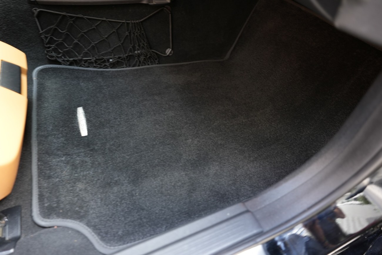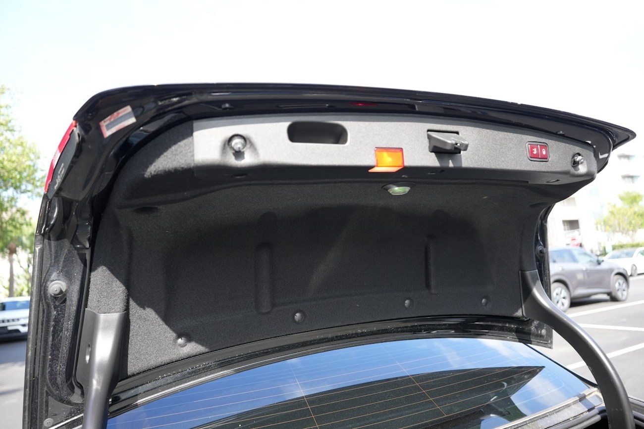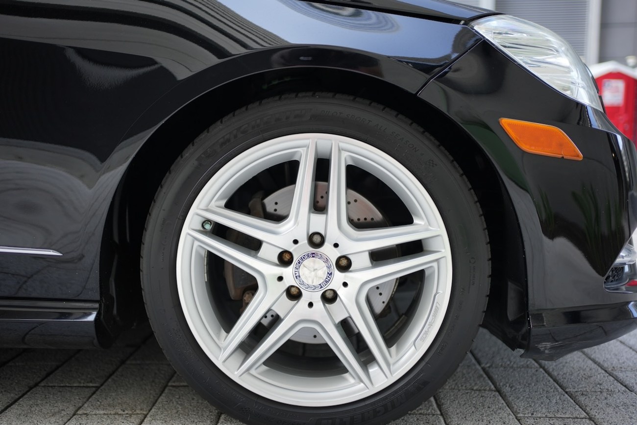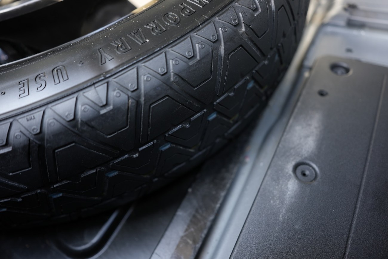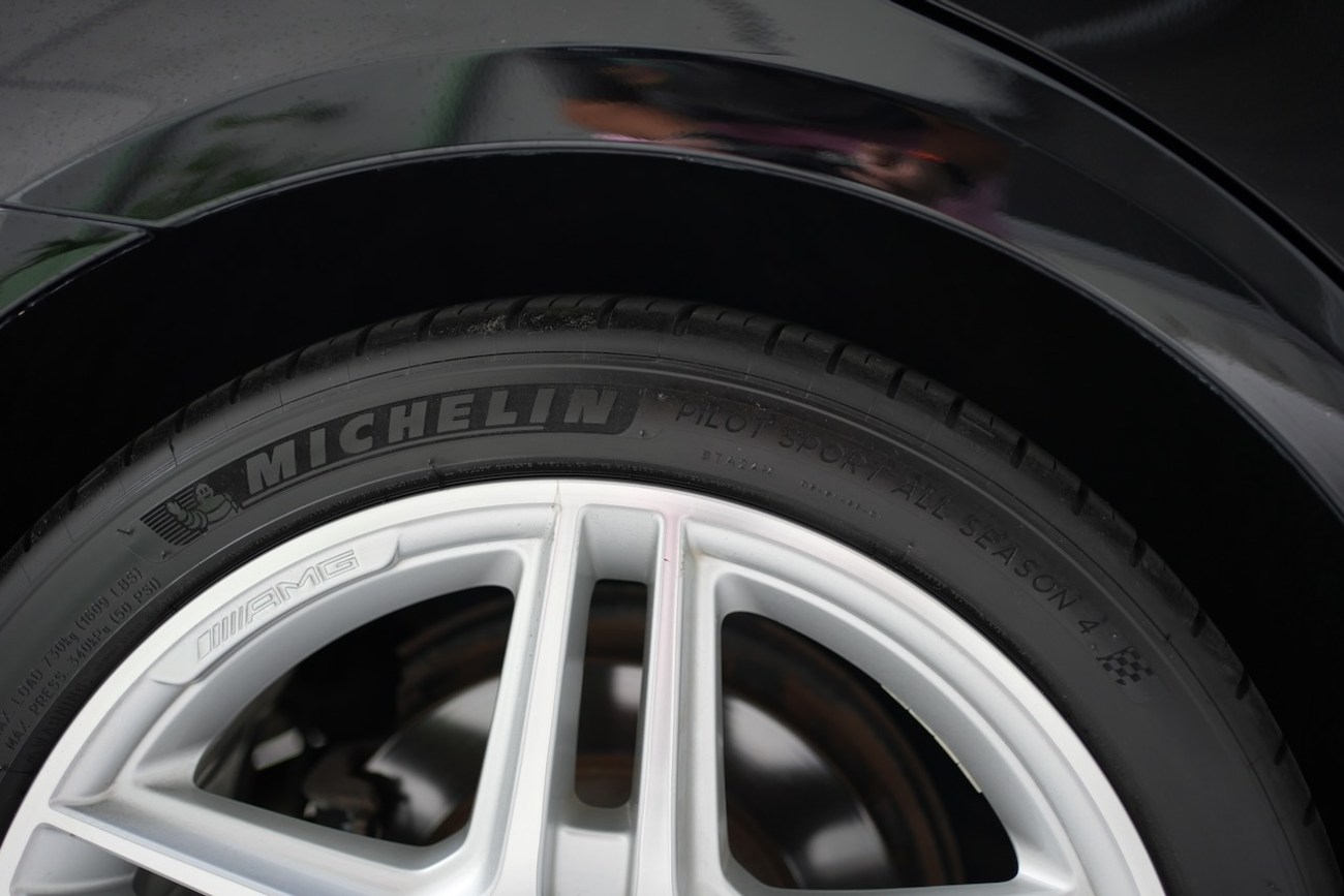 The 18” split five-spoke alloy wheels are fitted with Michelin tires which measure 245/40 up front and 265/35 in the rear. All four tires show 2023 date codes. The wheels show in excellent condition with no major imperfections. A spare can be found mounted below the trunk floor and is pictured in the gallery.