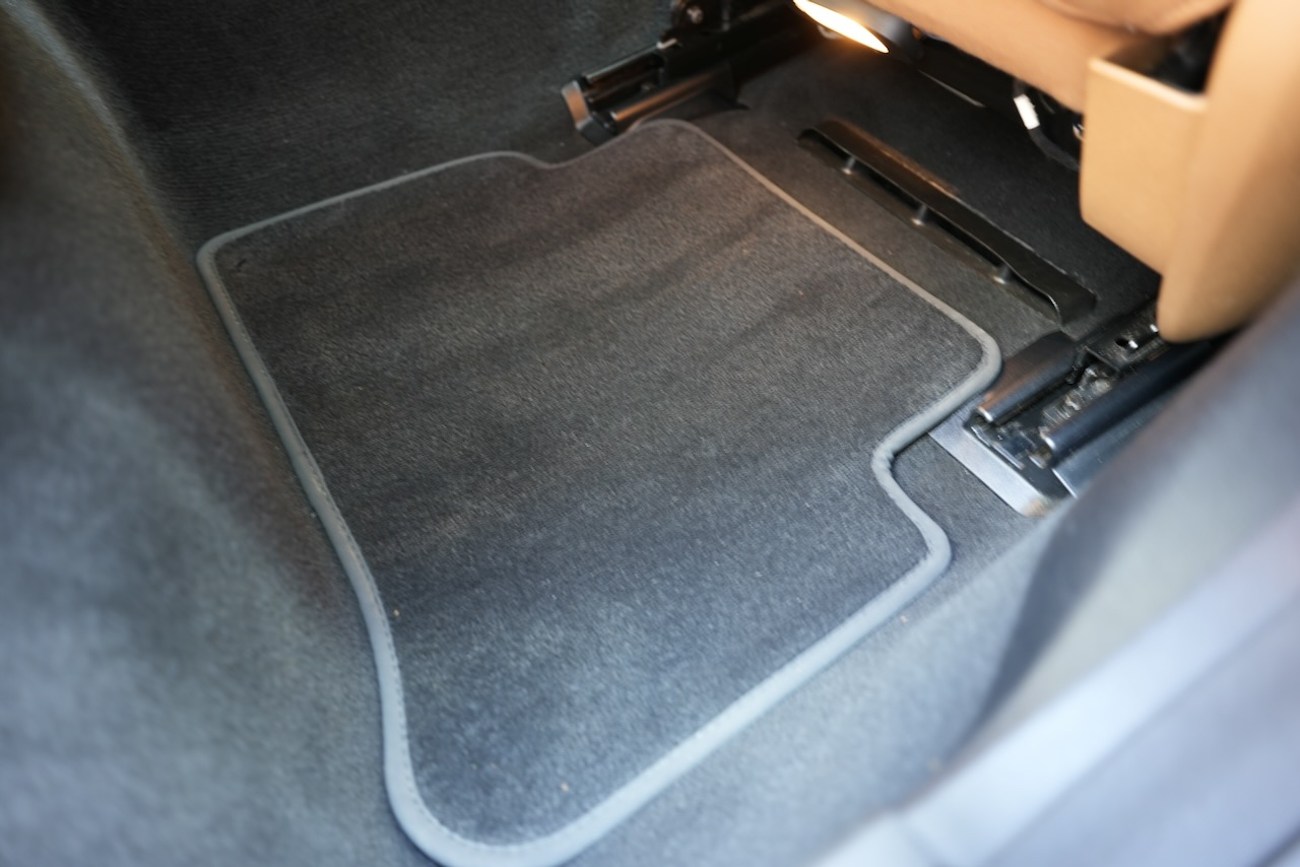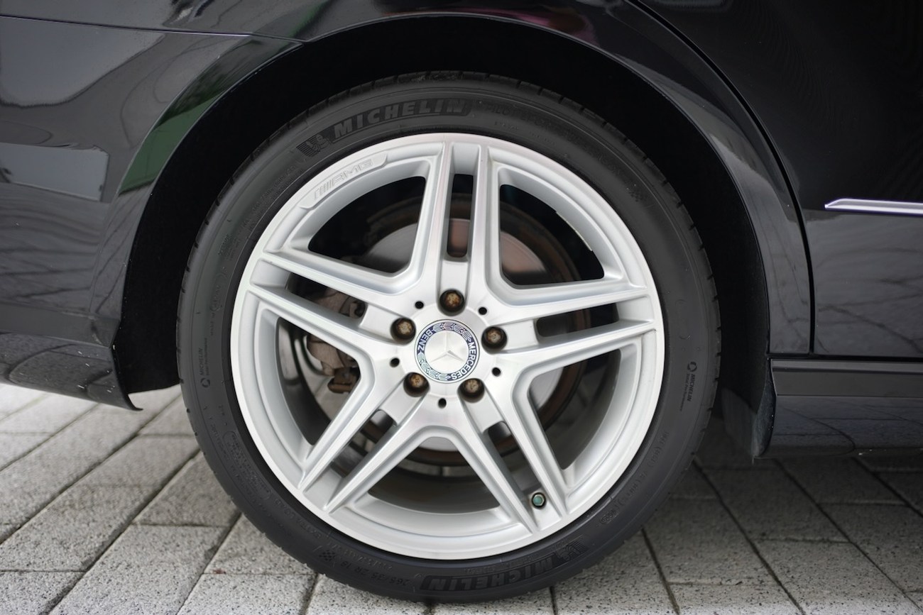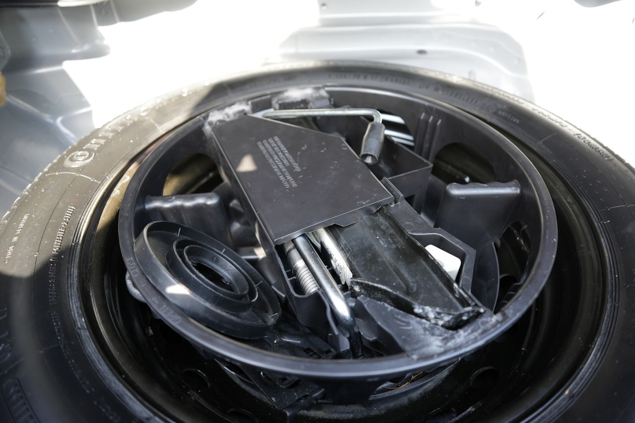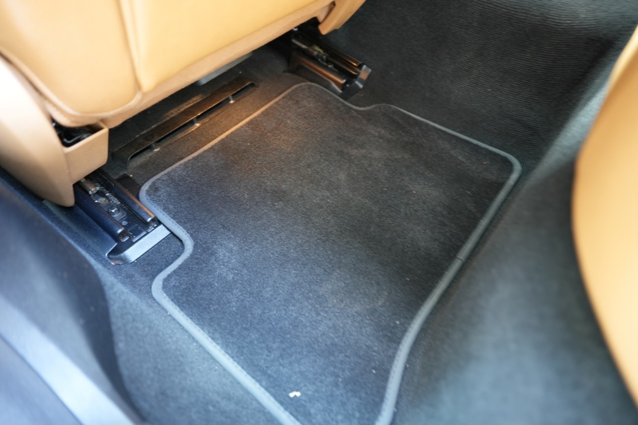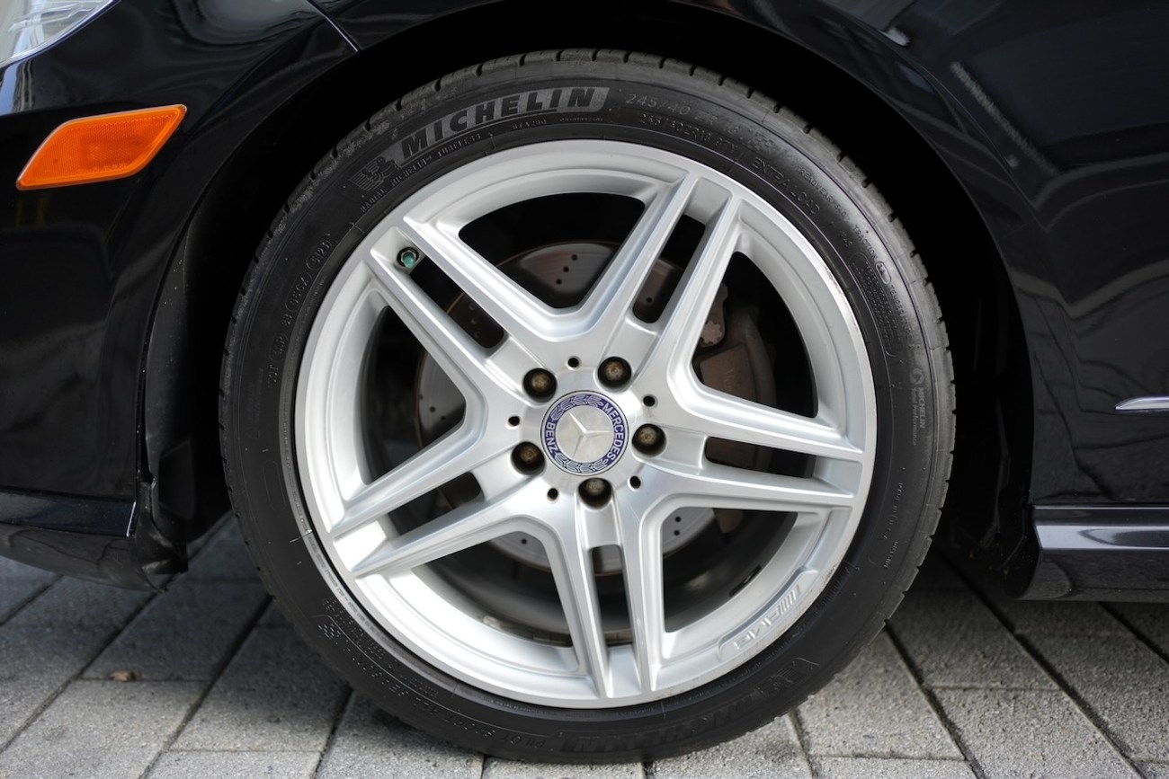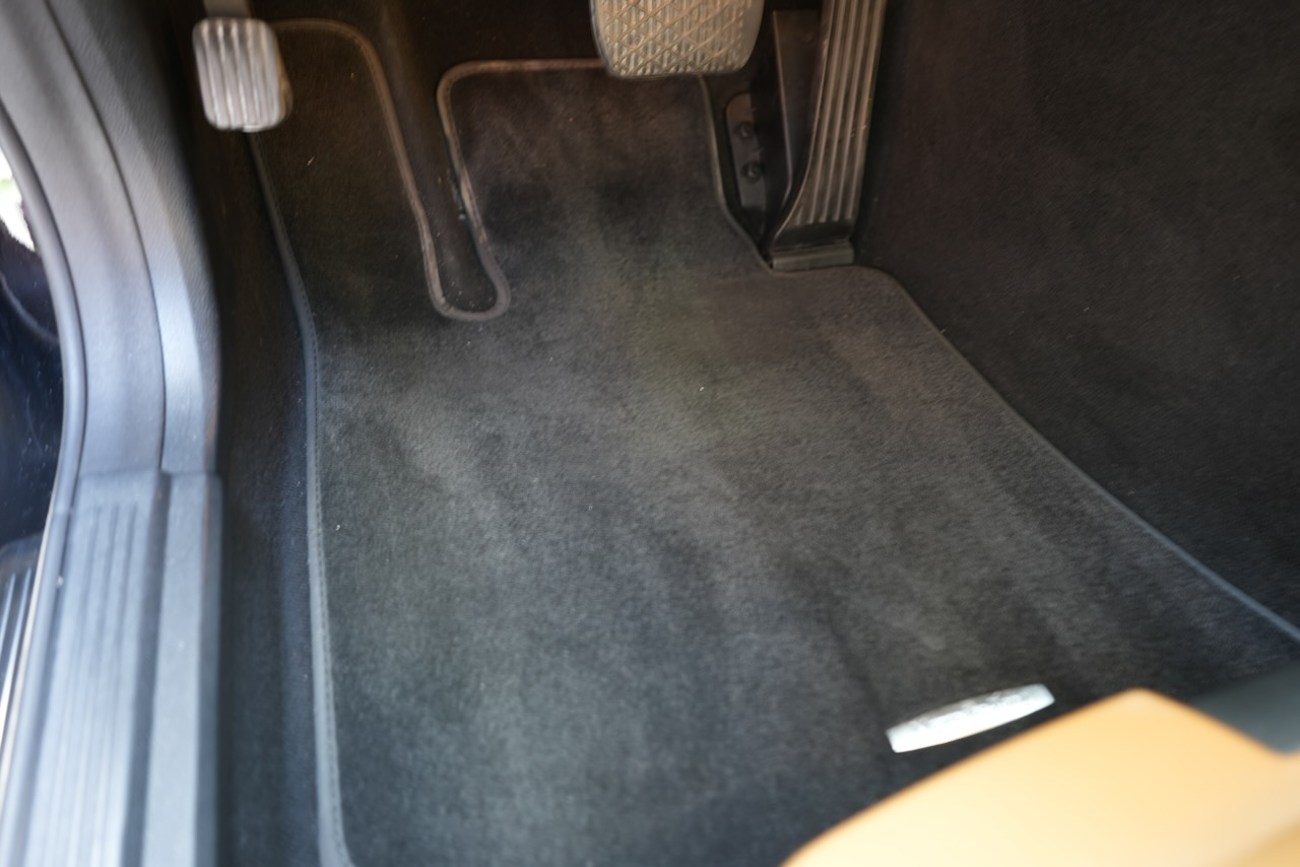 The 18” split five-spoke alloy wheels are fitted with Michelin tires which measure 245/40 up front and 265/35 in the rear. All four tires show 2023 date codes. The wheels show in excellent condition with no major imperfections. A spare can be found mounted below the trunk floor and is pictured in the gallery.