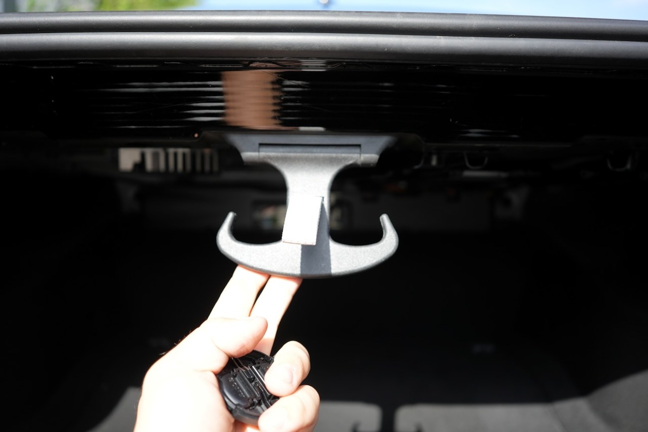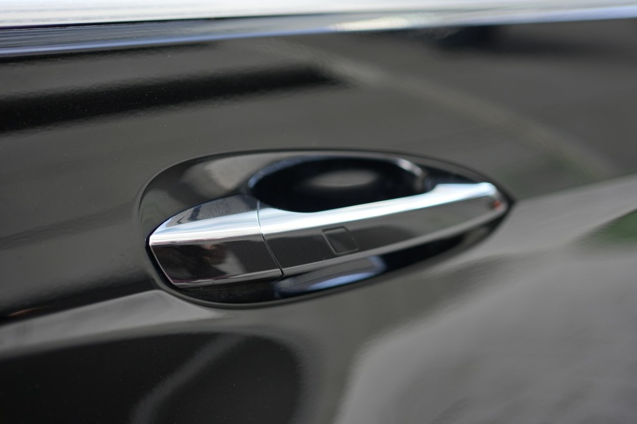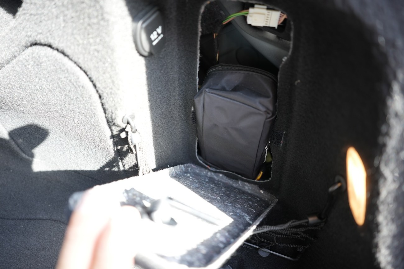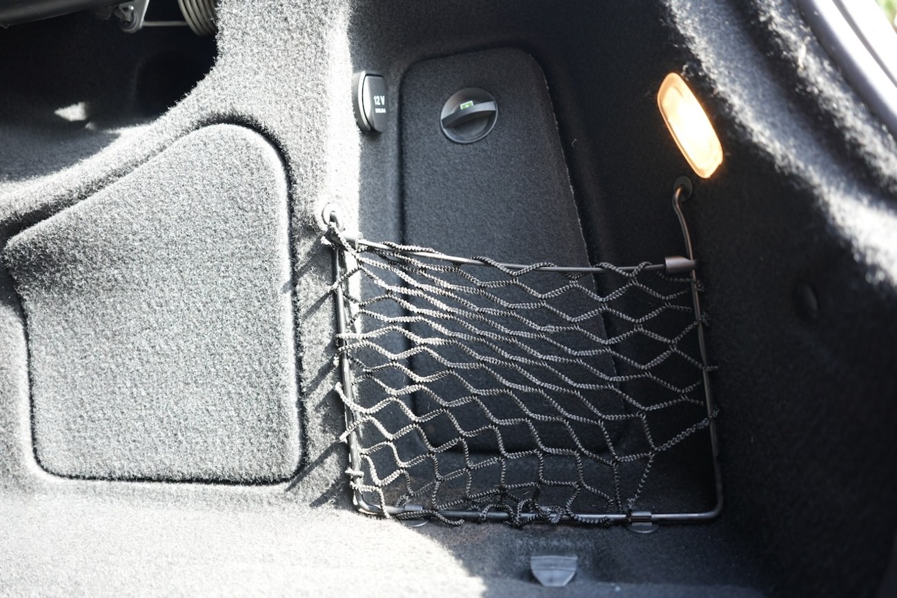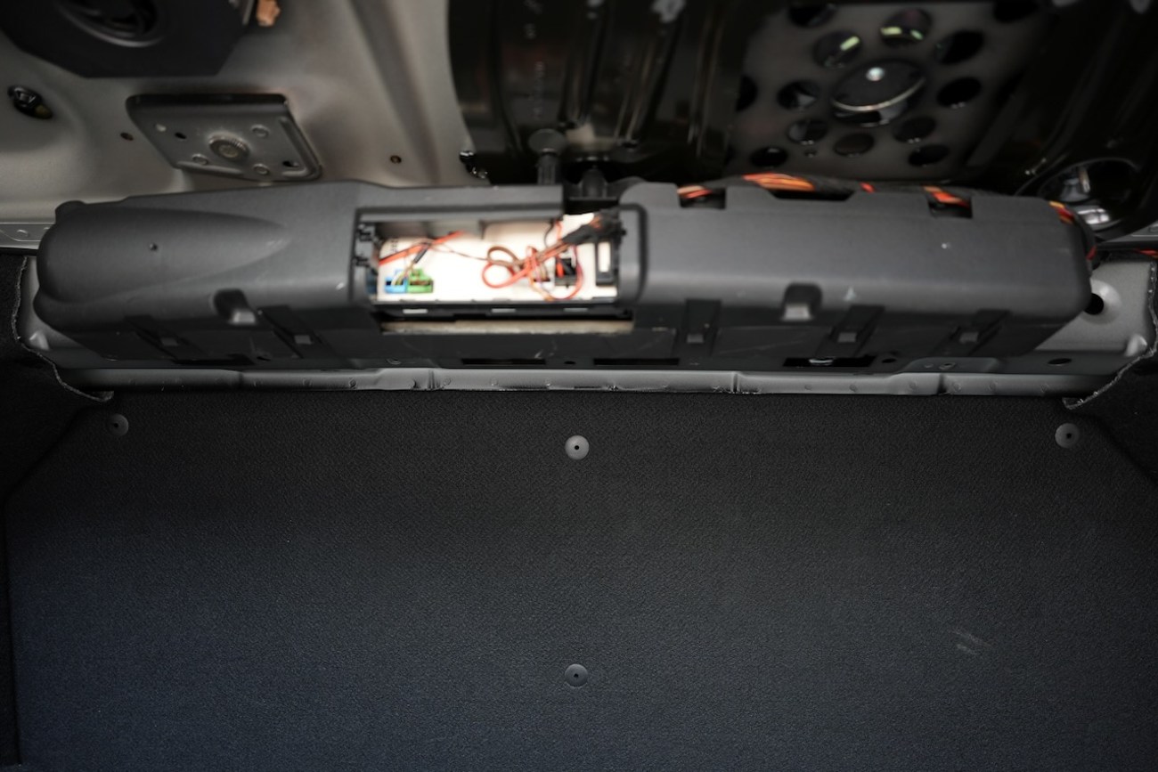 The 18” split five-spoke alloy wheels are fitted with Michelin tires which measure 245/40 up front and 265/35 in the rear. All four tires show 2023 date codes. The wheels show in excellent condition with no major imperfections. A spare can be found mounted below the trunk floor and is pictured in the gallery.