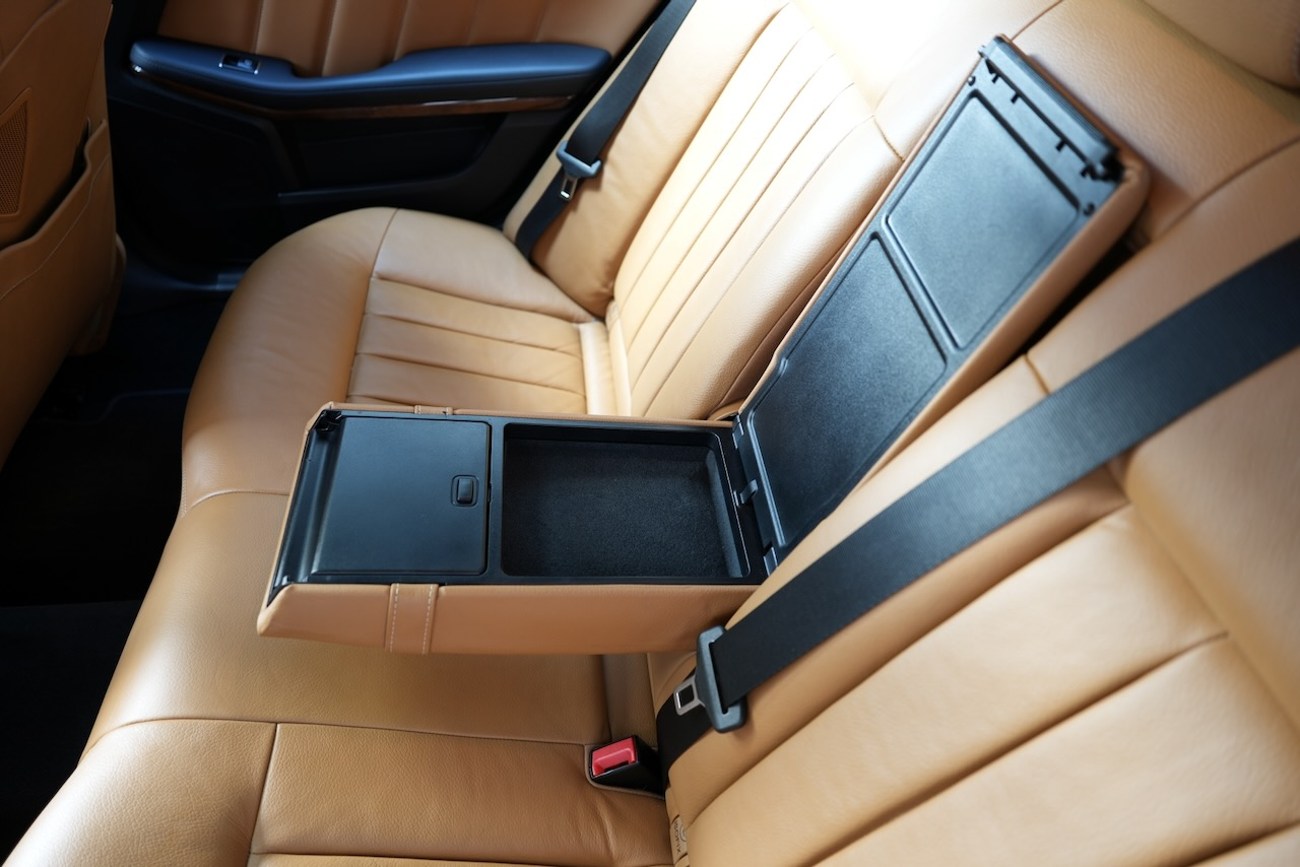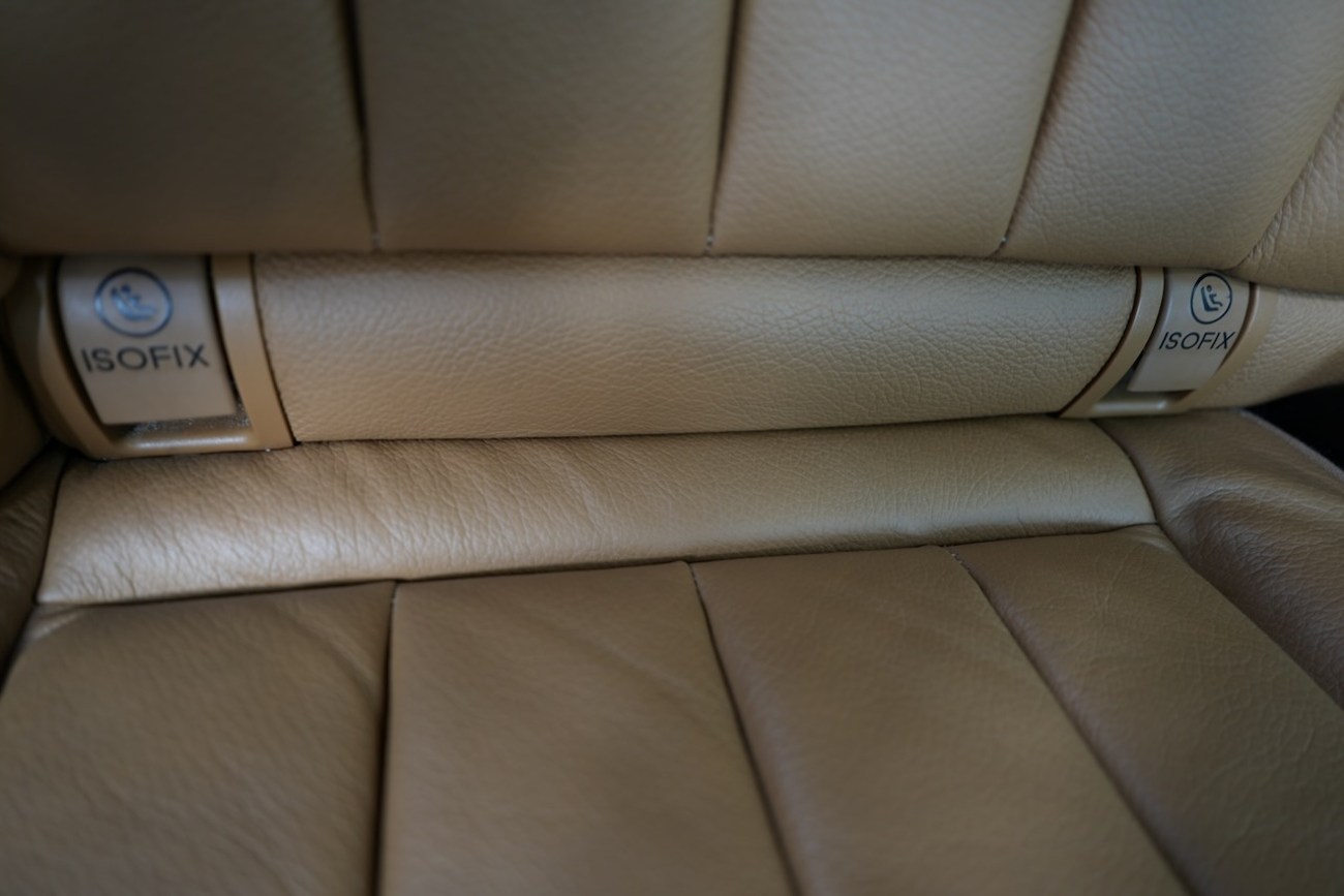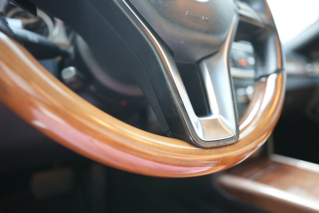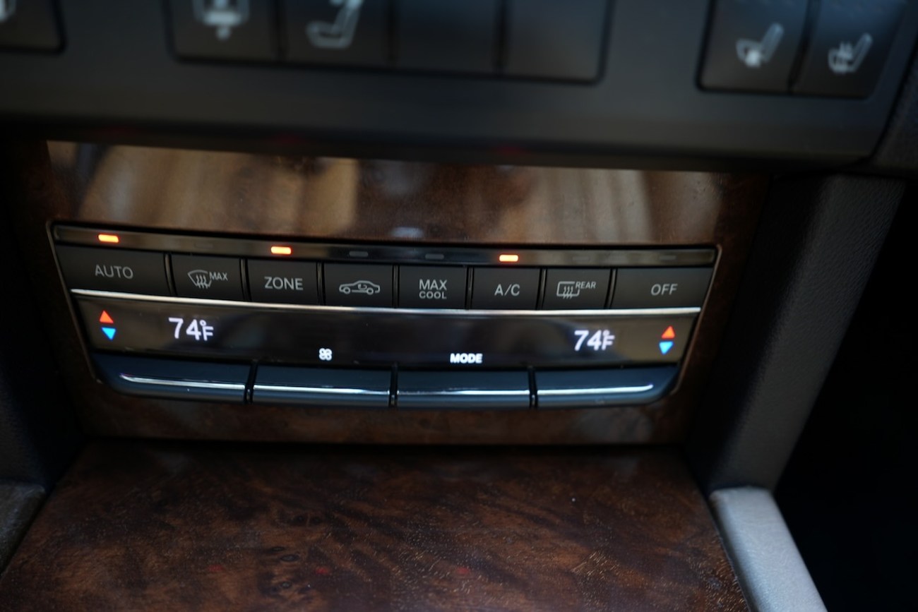The optional wood and leather steering wheel fronts a 160-mph speedometer with a central configurable display along with an 8k-rpm tachometer, an analog clock and gauges for fuel level and coolant temperature. The digital odometer currently shows less than 212k miles from new.