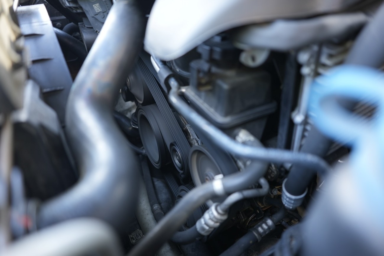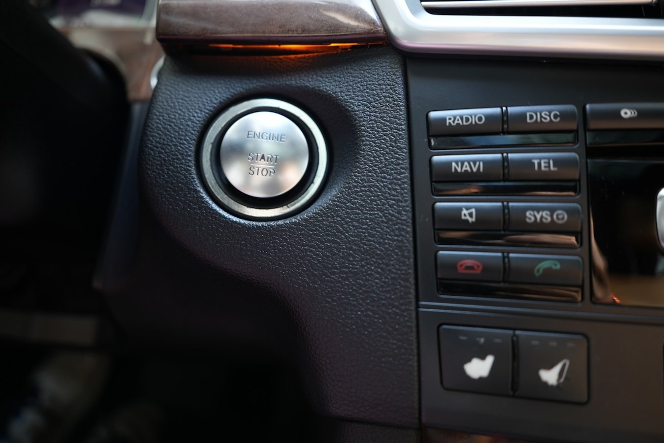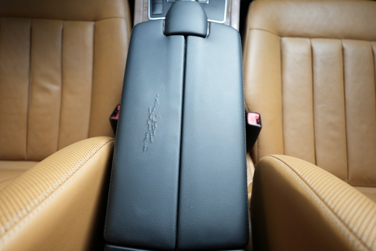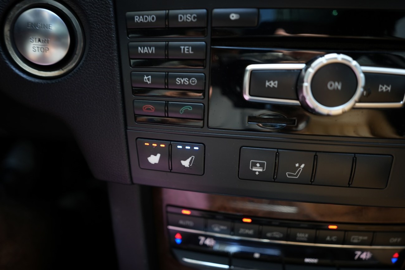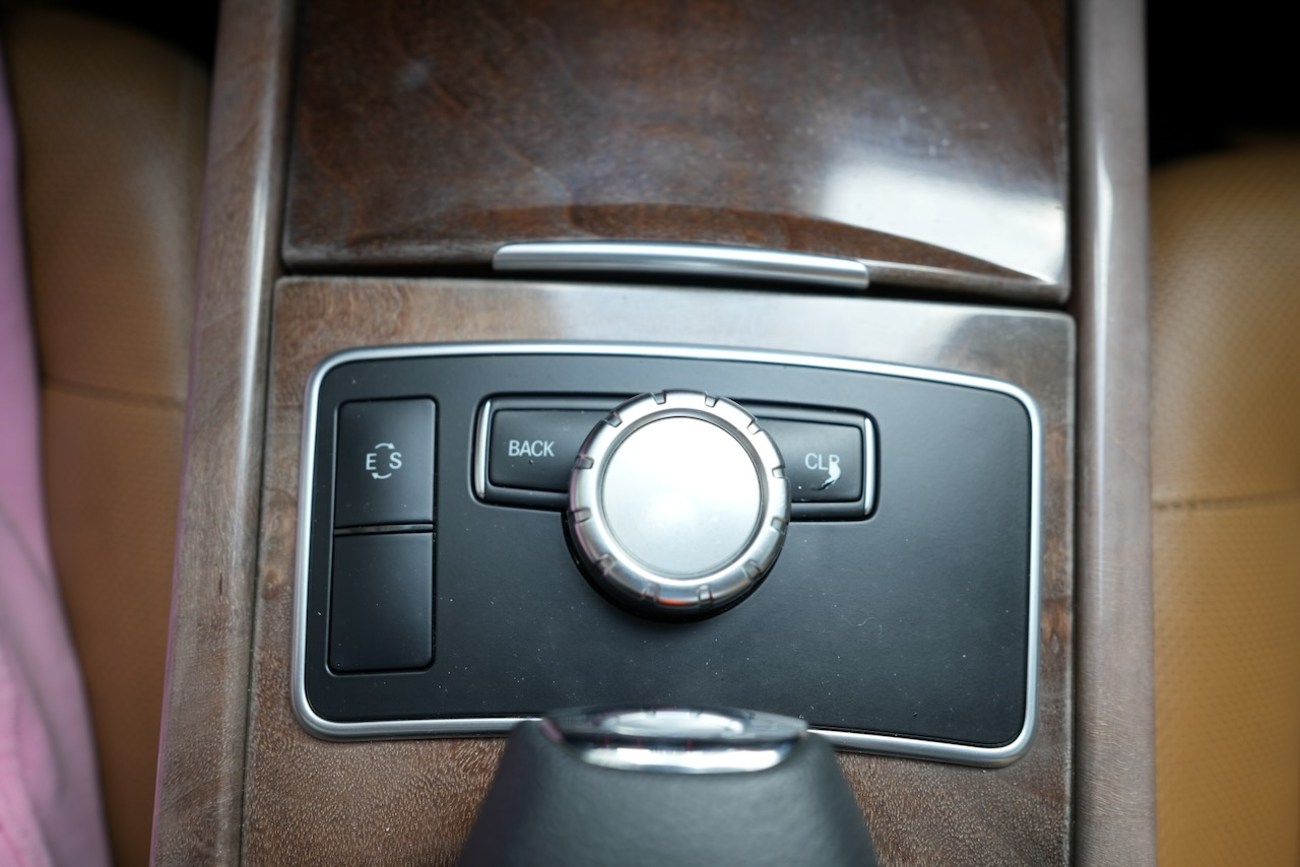 The optional wood and leather steering wheel fronts a 160-mph speedometer with a central configurable display along with an 8k-rpm tachometer, an analog clock and gauges for fuel level and coolant temperature. The digital odometer currently shows less than 212k miles from new.