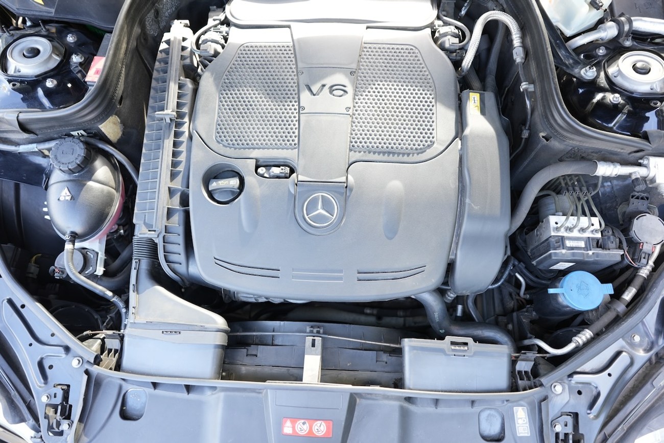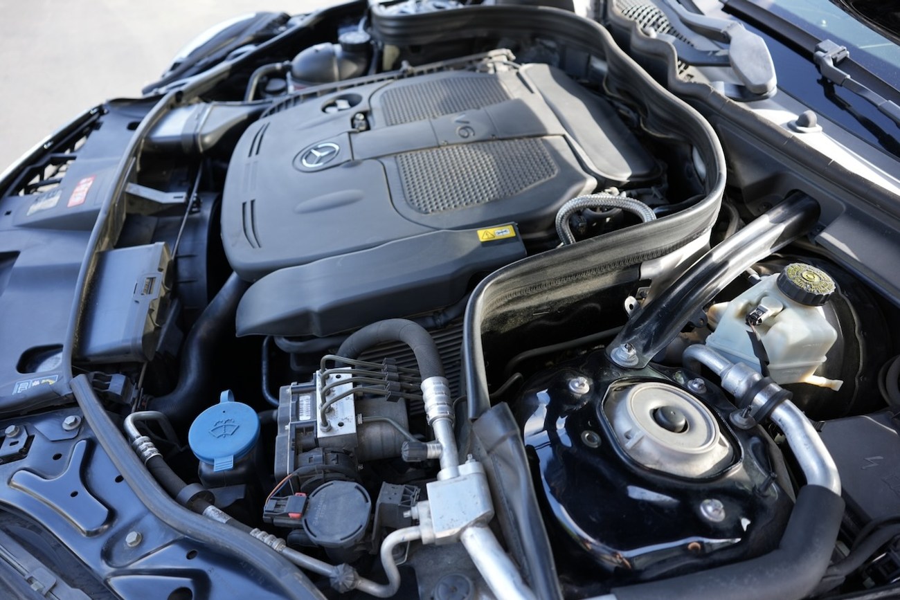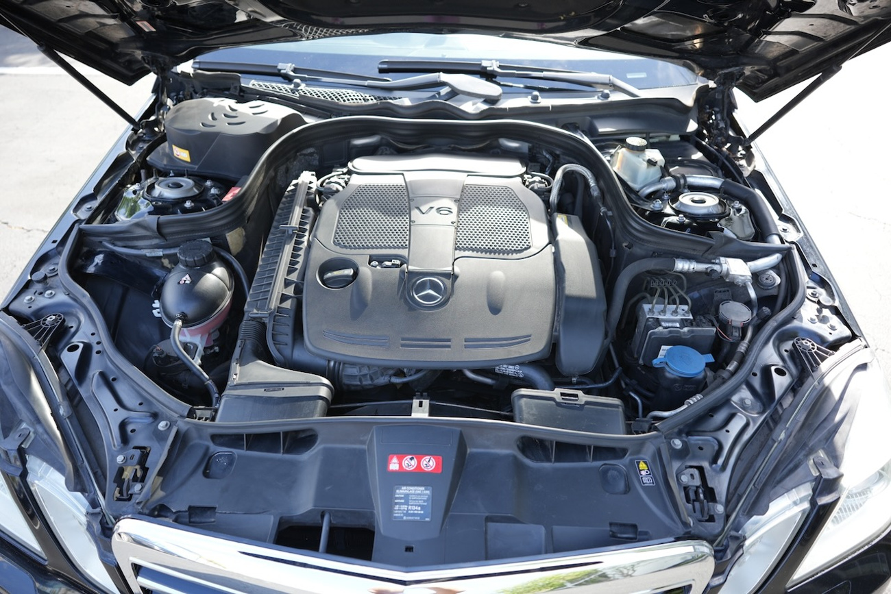 This E350 is powered by a 3.5-liter V6 which produces 268 horsepower and 258 lb-ft of torque. Power is sent to the rear wheels through a seven-speed automatic transmission. The included Carfax report shows regular oil changes and dealer servicing since new with an oil change, maintenance inspection, and tire rotation performed by the dealer in 2026.