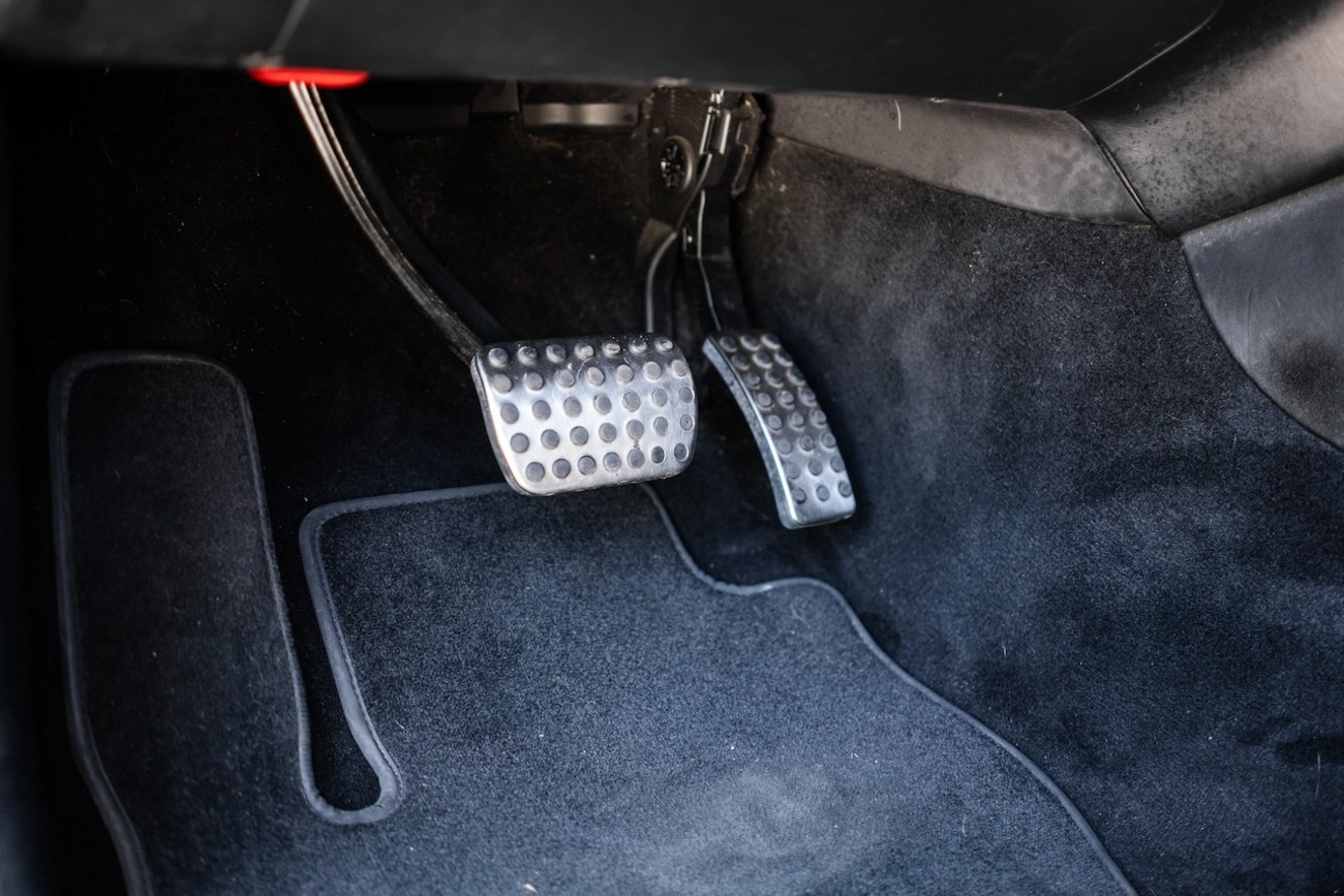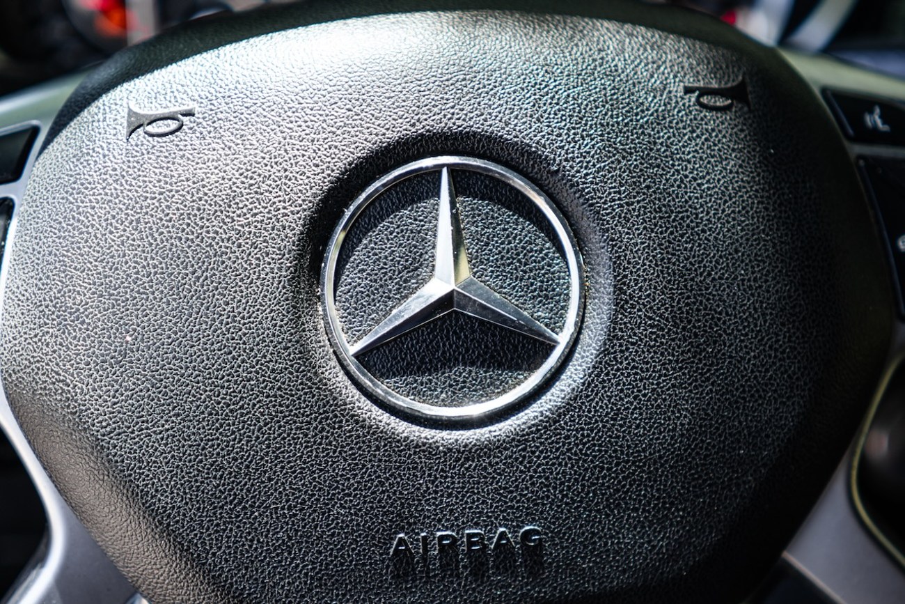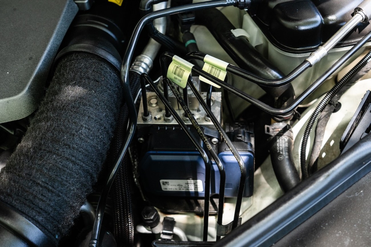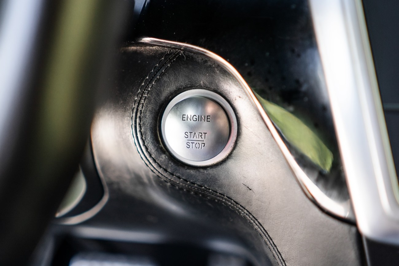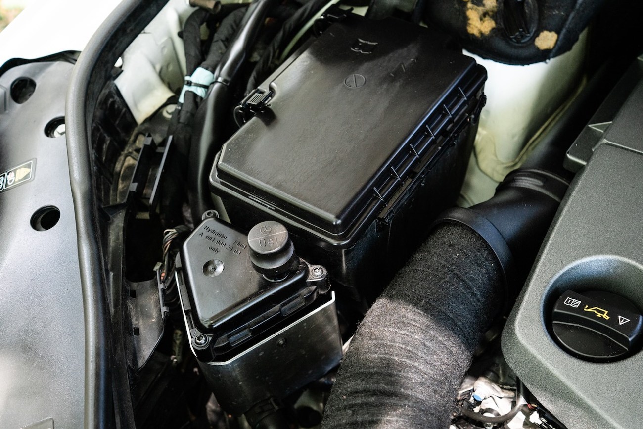 The optional 21” AMG twin multi-spoke alloy wheels are wrapped in Continental tires measuring 295/40 were installed in 2025. AMG sport suspension based on Airmatic offers adjustable ride height and damping and includes active roll stabilization. Red-painted brake calipers bite down on ventilated discs front and rear and wear black AMG lettering.