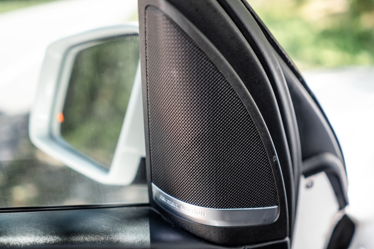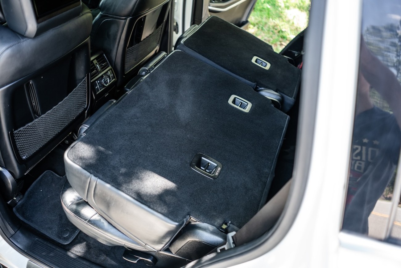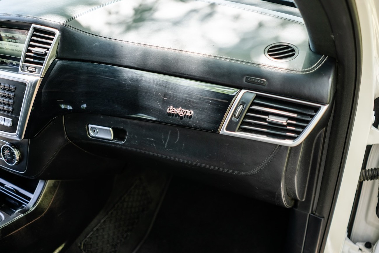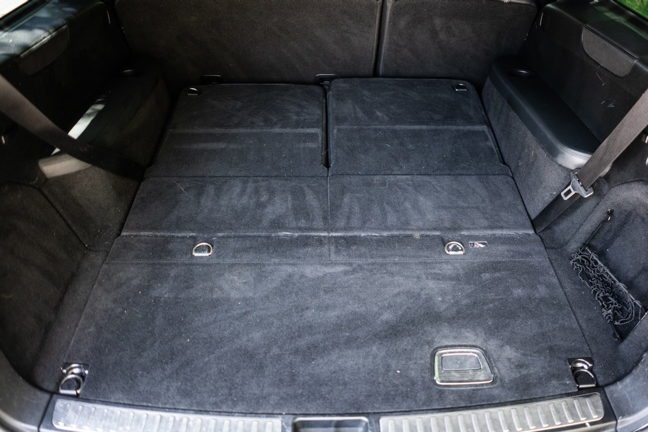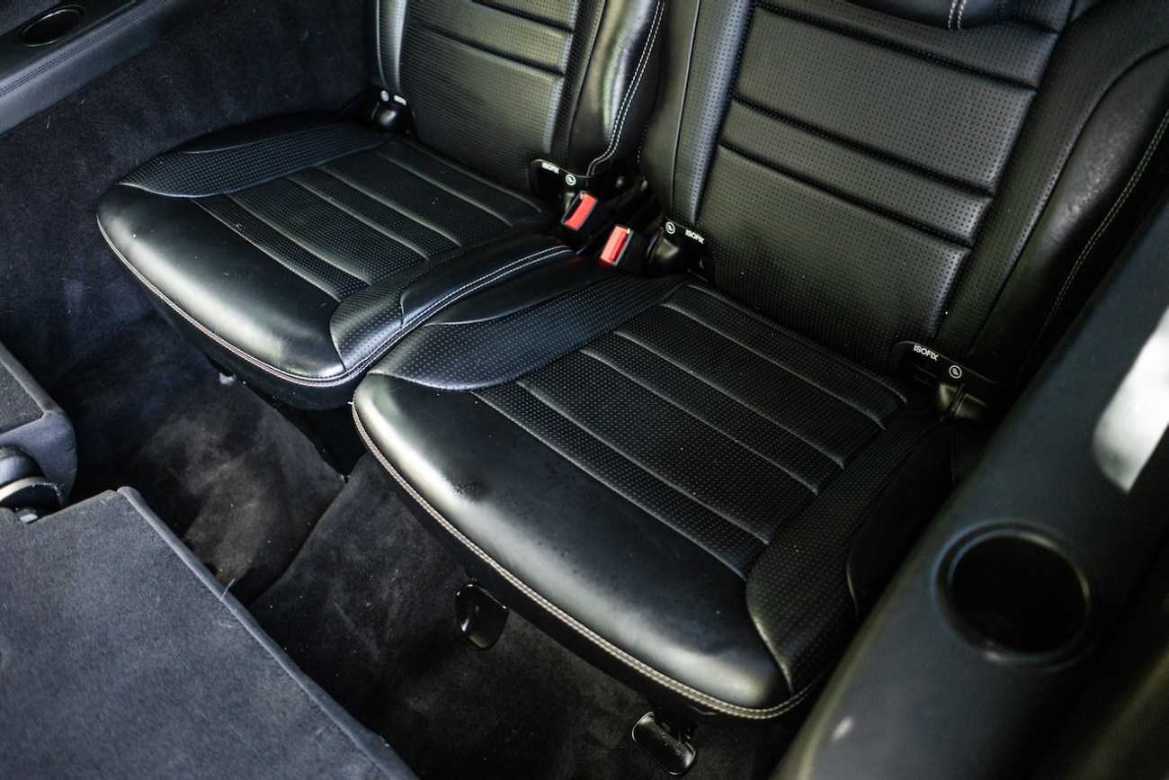 The bucket seats are trimmed in Exclusive Black Leather (X11) with black carpets and a black dinamica headliner. Optional designo Piano-Black trim accents the dash, center console, and doors. Both front seats are heated and ventilated and include multicontour with massage and adjustable lumbar support. Additional interior amenities include heated and cooled front cup holders, heated rear seats, three-zone automatic climate control, folding second row seats, an 8” COMAND display with Apple Carplay, and harman / kardon surround sound. Both second and third-row seats fold flat to provide a large loading area.