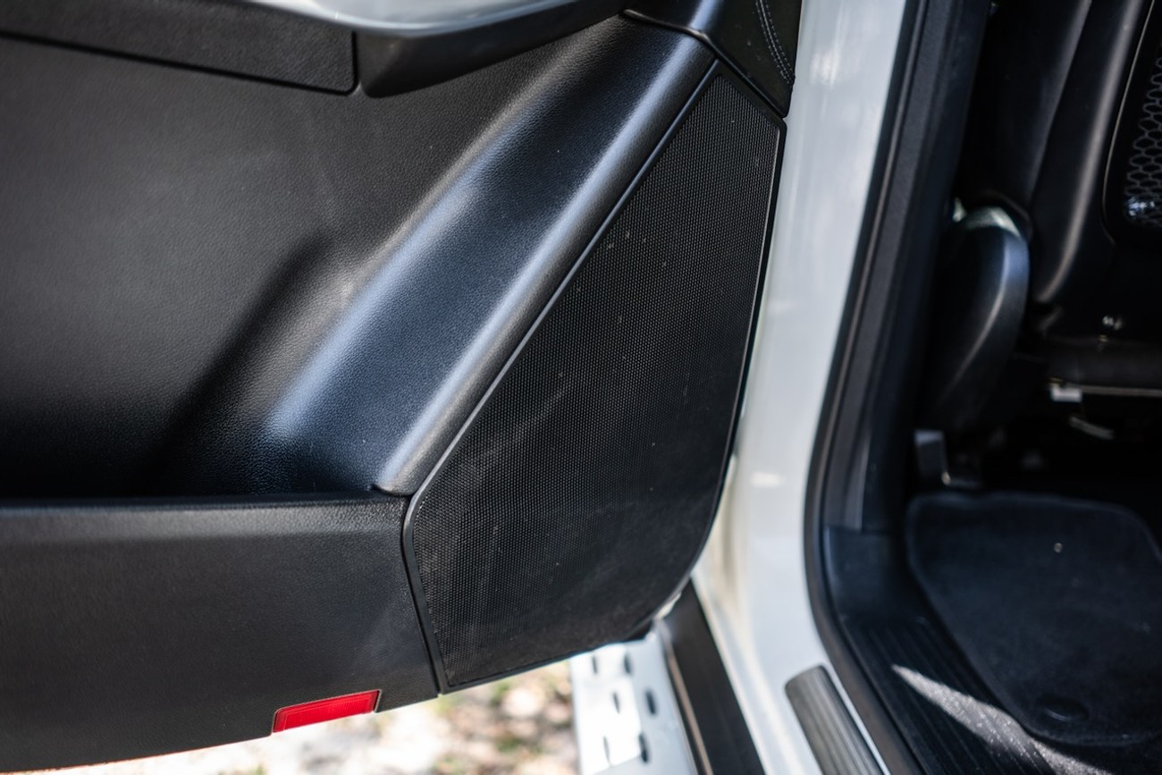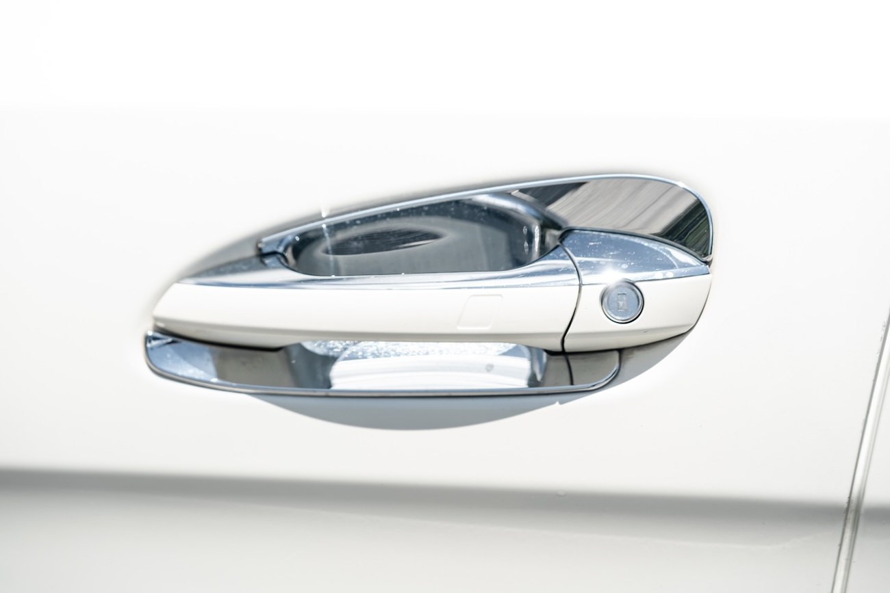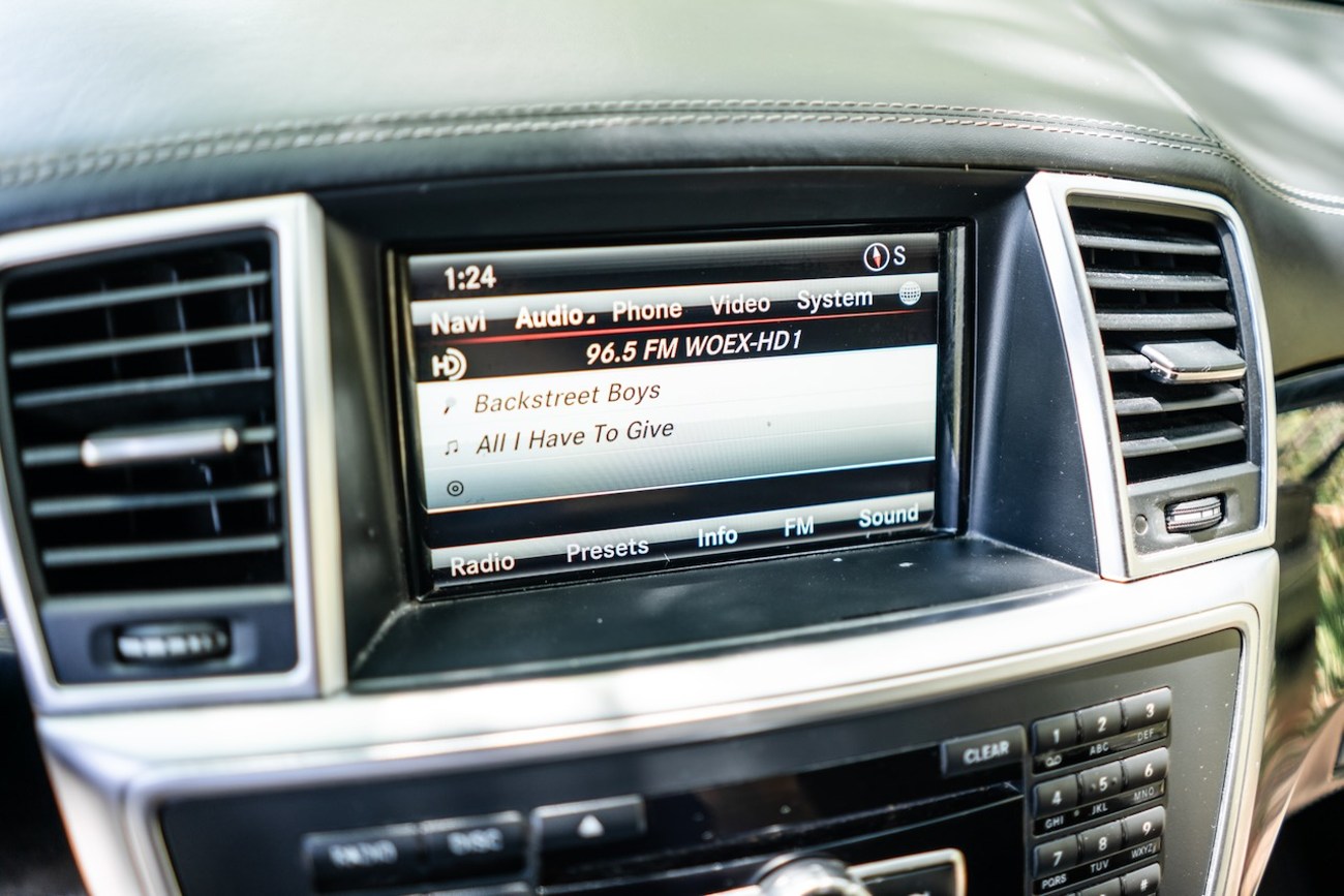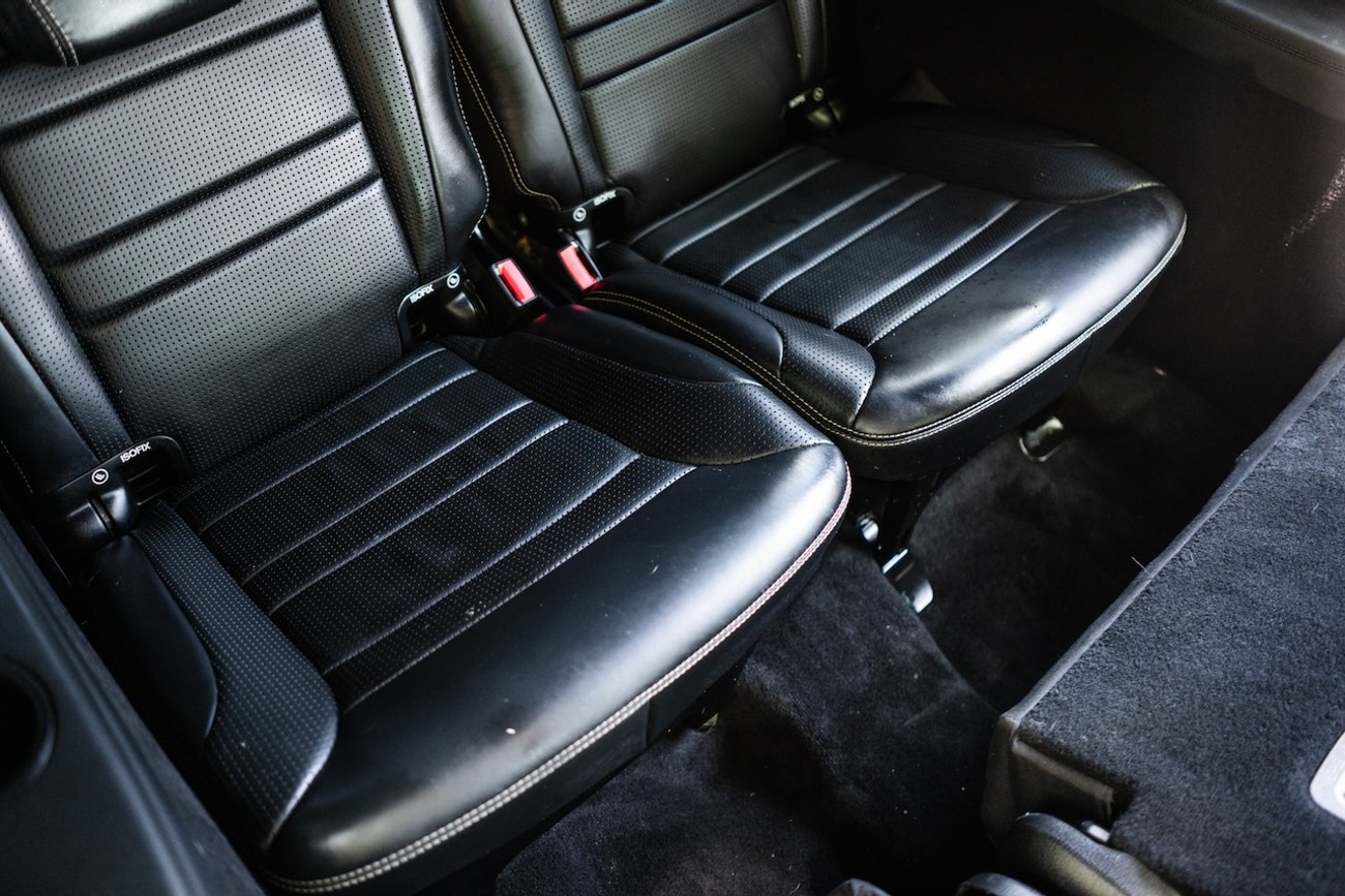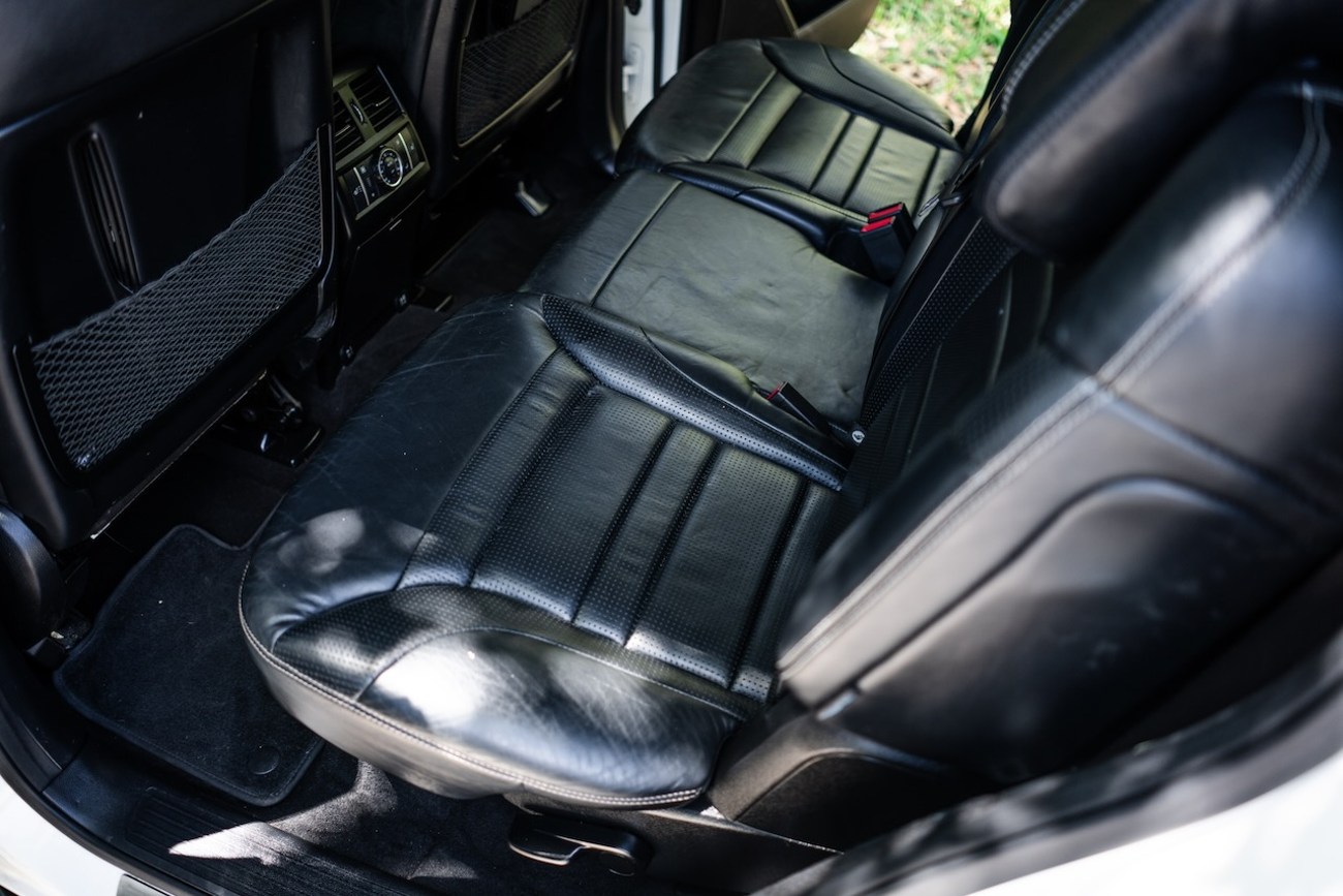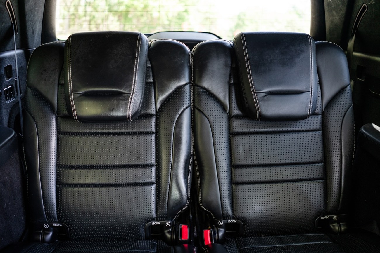 The bucket seats are trimmed in Exclusive Black Leather (X11) with black carpets and a black dinamica headliner. Optional designo Piano-Black trim accents the dash, center console, and doors. Both front seats are heated and ventilated and include multicontour with massage and adjustable lumbar support. Additional interior amenities include heated and cooled front cup holders, heated rear seats, three-zone automatic climate control, folding second row seats, an 8” COMAND display with Apple Carplay, and harman / kardon surround sound. Both second and third-row seats fold flat to provide a large loading area.