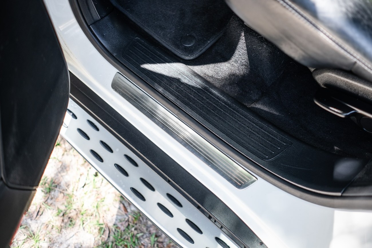 The exterior is finished in Black (040) and features AMG body styling, quad AMG exhaust tips, illuminated running boards and roof rails. Exterior equipment includes a Driver Assistance package with Distronic cruise control, Active Lane Keeping Assist, LED dynamic headlights with Adaptive Highbeam Assist, a Parking Assistance package with Parktronic parking sensors, a Surround View camera and Active Parking assist, a panoramic glass sunroof, Keyless-Go, and a power liftgate. The Carfax report shows no accidents or damage since new.